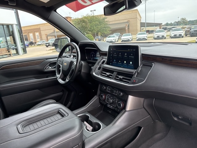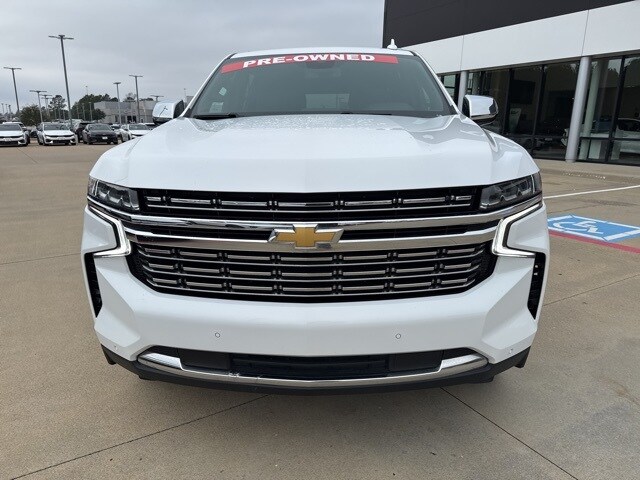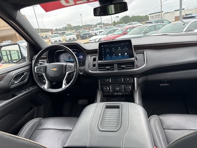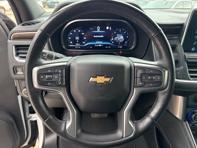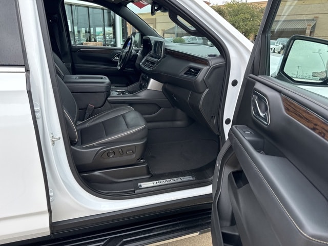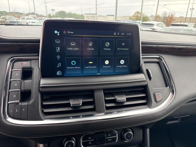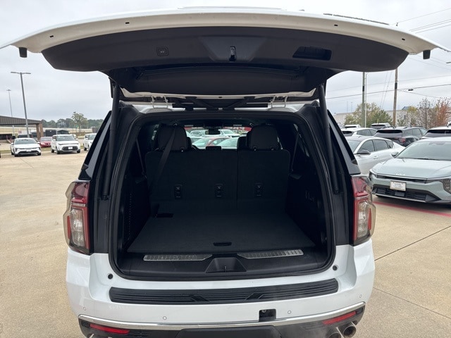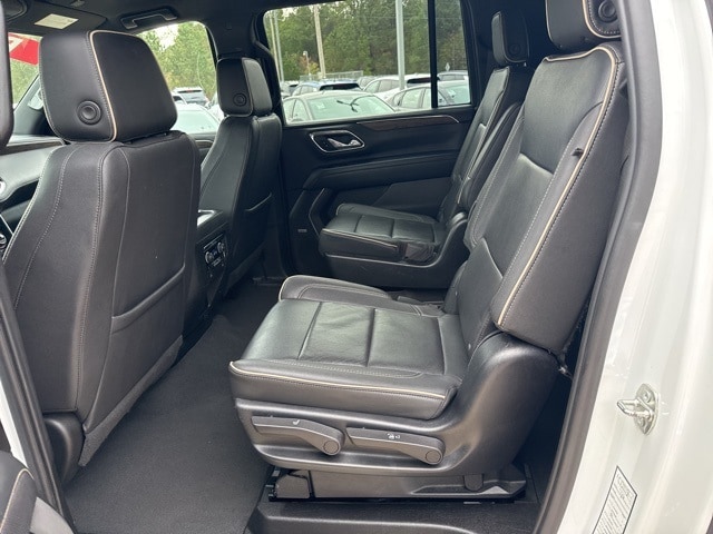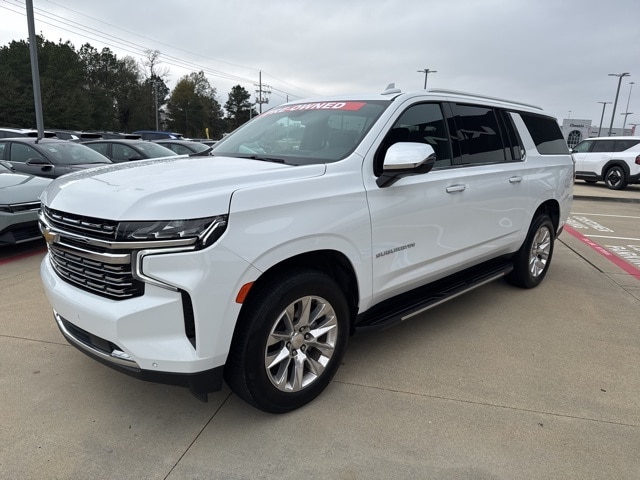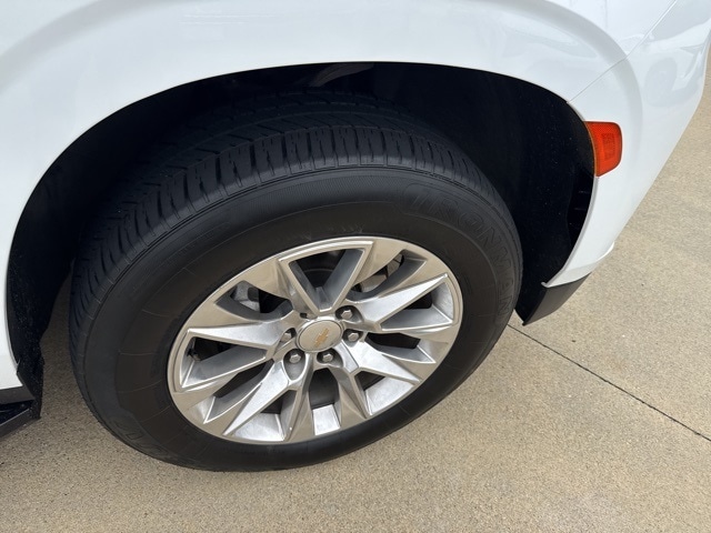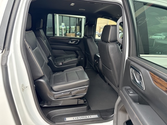 The 2023 Chevrolet Suburban comes with the following features; Preferred Equipment Group 1LZ (1st & 2nd Row Color-Keyed Carpeted Floor Mats, 3rd Row 60/40 Power-Folding Split-Bench, Auto-Dimming Inside Rear-View Mirror, Bose 10-Speaker Surround w/CenterPoint, Bright Front & Rear Door Sill Plates, Chrome Door Handles w/Body-Color Strip, Chrome Mirror Caps, Color-Keyed Carpeting Floor Covering, Driver & Front Outboard Passenger Airbags, Dual Exhaust System, Enhanced Driver Information Center, Floor Console, Hands-Free Rear Power Programmable Liftgate, Heated & Ventilated Driver & Front Passenger Seats, Heated 2nd Row Outboard Seats, Heated Driver & Front Passenger Seats, Heated Steering Wheel, Infotainment Display, Lane Change Alert w/Side Blind Zone Alert, LED Daytime Running Lamps, Memory Settings, Outside Heated Power-Adjustable Mirrors, Power Release 2nd Row Bucket Seats, Power Tilt & Telescopic Steering Column, Rear Cross Traffic Alert, Remote Start, Safety Alert Seat, SiriusXM Radio w/360L, Universal Home Remote, Wireless Charging, and Wrapped Steering Wheel), 10 Speakers, 20" x 9" Polished Aluminum Wheels, 3.23 Rear Axle Ratio, 3rd row seats: split-bench, 4-Wheel Disc Brakes, ABS brakes, Adaptive suspension, Air Conditioning, Alloy wheels, AM/FM radio: SiriusXM with 360L, Apple CarPlay/Android Auto, Auto High-beam Headlights, Auto-dimming door mirrors, Auto-dimming Rear-View mirror, Auto-leveling suspension, Automatic temperature control, Brake assist, Bumpers: body-color, Compass, Delay-off headlights, Deleted 3 Years of Remote Access, Driver door bin, Driver vanity mirror, Dual front impact airbags, Dual front side impact airbags, Electronic Stability Control, Emergency communication system: OnStar and Chevrolet connected services capable, Four wheel independent suspension, Front anti-roll bar, Front Bucket Seats, Front Center Armrest, Front dual zone A/C, Front reading lights, Fully automatic headlights, Garage door transmitter, Heated door mirrors, Heated front seats, Heated rear seats, Heated steering wheel, Illuminated entry, Low tire pressure warning, Magnetic Ride Control Suspension, Memory seat, Navigation System, Not Equipped w/4-Way Driver & Fr Pass Pwr Lumbar, Occupant sensing airbag, Outside temperature display, Overhead airbag, Overhead console, Panic alarm, Passenger door bin, Passenger vanity mirror, Perforated Leather Seating Surfaces, Power door mirrors, Power driver seat, Power Liftgate, Power passenger seat, Power steering, Power windows, Premium audio system: Chevrolet Infotainment 3 Premium, Radio: Chevrolet Infotainment 3 Premium System, Rain sensing wipers, Rear air conditioning, Rear anti-roll bar, Rear reading lights, Rear window defroster, Rear window wiper, Remote keyless entry, Roof rack: rails only, Security system, Speed control, Speed-sensing steering, Split folding rear seat, Spoiler, Steering wheel memory, Steering wheel mounted audio controls, Tachometer, Telescoping steering wheel, Tilt steering wheel, Traction control, Trip computer, Turn signal indicator mirrors, Variably intermittent wipers, Ventilated front seats, and Voltmeter.