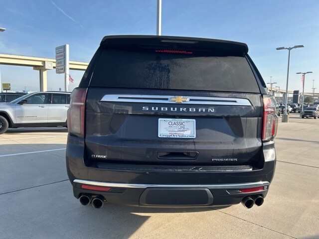 CARFAX One-Owner. Clean CARFAX. Classic CDJR in Texarkana is proud to offer this attractive 2023 Chevrolet Suburban in Ash. This 2023 Chevrolet Suburban comes with the following features; Preferred Equipment Group 1LZ (1st & 2nd Row Color-Keyed Carpeted Floor Mats, 3rd Row 60/40 Power-Folding Split-Bench, Auto-Dimming Inside Rear-View Mirror, Bose 10-Speaker Surround w/CenterPoint, Bright Front & Rear Door Sill Plates, Chrome Door Handles w/Body-Color Strip, Chrome Mirror Caps, Color-Keyed Carpeting Floor Covering, Driver & Front Outboard Passenger Airbags, Dual Exhaust System, Enhanced Driver Information Center, Floor Console, Hands-Free Rear Power Programmable Liftgate, Heated & Ventilated Driver & Front Passenger Seats, Heated 2nd Row Outboard Seats, Heated Driver & Front Passenger Seats, Heated Steering Wheel, Infotainment Display, Lane Change Alert w/Side Blind Zone Alert, LED Daytime Running Lamps, Memory Settings, Outside Heated Power-Adjustable Mirrors, Power Release 2nd Row Bucket Seats, Power Tilt & Telescopic Steering Column, Rear Cross Traffic Alert, Remote Start, Safety Alert Seat, SiriusXM Radio w/360L, Universal Home Remote, Wireless Charging, and Wrapped Steering Wheel), 10 Speakers, 20" x 9" Polished Aluminum Wheels, 3.23 Rear Axle Ratio, 3rd row seats: split-bench, 4-Wheel Disc Brakes, ABS brakes, Adaptive suspension, Air Conditioning, Alloy wheels, AM/FM radio: SiriusXM with 360L, Apple CarPlay/Android Auto, Auto High-beam Headlights, Auto-dimming door mirrors, Auto-dimming Rear-View mirror, Auto-leveling suspension, Automatic temperature control, Brake assist, Bumpers: body-color, Compass, Delay-off headlights, Deleted 3 Years of Remote Access, Driver door bin, Driver vanity mirror, Dual front impact airbags, Dual front side impact airbags, Electronic Stability Control, Emergency communication system: OnStar and Chevrolet connected services capable, Four wheel independent suspension, Front anti-roll bar, Front Bucket Seats, Front Center Armrest, Front dual zone A/C, Front reading lights, Fully automatic headlights, Garage door transmitter, Heated door mirrors, Heated front seats, Heated rear seats, Heated steering wheel, Illuminated entry, Low tire pressure warning, Magnetic Ride Control Suspension, Memory seat, Navigation System, Occupant sensing airbag, Outside temperature display, Overhead airbag, Overhead console, Panic alarm, Passenger door bin, Passenger vanity mirror, Perforated Leather Seating Surfaces, Power door mirrors, Power driver seat, Power Liftgate, Power passenger seat, Power steering, Power windows, Premium audio system: Chevrolet Infotainment 3 Premium, Radio: Chevrolet Infotainment 3 Premium System, Rain sensing wipers, Rear air conditioning, Rear anti-roll bar, Rear reading lights, Rear window defroster, Rear window wiper, Remote keyless entry, Roof rack: rails only, Security system, Speed control, Speed-sensing steering, Split folding rear seat, Spoiler, Steering wheel memory, Steering wheel mounted audio controls, Tachometer, Telescoping steering wheel, Tilt steering wheel, Traction control, Trip computer, Turn signal indicator mirrors, Variably intermittent wipers, Ventilated front seats, and Voltmeter.