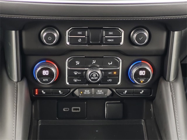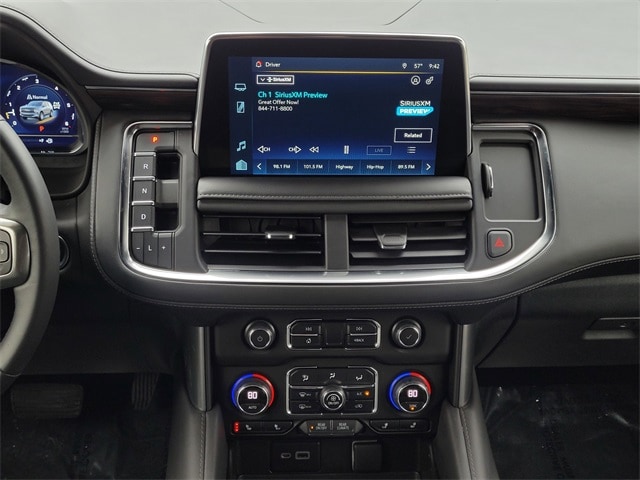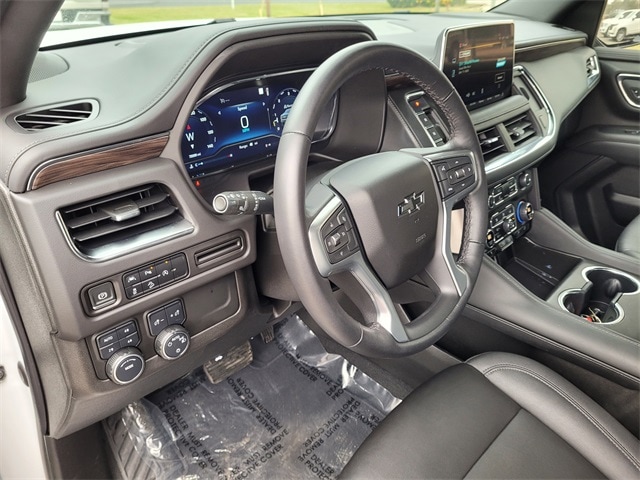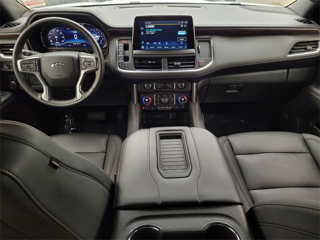 This 2023 Chevrolet Tahoe comes equipped with License Plate Front Mounting Package, Preferred Equipment Group 2Z7 (1st & 2nd Row Color-Keyed Carpeted Floor Mats, 2-Speed Active Electronic AutoTrac Transfer Case, Auto-Dimming Inside Rear-View Mirror, Black Tubular Assist Steps, Bose 9-Speaker Stereo Audio System Feature, Bright Front & Rear Door Sill Plates, Color-Keyed Carpeting Floor Covering, Driver & Front Outboard Passenger Airbags, Enhanced Driver Information Center, Floor Console w/Storage Area, Front High-Approach Angle Fascia, Hands-Free Rear Power Programmable Liftgate, Hill Descent Control, Infotainment Display, LED Daytime Running Lamps, Memory Settings for Driver, Red Horizontal-Mounted Recovery Hooks, Remote Start, SiriusXM Radio w/360L, Universal Home Remote, Wireless Charging, and Wrapped Steering Wheel), 4WD, Black Leather, Navigation System, 10-Way Power Driver & Passenger Seat Adjusters, 2nd Row Manual Bucket Seats, 3.23 Rear Axle Ratio, 3rd row seats: split-bench, 4-Wheel Disc Brakes, 9 Speakers, ABS brakes, Air Conditioning, Alloy wheels, AM/FM radio: SiriusXM with 360L, Apple CarPlay/Android Auto, Auto High-beam Headlights, Auto-dimming Rear-View mirror, Automatic temperature control, Brake assist, Bumpers: body-color, Compass, Delay-off headlights, Driver door bin, Driver vanity mirror, Dual front impact airbags, Dual front side impact airbags, Dual-Pane Power Panoramic Sunroof, Electronic Stability Control, Emergency communication system: OnStar and Chevrolet connected services capable, Four wheel independent suspension, Front anti-roll bar, Front Bucket Seats, Front Center Armrest, Front dual zone A/C, Front High-Back Reclining Bucket Seats, Front reading lights, Fully automatic headlights, Garage door transmitter, Heated door mirrors, Heated Driver & Front Passenger Seats, Heated front seats, Illuminated entry, Leather-Appointed Seat Trim, Low tire pressure warning, Memory seat, Occupant sensing airbag, Outside temperature display, Overhead airbag, Overhead console, Panic alarm, Passenger door bin, Passenger vanity mirror, Power door mirrors, Power driver seat, Power Liftgate, Power passenger seat, Power steering, Power windows, Premium audio system: Chevrolet Infotainment 3 Premium, Premium Smooth Ride Suspension, Radio: Chevrolet Infotainment 3 Premium System, Rain sensing wipers, Rear air conditioning, Rear anti-roll bar, Rear reading lights, Rear seat center armrest, Rear window defroster, Rear window wiper, Remote keyless entry, Roof rack: rails only, Security system, Speed control, Speed-sensing steering, Split folding rear seat, Spoiler, Steering wheel mounted audio controls, Tachometer, Telescoping steering wheel, Tilt steering wheel, Traction control, Trip computer, Variably intermittent wipers, Voltmeter, and Wheels: 20" x 9" Machined Aluminum. Clean CARFAX. Carfax no accidents, 4WD, Black Leather, 1st & 2nd Row Color-Keyed Carpeted Floor Mats, 2-Speed Active Electronic AutoTrac Transfer Case, Auto-Dimming Inside Rear-View Mirror, Black Tubular Assist Steps, Bose 9-Speaker Stereo Audio System Feature, Bright Front & Rear Door Sill Plates, Color-Keyed Carpeting Floor Covering, Driver & Front Outboard Passenger Airbags, Enhanced Driver Information Center, Floor Console w/Storage Area, Front High-Approach Angle Fascia, Hands-Free Rear Power Programmable Liftgate, Hill Descent Control, Infotainment Display, LED Daytime Running Lamps, License Plate Front Mounting Package, Memory Settings for Driver, Navigation System, Preferred Equipment Group 2Z7, Red Horizontal-Mounted Recovery Hooks, Remote Start, SiriusXM Radio w/360L, Universal Home Remote, Wireless Charging, Wrapped Steering Wheel.