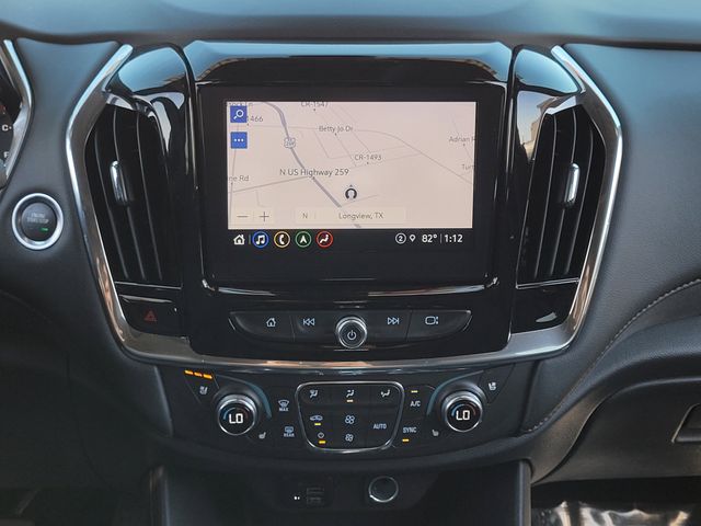 This 2023 Chevrolet Traverse comes equipped with Front License Plate Bracket Mounting Package, Preferred Equipment Group 2LZ (Heated 2nd Row Outboard Position Seats), Navigation System, 10 Speakers, 20" Polished Aluminum Wheels, 3.49 Axle Ratio, 3rd row seats: split-bench, 4-Wheel Disc Brakes, 6-Way Power Front Passenger Seat, 8-Way Power Driver Seat Adjuster, ABS brakes, Air Conditioning, Alloy wheels, AM/FM radio: SiriusXM with 360L, Apple CarPlay/Android Auto, Auto High-beam Headlights, Auto-dimming door mirrors, Auto-dimming Rear-View mirror, Automatic temperature control, Bose Premium 10-Speaker Audio System Feature, Brake assist, Bumpers: body-color, Compass, Delay-off headlights, Driver door bin, Driver vanity mirror, Dual front impact airbags, Dual front side impact airbags, Electronic Stability Control, Emergency communication system, Exterior Parking Camera Rear, Four wheel independent suspension, Front anti-roll bar, Front Bucket Seats, Front Center Armrest, Front dual zone A/C, Front Passenger 2-Way Power Lumbar, Front reading lights, Fully automatic headlights, Garage door transmitter, Heated door mirrors, Heated Driver & Front Passenger Seats, Heated front seats, Heated rear seats, Heated steering wheel, Illuminated entry, Leather steering wheel, Low tire pressure warning, Memory seat, Occupant sensing airbag, Outside temperature display, Overhead airbag, Overhead console, Panic alarm, Passenger door bin, Passenger vanity mirror, Perforated Leather-Appointed Seat Trim, Power door mirrors, Power Driver Lumbar Control, Power driver seat, Power Liftgate, Power moonroof: Dual SkyScape, Power passenger seat, Power steering, Power windows, Premium audio system: Chevrolet Infotainment 3 Plus, Radio data system, Radio: Chevrolet Infotainment 3 Plus System w/Navi, Rear air conditioning, Rear anti-roll bar, Rear reading lights, Rear window defroster, Rear window wiper, Remote keyless entry, Security system, SiriusXM w/360L, Speed control, Speed-sensing steering, Spoiler, Steering wheel memory, Steering wheel mounted audio controls, Tachometer, Telescoping steering wheel, Tilt steering wheel, Traction control, Trip computer, Turn signal indicator mirrors, Variably intermittent wipers, Ventilated Driver & Front Passenger Seats, Ventilated front seats, and Voltmeter. CARFAX One-Owner. Priced below KBB Fair Purchase Price! 18/27 City/Highway MPG One Owner Carfax, Front License Plate Bracket Mounting Package, Heated 2nd Row Outboard Position Seats, Navigation System, Preferred Equipment Group 2LZ.