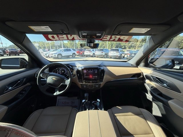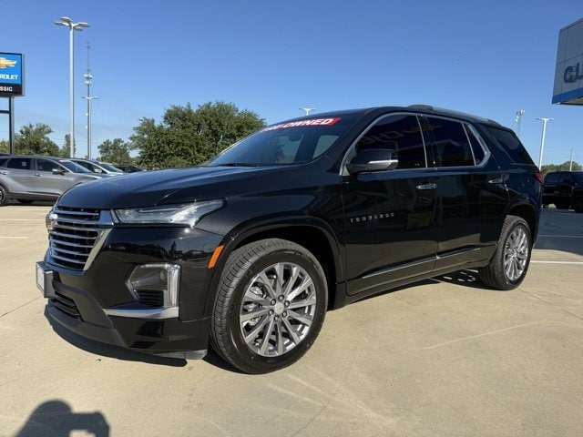 CARFAX One-Owner. Clean CARFAX. 18/27 City/Highway MPG Mosaic Black Metallic 2023 Chevrolet Traverse Premier 3.6L V6 SIDI VVT FWD 9-Speed Automatic The 2023 Chevrolet Traverse comes with the following features; Front License Plate Bracket Mounting Package, Preferred Equipment Group 1LZ (Heated 2nd Row Outboard Position Seats, Heated Driver & Front Passenger Seats, and Ventilated Driver & Front Passenger Seats), 10 Speakers, 3.49 Axle Ratio, 3rd row seats: split-bench, 4-Wheel Disc Brakes, 6-Way Power Front Passenger Seat, 8-Way Power Driver Seat Adjuster, ABS brakes, Air Conditioning, Alloy wheels, AM/FM radio: SiriusXM with 360L, Apple CarPlay/Android Auto, Auto High-beam Headlights, Auto-dimming door mirrors, Auto-dimming Rear-View mirror, Automatic temperature control, Bose Premium 10-Speaker Audio System Feature, Brake assist, Bumpers: body-color, Compass, Delay-off headlights, Driver door bin, Driver vanity mirror, Dual front impact airbags, Dual front side impact airbags, Electronic Stability Control, Emergency communication system, Exterior Parking Camera Rear, Four wheel independent suspension, Front anti-roll bar, Front Bucket Seats, Front Center Armrest, Front dual zone A/C, Front Passenger 2-Way Power Lumbar, Front reading lights, Fully automatic headlights, Garage door transmitter, Heated door mirrors, Heated front seats, Heated rear seats, Heated steering wheel, Illuminated entry, Leather steering wheel, Low tire pressure warning, Memory seat, Navigation System, Not Equipped w/Rear Park Assist (060), Occupant sensing airbag, Outside temperature display, Overhead airbag, Overhead console, Panic alarm, Passenger door bin, Passenger vanity mirror, Perforated Leather-Appointed Seat Trim, Power door mirrors, Power Driver Lumbar Control, Power driver seat, Power Liftgate, Power passenger seat, Power steering, Power windows, Premium audio system: Chevrolet Infotainment 3 Plus, Radio data system, Radio: Chevrolet Infotainment 3 Plus System w/Navi, Rear air conditioning, Rear anti-roll bar, Rear reading lights, Rear window defroster, Rear window wiper, Remote keyless entry, Security system, SiriusXM w/360L, Speed control, Speed-sensing steering, Spoiler, Steering wheel memory, Steering wheel mounted audio controls, Tachometer, Telescoping steering wheel, Tilt steering wheel, Traction control, Trip computer, Turn signal indicator mirrors, Variably intermittent wipers, Ventilated front seats, Voltmeter, and Wheels: 20 Metallic Machined-Face Aluminum. One owner Carfax, Carfax no accidents, Back up camera, Bluetooth, Heated and cooled seats, Second row buckets seats, Keyless entry, Remote start.