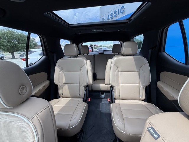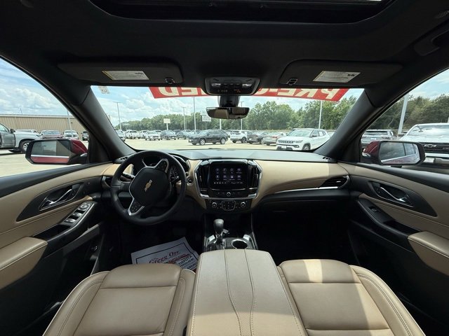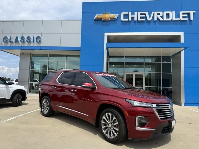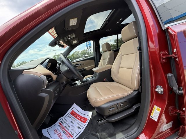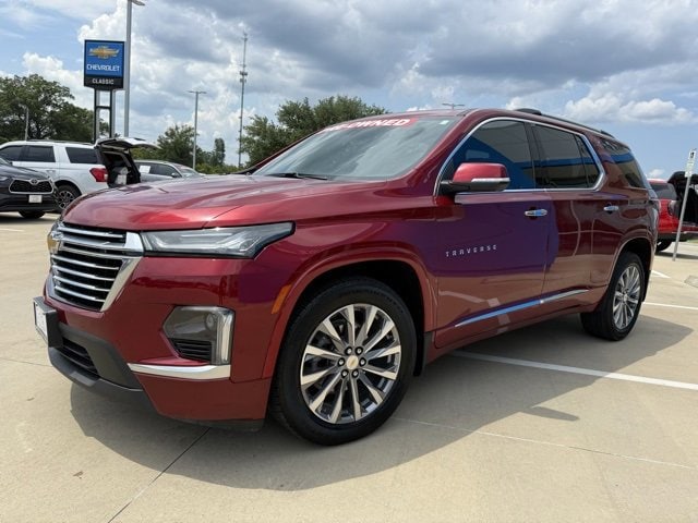 CARFAX One-Owner. Clean CARFAX. 18/27 City/Highway MPG Radiant Red Tintcoat 2023 Chevrolet Traverse Premier 3.6L V6 SIDI VVT FWD 9-Speed Automatic The 2023 Chevrolet Traverse comes with the following features; Front License Plate Bracket Mounting Package, Preferred Equipment Group 1LZ (Heated 2nd Row Outboard Position Seats, Heated Driver & Front Passenger Seats, and Ventilated Driver & Front Passenger Seats), 10 Speakers, 3.49 Axle Ratio, 3rd row seats: split-bench, 4-Wheel Disc Brakes, 6-Way Power Front Passenger Seat, 8-Way Power Driver Seat Adjuster, ABS brakes, Air Conditioning, Alloy wheels, AM/FM radio: SiriusXM with 360L, Apple CarPlay/Android Auto, Auto High-beam Headlights, Auto-dimming door mirrors, Auto-dimming Rear-View mirror, Automatic temperature control, Bose Premium 10-Speaker Audio System Feature, Brake assist, Bumpers: body-color, Compass, Delay-off headlights, Driver door bin, Driver vanity mirror, Dual front impact airbags, Dual front side impact airbags, Dual SkyScape 2-Panel Power Sunroof, Electronic Stability Control, Emergency communication system, Exterior Parking Camera Rear, Four wheel independent suspension, Front anti-roll bar, Front Bucket Seats, Front Center Armrest, Front dual zone A/C, Front Passenger 2-Way Power Lumbar, Front reading lights, Fully automatic headlights, Garage door transmitter, Heated door mirrors, Heated front seats, Heated rear seats, Heated steering wheel, Illuminated entry, Leather steering wheel, Low tire pressure warning, Memory seat, Navigation System, Not Equipped w/Rear Park Assist (060), Occupant sensing airbag, Outside temperature display, Overhead airbag, Overhead console, Panic alarm, Passenger door bin, Passenger vanity mirror, Perforated Leather-Appointed Seat Trim, Power door mirrors, Power Driver Lumbar Control, Power driver seat, Power Liftgate, Power passenger seat, Power steering, Power windows, Premium audio system: Chevrolet Infotainment 3 Plus, Radio data system, Radio: Chevrolet Infotainment 3 Plus System w/Navi, Rear air conditioning, Rear anti-roll bar, Rear reading lights, Rear window defroster, Rear window wiper, Remote keyless entry, Security system, SiriusXM w/360L, Speed control, Speed-sensing steering, Spoiler, Steering wheel memory, Steering wheel mounted audio controls, Tachometer, Telescoping steering wheel, Tilt steering wheel, Traction control, Trip computer, Turn signal indicator mirrors, Variably intermittent wipers, Ventilated front seats, Voltmeter, and Wheels: 20 Metallic Machined-Face Aluminum. One owner Carfax, Carfax no accidents, Back up camera, Bluetooth, Heated and cooled seats, Blind spot monitor, Second row buckets seats, Keyless entry, Remote start.