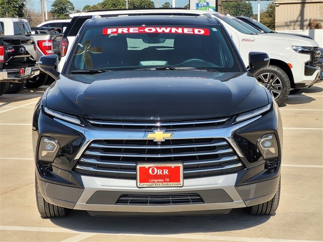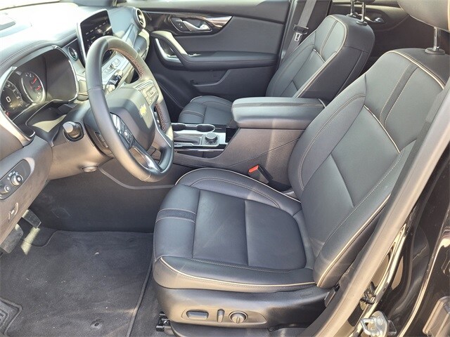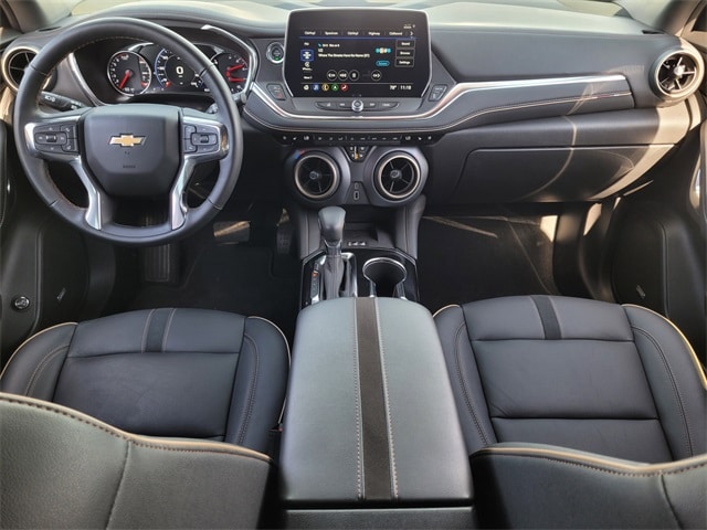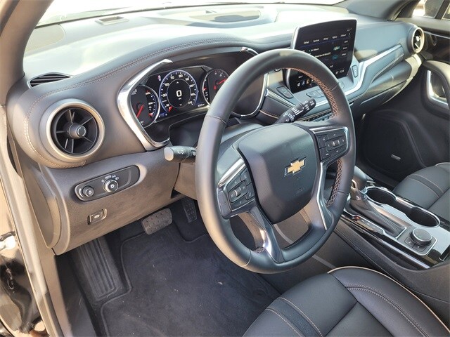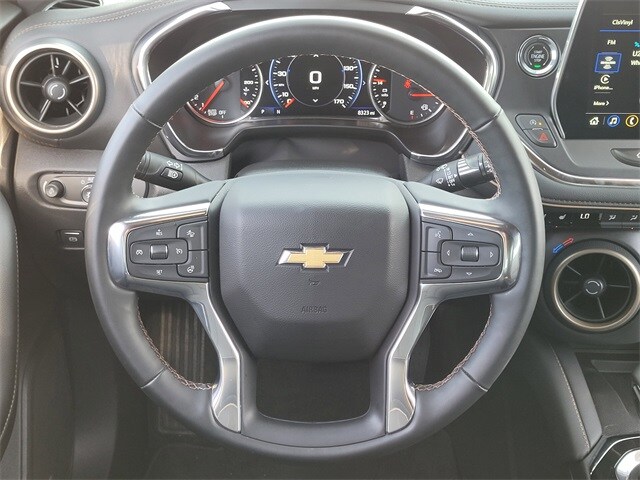 This 2024 Chevrolet Blazer comes equipped with Driver Confidence II Package (Adaptive Cruise Control, Enhanced Automatic Emergency Braking, HD Surround Vision, Rear Camera Mirror, Safety Alert Seat, and Rear Camera Mirror Washer), Enhanced Convenience Package (Heated Rear Outboard Seating Positions, Memory Settings For Driver Seat & Exterior Mirrors, Power Tilt & Telescoping Steering Column, and Ventilated Driver & Front Passenger Seats), Preferred Equipment Group 0HD (Heated Steering Wheel), Trailering Equipment (Hitch Guidance and Hitch View), Navigation System, 170 Amp Alternator, 3.47 Final Drive Axle Ratio, 4-Wheel Disc Brakes, 6-Way Power Front Passenger Seat Adjuster, 8 Speakers, 8-Way Power Driver Seat Adjuster, ABS brakes, Air Conditioning, Alloy wheels, AM/FM radio: SiriusXM with 360L, Apple CarPlay/Android Auto, Auto High-beam Headlights, Auto-dimming door mirrors, Auto-dimming Rear-View mirror, Automatic temperature control, Bose Premium 8-Speaker Audio System Feature, Brake assist, Bumpers: body-color, Child-Seat-Sensing Airbag, Compass, Delay-off headlights, Driver door bin, Driver vanity mirror, Dual front impact airbags, Dual front side impact airbags, Electronic Stability Control, Emergency communication system: OnStar and Chevrolet connected services capable, Four wheel independent suspension, Front anti-roll bar, Front Bucket Seats, Front Center Armrest, Front dual zone A/C, Front reading lights, Fully automatic headlights, Garage door transmitter, Heated door mirrors, Heated Driver & Front Passenger Seats, Heated front seats, Heated steering wheel, Illuminated entry, Knee airbag, Leather Shift Knob, Leather steering wheel, Low tire pressure warning, Occupant sensing airbag, Outside temperature display, Overhead airbag, Overhead console, Panic alarm, Passenger door bin, Passenger vanity mirror, Perforated Leather-Appointed Seat Trim, Power door mirrors, Power Driver Lumbar Control, Power driver seat, Power Liftgate, Power Panoramic Tilt-Sliding Sunroof, Power passenger seat, Power steering, Power windows, Premium audio system: Chevrolet Infotainment 3 Premium, Radio data system, Radio: Chevrolet Infotainment 3 Premium System, Rear anti-roll bar, Rear reading lights, Rear seat center armrest, Rear window defroster, Rear window wiper, Remote keyless entry, Ride & Handling Suspension, Security system, SiriusXM w/360L, Speed control, Speed-sensing steering, Split folding rear seat, Spoiler, Steering wheel mounted audio controls, Tachometer, Telescoping steering wheel, Tilt steering wheel, Traction control, Trip computer, Turn signal indicator mirrors, Variably intermittent wipers, Voltmeter, and Wheels: 20" Medium Android Machined-Face Aluminum. CARFAX One-Owner. Priced below KBB Fair Purchase Price! 22/29 City/Highway MPG Adaptive Cruise Control, Driver Confidence II Package, Enhanced Automatic Emergency Braking, Enhanced Convenience Package, HD Surround Vision, Heated Rear Outboard Seating Positions, Heated Steering Wheel, Hitch Guidance, Hitch View, Memory Settings For Driver Seat & Exterior Mirrors, Navigation System, Power Tilt & Telescoping Steering Column, Preferred Equipment Group 0HD, Rear Camera Mirror, Safety Alert Seat, Trailering Equipment, Ventilated Driver & Front Passenger Seats.