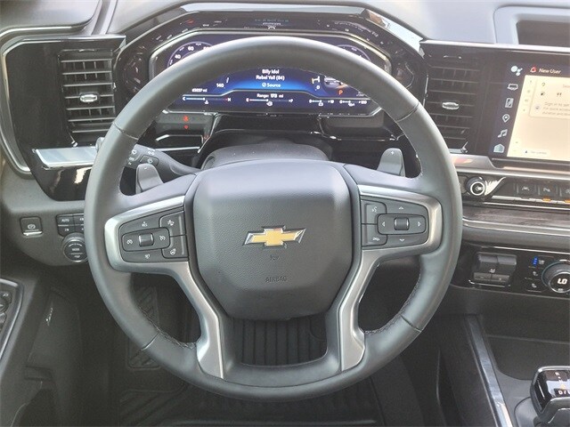 This 2024 Chevrolet Silverado 1500 comes equipped with High Capacity Suspension Package, LTZ Convenience Package (2 USB Data Ports, Floor Mounted Center Console, Power Tilt & Telescoping Steering Column, Premium Bose 7-Speaker Sound System, Ventilated Driver & Front Passenger Seats, and Wireless Charging), LTZ Plus Package, Preferred Equipment Group 1LZ (10-Way Power Driver Seat w/Lumbar, 10-Way Power Passenger Seat Adjuster w/Lumbar, 12.3" Multicolor Reconfigurable Digital Display, 120-Volt Interior Power Outlet, Auto-Dimming Inside Rear-View Mirror, Auto-Locking Rear Differential, Bluetooth® For Phone, Chrome Mirror Caps, Color-Keyed Carpeting Floor Covering, Deep-Tinted Glass, Driver Memory, Dual Rear USB Ports (Charge Only), Electric Rear-Window Defogger, Electrical Steering Column Lock, Electronic Cruise Control, Front Frame-Mounted Black Recovery Hooks, Front LED Fog Lamps, Front Rain-Sensing Wipers, Front Rubberized Vinyl Floor Mats, Heated Driver & Front Outboard Passenger Seats, Heated Steering Wheel, Hitch Guidance w/Hitch View, In-Vehicle Trailering System App, Integrated Trailer Brake Controller, Keyless Open & Start, LED Cargo Area Lighting, OnStar & Chevrolet Connected Services Capable, Outside Heated Power-Adjustable Mirrors, Power Front Passenger Windows w/Express Up/Down, Power Front Windows w/Driver Express Up/Down, Power Rear Windows w/Express Down, Power Tailgate, Rear Rubberized-Vinyl Floor Mats, Rear Wheelhouse Liners, Remote Vehicle Starter System, SiriusXM w/360L, Standard Tailgate, Steering Wheel Audio Controls, Theft Deterrent System (Unauthorized Entry), Wrapped Steering Wheel, 120-Volt Bed Mounted Power Outlet, Chevrolet Connected Access Capable, and Wi-Fi Hot Spot Capable), Safety Package (HD Surround Vision, Perimeter Lighting, Rear Cross Traffic Braking, Rear Pedestrian Alert, Safety Alert Seat, Trailer Camera Provisions, Trailer Side Blind Zone Alert, and Ultrasonic Front & Rear Park Assist), Trailering Package (Hitch Guidance), Up-Level Rear Seat w/Storage Package, Z71 Off-Road Package (Dual Exhaust w/Polished Outlets, Heavy-Duty Air Filter, Hill Descent Control, and Off-Road Suspension), 10-Speed Automatic, 4WD, Jet Black Leather, 170 Amp Alternator, 3.23 Rear Axle Ratio, 4-Wheel Disc Brakes, 7 Speakers, ABS brakes, Air Conditioning, Alloy wheels, AM/FM radio: SiriusXM with 360L, Auto High-beam Headlights, Auto-dimming door mirrors, Auto-dimming Rear-View mirror, Automatic Emergency Braking, Automatic temperature control, Brake assist, Bumpers: chrome, Chevytec Spray-On Black Bedliner, Compass, Delay-off headlights, Driver door bin, Driver vanity mirror, Dual front impact airbags, Dual front side impact airbags, Electronic Stability Control, Electronic Transmission Range Selector Shifter, Following Distance Indicator, Forward Collision Alert, Front anti-roll bar, Front Bucket Seats, Front Center Armrest, Front dual zone A/C, Front fog lights, Front Pedestrian Braking, Front reading lights, Front wheel independent suspension, Fully automatic headlights, Heated door mirrors, Heated front seats, Heated steering wheel, Illuminated entry, IntelliBeam Automatic High Beam On/Off, Lane Keep Assist w/Lane Departure Warning, Low tire pressure warning, Memory seat, Occupant sensing airbag, Outside temperature display, Overhead airbag, Overhead console, Panic alarm, Passenger door bin, Passenger vanity mirror, Perforated Leather-Appointed Front Seat Trim, Power door mirrors, Power driver seat, Power passenger seat, Power steering, Power windows, Premium audio system: Chevrolet Infotainment 3 Premium, Radio data system, Radio: Chevrolet Infotainment 3 Premium System, Rain sensing wipers, Rear reading lights, Rear seat center armrest, Rear step bumper, Rear window defroster, Remote keyless entry, Security system, Speed control, Speed-sensing steering, Split folding rear seat, Steering wheel mounted audio controls, Tachometer, Telescoping steering wheel, Tilt steering wheel, Traction control, Trip computer,
