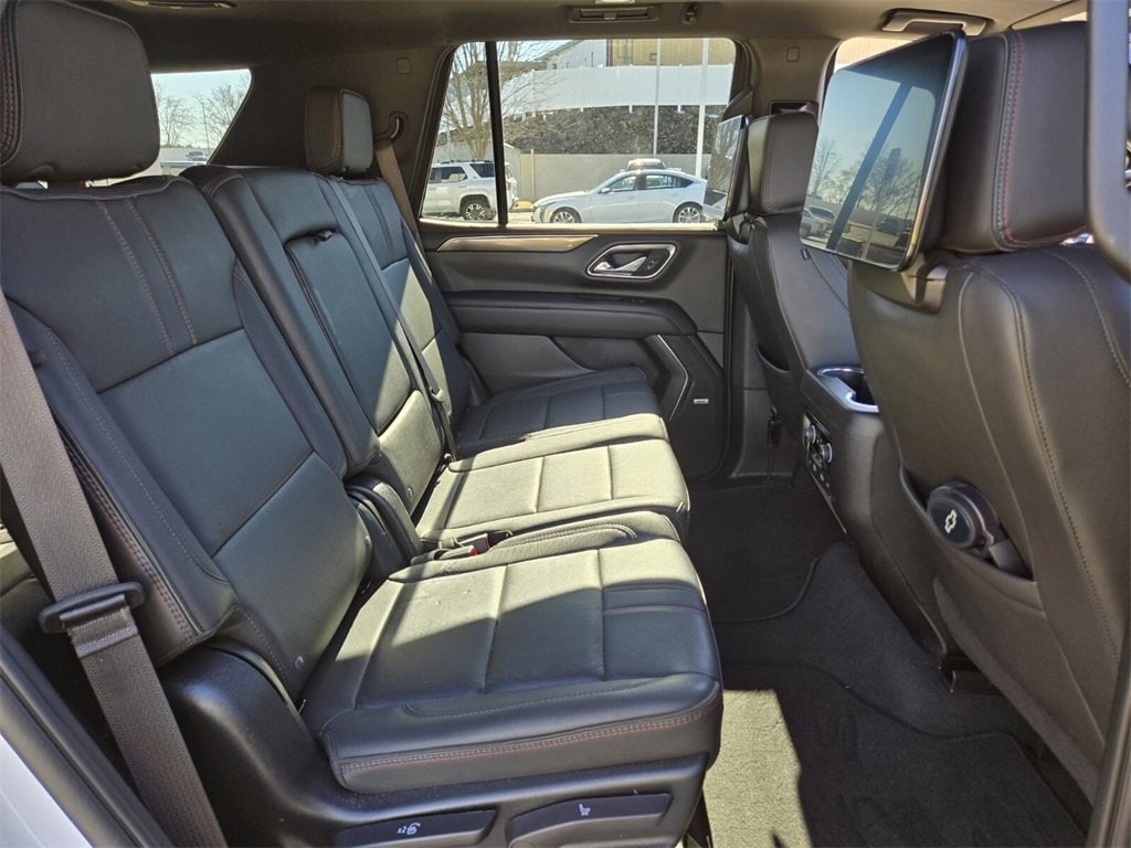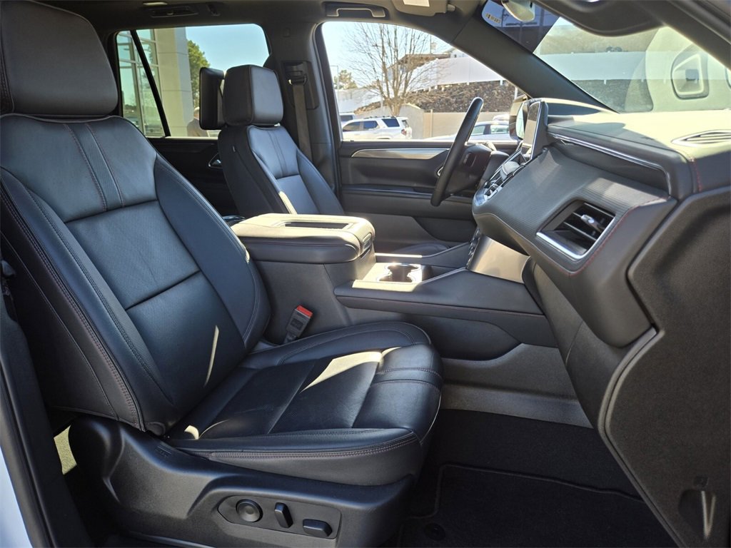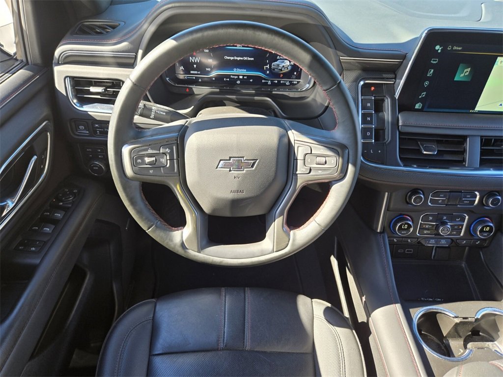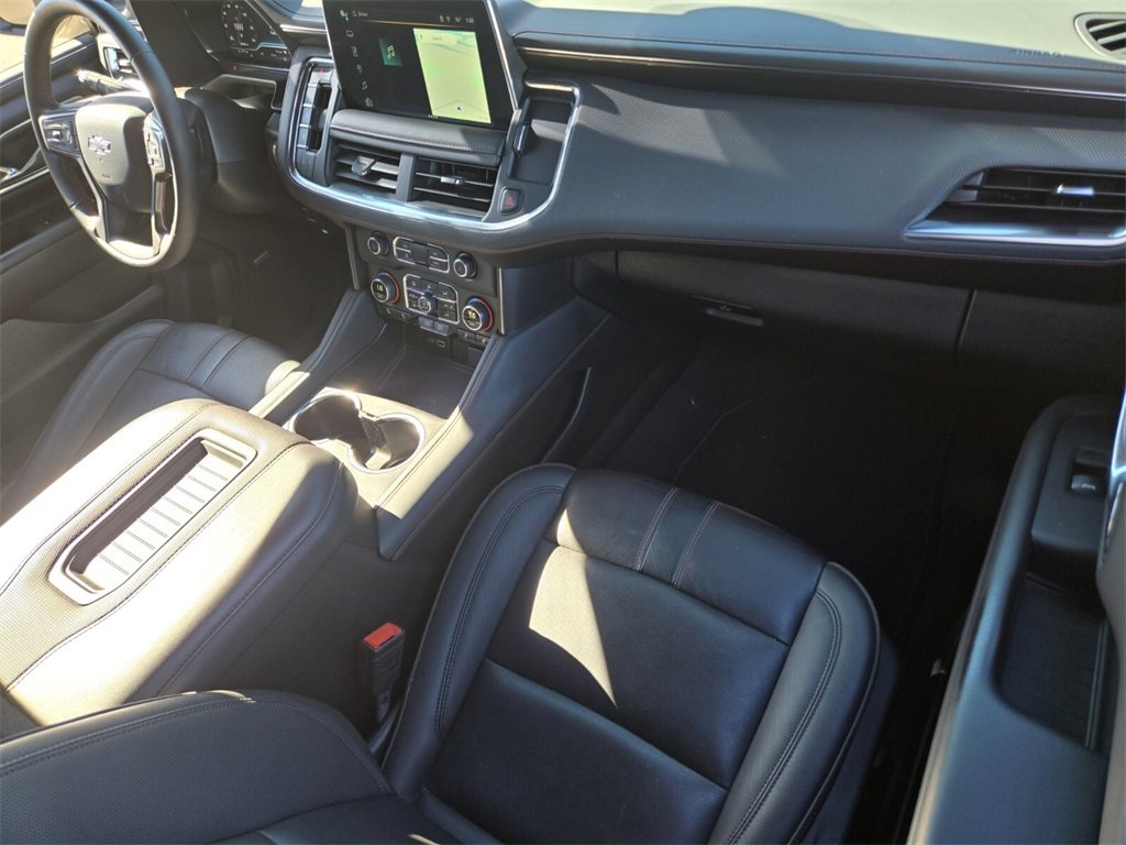 This 2024 Chevrolet Tahoe comes equipped with, 4WD, Jet Black/Victory Red Leather, 10-Way Power Driver & Passenger Seat Adjusters, 1st & 2nd Row Color-Keyed Carpeted Floor Mats, 3.23 Rear Axle Ratio, 3rd row seats: split-bench, 4-Wheel Disc Brakes, 9 Speakers, ABS brakes, Air Conditioning, All-Weather Cargo Mat (LPO), Alloy wheels, AM/FM radio: SiriusXM with 360L, Apple CarPlay/Android Auto, Auto High-beam Headlights, Auto-Dimming Inside Rear-View Mirror, Auto-dimming Rear-View mirror, Automatic temperature control, Bose 9-Speaker Stereo Audio System Feature, Brake assist, Bright Front & Rear Door Sill Plates, Bumpers: body-color, Color-Keyed Carpeting Floor Covering, Compass, Delay-off headlights, Driver & Front Outboard Passenger Airbags, Driver door bin, Driver vanity mirror, Dual front impact airbags, Dual front side impact airbags, Dual-Pane Power Panoramic Sunroof, Electronic Stability Control, Emergency communication system: OnStar and Chevrolet connected services capable, Enhanced Driver Information Center, Floor Console w/Storage Area, Four wheel independent suspension, Front anti-roll bar, Front Bucket Seats, Front Center Armrest, Front dual zone A/C, Front High-Back Reclining Bucket Seats, Front reading lights, Fully automatic headlights, Garage door transmitter, Hands-Free Rear Power Programmable Liftgate, Heated door mirrors, Heated Driver & Front Passenger Seats, Heated front seats, Illuminated entry, Infotainment Display, LED Daytime Running Lamps, Low tire pressure warning, Memory seat, Memory Settings for Driver, Navigation System, Occupant sensing airbag, Outside temperature display, Overhead airbag, Overhead console, Panic alarm, Passenger door bin, Passenger vanity mirror, Perforated Leather Seat Trim, Power door mirrors, Power driver seat, Power Liftgate, Power passenger seat, Power steering, Power windows, Preferred Equipment Group 1SP, Premium audio system: Chevrolet Infotainment 3 Premium, Premium Smooth Ride Suspension, Radio: Chevrolet Infotainment 3 Premium System, Rain sensing wipers, Rear air conditioning, Rear anti-roll bar, Rear reading lights, Rear seat center armrest, Rear Seat Media System, Rear window defroster, Rear window wiper, Remote keyless entry, Remote Start, Roof rack: xxxxxx, Security system, Set of 4 Wheel Locks (LPO), SiriusXM w/360L, Speed control, Speed-sensing steering, Split folding rear seat, Spoiler, Steering wheel mounted audio controls, Tachometer, Telescoping steering wheel, Tilt steering wheel, Traction control, Trip computer, Universal Home Remote, Variably intermittent wipers, Voltmeter, Wheels: 22" x 9" Bright Machined, Wireless Charging, Wrapped Steering Wheel, 4WD, Jet Black/Victory Red Leather. Odometer is 10554 miles below market average!