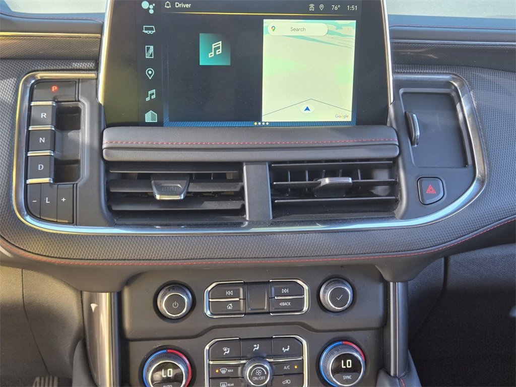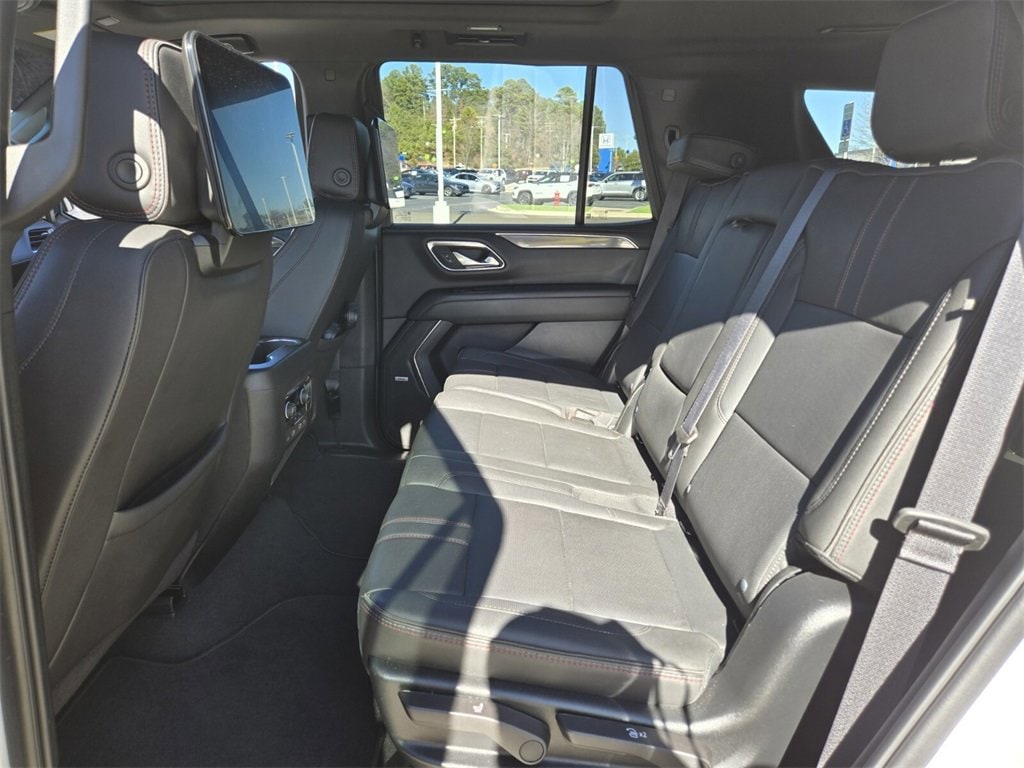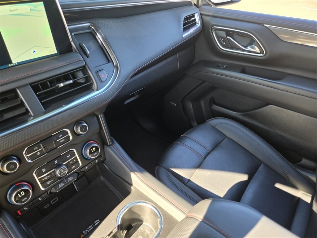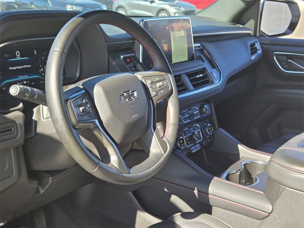 This 2024 Chevrolet Tahoe comes equipped with, 4WD, Jet Black/Victory Red Leather, 10-Way Power Driver & Passenger Seat Adjusters, 1st & 2nd Row Color-Keyed Carpeted Floor Mats, 3.23 Rear Axle Ratio, 3rd row seats: split-bench, 4-Wheel Disc Brakes, 9 Speakers, ABS brakes, Air Conditioning, All-Weather Cargo Mat (LPO), Alloy wheels, AM/FM radio: SiriusXM with 360L, Apple CarPlay/Android Auto, Auto High-beam Headlights, Auto-Dimming Inside Rear-View Mirror, Auto-dimming Rear-View mirror, Automatic temperature control, Bose 9-Speaker Stereo Audio System Feature, Brake assist, Bright Front & Rear Door Sill Plates, Bumpers: body-color, Color-Keyed Carpeting Floor Covering, Compass, Delay-off headlights, Driver & Front Outboard Passenger Airbags, Driver door bin, Driver vanity mirror, Dual front impact airbags, Dual front side impact airbags, Dual-Pane Power Panoramic Sunroof, Electronic Stability Control, Emergency communication system: OnStar and Chevrolet connected services capable, Enhanced Driver Information Center, Floor Console w/Storage Area, Four wheel independent suspension, Front anti-roll bar, Front Bucket Seats, Front Center Armrest, Front dual zone A/C, Front High-Back Reclining Bucket Seats, Front reading lights, Fully automatic headlights, Garage door transmitter, Hands-Free Rear Power Programmable Liftgate, Heated door mirrors, Heated Driver & Front Passenger Seats, Heated front seats, Illuminated entry, Infotainment Display, LED Daytime Running Lamps, Low tire pressure warning, Memory seat, Memory Settings for Driver, Navigation System, Occupant sensing airbag, Outside temperature display, Overhead airbag, Overhead console, Panic alarm, Passenger door bin, Passenger vanity mirror, Perforated Leather Seat Trim, Power door mirrors, Power driver seat, Power Liftgate, Power passenger seat, Power steering, Power windows, Preferred Equipment Group 1SP, Premium audio system: Chevrolet Infotainment 3 Premium, Premium Smooth Ride Suspension, Radio: Chevrolet Infotainment 3 Premium System, Rain sensing wipers, Rear air conditioning, Rear anti-roll bar, Rear reading lights, Rear seat center armrest, Rear Seat Media System, Rear window defroster, Rear window wiper, Remote keyless entry, Remote Start, Roof rack: xxxxxx, Security system, Set of 4 Wheel Locks (LPO), SiriusXM w/360L, Speed control, Speed-sensing steering, Split folding rear seat, Spoiler, Steering wheel mounted audio controls, Tachometer, Telescoping steering wheel, Tilt steering wheel, Traction control, Trip computer, Universal Home Remote, Variably intermittent wipers, Voltmeter, Wheels: 22" x 9" Bright Machined, Wireless Charging, Wrapped Steering Wheel, 4WD, Jet Black/Victory Red Leather. Odometer is 10554 miles below market average!