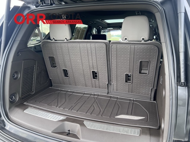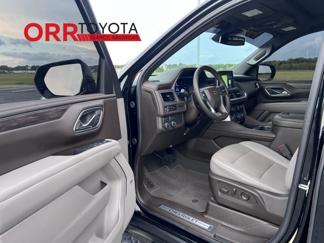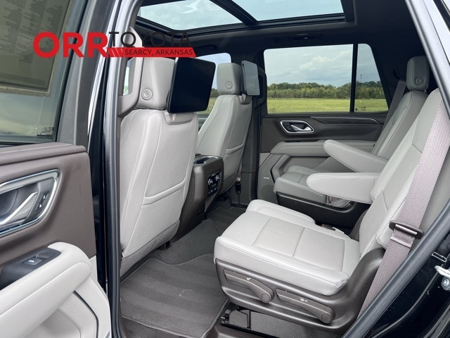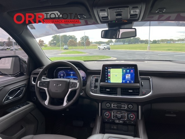 Black 2024 Chevrolet Tahoe Z71 4WD 10-Speed Automatic with Overdrive EcoTec3 5.3L V8 This Tahoe Z71 is nicely equipped with Advanced Trailering Package (Hitch View w/Pan/Zoom Image Adjustment, Integrated Trailer Brake Controller, and Smart Trailer Integration Indicator), Driver Alert Package (Lane Change Alert w/Side Blind Zone Alert and Rear Cross Traffic Alert), Luxury Package (2nd Row Pwr Release 60/40 Split-Folding Bench Seat, 3rd Row 60/40 Power-Folding Split-Bench Seat, HD Surround Vision, Heated 2nd Row Outboard Seats, Heated Steering Wheel, Memory Settings, Outside Heated Power-Adjustable Mirrors, Power Tilt & Telescopic Steering Column, and Rear Pedestrian Alert), Max Trailering Package (Extra Capacity Cooling System), Off-Road Capability Package (Air Ride Adaptive Suspension, Electronic Limited-Slip Differential, and Magnetic Ride Control Suspension), Z71 Off-Road Package, Preferred Equipment Group 2Z7 (1st & 2nd Row Color-Keyed Carpeted Floor Mats, 2-Speed Active Electronic AutoTrac Transfer Case, Auto-Dimming Inside Rear-View Mirror, Black Tubular Assist Steps, Bose 9-Speaker Stereo Audio System Feature, Bright Front & Rear Door Sill Plates, Color-Keyed Carpeting Floor Covering, Driver & Front Outboard Passenger Airbags, Enhanced Driver Information Center, Floor Console w/Storage Area, Front High-Approach Angle Fascia, Hands-Free Rear Power Programmable Liftgate, Hill Descent Control, LED Daytime Running Lamps, Memory Settings for Driver, Red Horizontal-Mounted Recovery Hooks, Remote Start, SiriusXM w/360L, Universal Home Remote, Wireless Charging, and Wrapped Steering Wheel), 4WD, Gideon/Very Dark Atmosphere Leather, Dual-Pane Power Panoramic Sunroof, 10-Way Power Driver & Passenger Seat Adjusters, 2nd Row Manual Bucket Seats, 3.23 Rear Axle Ratio, 3rd row seats: split-bench, 4-Wheel Disc Brakes, 9 Speakers, ABS brakes, Air Conditioning, All-Weather Cargo Mat (LPO), Alloy wheels, AM/FM radio: SiriusXM with 360L, Apple CarPlay/Android Auto, Auto High-beam Headlights, Auto-dimming Rear-View mirror, Automatic temperature control, Brake assist, Bumpers: body-color, Compass, Delay-off headlights, Driver door bin, Driver vanity mirror, Dual front impact airbags, Dual front side impact airbags, Electronic Stability Control, Emergency communication system: OnStar and Chevrolet connected services capable, Four wheel independent suspension, Front anti-roll bar, Front Bucket Seats, Front Center Armrest, Front dual zone A/C, Front High-Back Reclining Bucket Seats, Front reading lights, Fully automatic headlights, Garage door transmitter, Heated door mirrors, Heated Driver & Front Passenger Seats, Heated front seats, Illuminated entry, Infotainment Display, Leather-Appointed Seat Trim, Low tire pressure warning, Memory seat, Navigation System, Occupant sensing airbag, Outside temperature display, Overhead airbag, Overhead console, Panic alarm, Passenger door bin, Passenger vanity mirror, Power door mirrors, Power driver seat, Power Liftgate, Power passenger seat, Power steering, Power windows, Premium audio system: Chevrolet Infotainment 3 Premium, Premium Smooth Ride Suspension, Radio: Chevrolet Infotainment 3 Premium System, Rain sensing wipers, Rear air conditioning, Rear anti-roll bar, Rear reading lights, Rear seat center armrest, Rear Seat Media System, Rear window defroster, Rear window wiper, Remote keyless entry, Roof rack: xxxxxx, Security system, Speed control, Speed-sensing steering, Split folding rear seat, Spoiler, Steering wheel mounted audio controls, Tachometer, Telescoping steering wheel, Tilt steering wheel, Traction control, Trip computer, Variably intermittent wipers, Voltmeter, and Wheels: 20" x 9" Machined Aluminum. One owner Carfax, Carfax no accidents, Back up camera, Bluetooth, Blind spot monitor, Second row buckets seats, REAR SEAT MEDIA SYSTEM, INCLUDES DUAL REAR SEAT-MOUNTED 12.6" DIAGONAL COLOR-TOUCH LCD HD SCREENS, 4WD, Gideon/Very Dark Atmosphere Leather, 2nd Row Pwr Release 60/40 Split-Folding