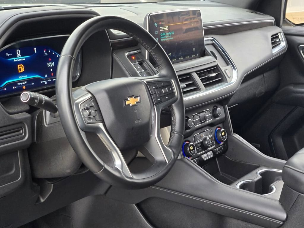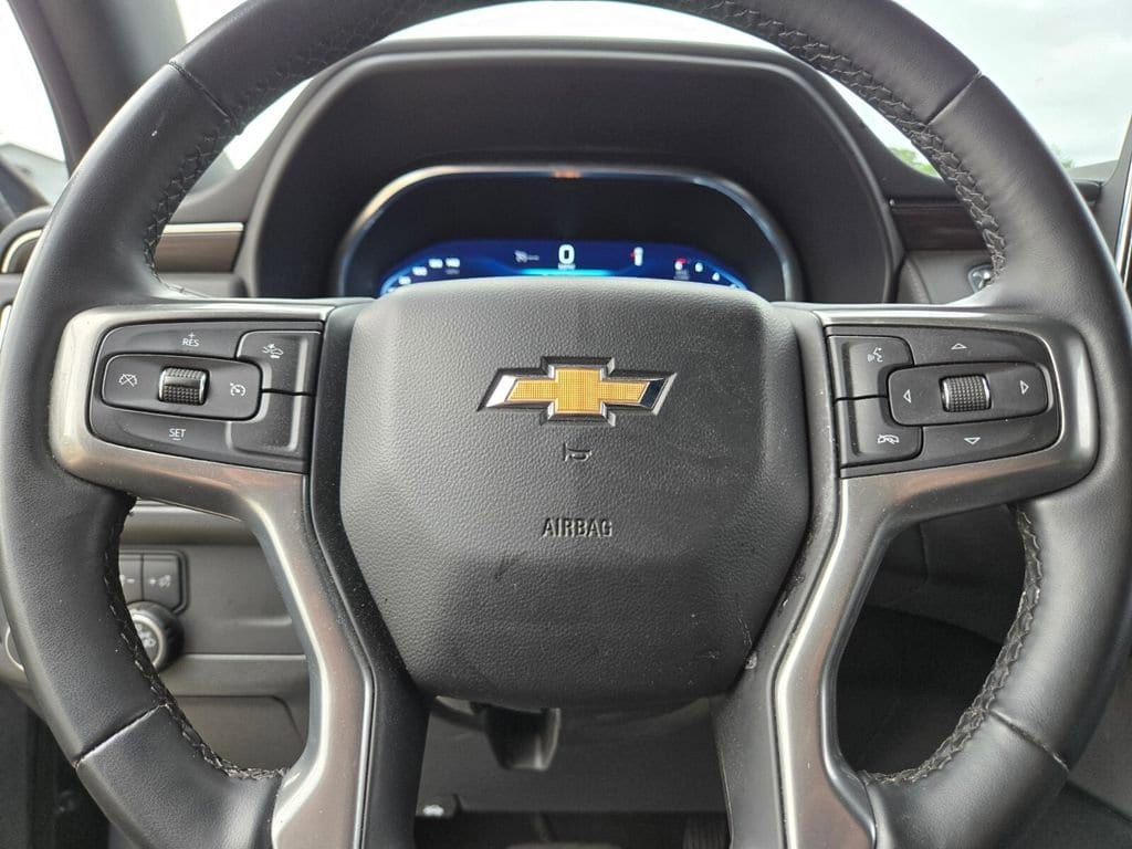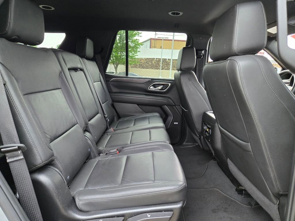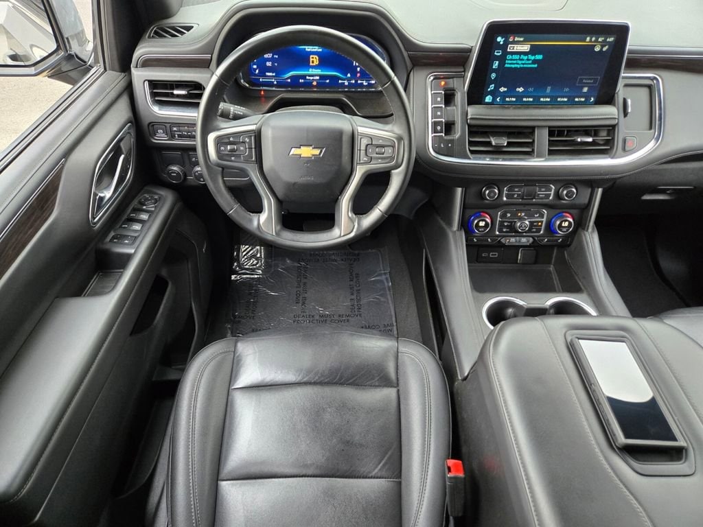 This 2024 Chevrolet Tahoe comes equipped with, Black Leather, 10-Way Power Driver & Passenger Seat Adjusters, 1st & 2nd Row Color-Keyed Carpeted Floor Mats, 3.23 Rear Axle Ratio, 3rd row seats: split-bench, 4-Wheel Disc Brakes, 9 Speakers, ABS brakes, Air Conditioning, Alloy wheels, AM/FM radio: SiriusXM with 360L, Apple CarPlay/Android Auto, Auto High-beam Headlights, Auto-Dimming Inside Rear-View Mirror, Auto-dimming Rear-View mirror, Automatic temperature control, Bose 9-Speaker Stereo Audio System Feature, Brake assist, Bright Front & Rear Door Sill Plates, Bumpers: body-color, Color-Keyed Carpeting Floor Covering, Compass, Delay-off headlights, Deleted 3 Years of OnStar Remote Access, Driver & Front Outboard Passenger Airbags, Driver door bin, Driver vanity mirror, Dual front impact airbags, Dual front side impact airbags, Electronic Stability Control, Emergency communication system: OnStar and Chevrolet connected services capable, Enhanced Driver Information Center, Floor Console w/Storage Area, Four wheel independent suspension, Front anti-roll bar, Front Bucket Seats, Front Center Armrest, Front dual zone A/C, Front High-Back Reclining Bucket Seats, Front reading lights, Fully automatic headlights, Garage door transmitter, Hands-Free Rear Power Programmable Liftgate, Heated door mirrors, Heated Driver & Front Passenger Seats, Heated front seats, Illuminated entry, Infotainment Display, Leather-Appointed Seat Trim, LED Daytime Running Lamps, License Plate Front Mounting Package, Low tire pressure warning, Memory seat, Memory Settings for Driver, Navigation System, Occupant sensing airbag, Outside temperature display, Overhead airbag, Overhead console, Panic alarm, Passenger door bin, Passenger vanity mirror, Power door mirrors, Power driver seat, Power Liftgate, Power passenger seat, Power steering, Power windows, Preferred Equipment Group 1LT, Premium audio system: Chevrolet Infotainment 3 Premium, Premium Smooth Ride Suspension, Radio: Chevrolet Infotainment 3 Premium System, Rain sensing wipers, Rear air conditioning, Rear anti-roll bar, Rear reading lights, Rear seat center armrest, Rear window defroster, Rear window wiper, Remote keyless entry, Remote Start, Roof rack: xxxxxx, Security system, SiriusXM w/360L, Speed control, Speed-sensing steering, Split folding rear seat, Spoiler, Steering wheel mounted audio controls, Tachometer, Telescoping steering wheel, Tilt steering wheel, Traction control, Trip computer, Universal Home Remote, Variably intermittent wipers, Voltmeter, Wheels: 18" x 8.5" Bright Silver Painted Aluminum, Wireless Charging, Wrapped Steering Wheel, Black Leather.
