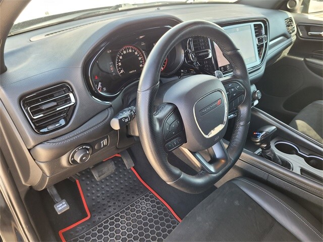 This 2021 Dodge Durango comes equipped with Blacktop Package (Gloss Black Badges, Gloss Black Exterior Mirrors, GT Gloss Black Badging, Satin Black Dodge Tail Lamp Badge, and Wheels: 20" x 8.0" Black Noise Aluminum), Quick Order Package 2BE GT Plus (115V Auxiliary Power Outlet, 180 Amp Alternator, Auto-Dimming Exterior Driver Mirror, Dual Remote USB Port - Charge Only, Exterior Mirrors w/Memory, Exterior Mirrors w/Supplemental Signals, Heated Front Seats, Heated Second Row Seats, Heated Steering Wheel, Leather Suede Bucket Seats, Power 6x9 Multi-Function Foldaway Mirrors, Power 8-Way Driver Memory 6-Way Passenger Seats, Power Driver/Passenger 4-Way Lumbar Adjust, Power Liftgate, Radio/Driver Seat/Mirrors Memory, Remote Start System, Security Alarm, Sun Visors w/Illuminated Vanity Mirrors, Tungsten Accent Stitching, and Universal Garage Door Opener), AWD, GPS Navigation, 1-Year Trial (Registration Required), 10.1" Touchscreen Display, 2nd Row Fold/Tumble Captain Chairs, 2nd Row Mini Console w/Cupholders, 2nd Row Seat Mounted Inboard Armrests, 3.45 Rear Axle Ratio, 3rd Row Floor Mat & Mini Console, 3rd row seats: split-bench, 4-Wheel Disc Brakes, 4G LTE Wi-Fi Hot Spot, 6 Speakers, 6-Passenger Seating, ABS brakes, Air Conditioning, Alloy wheels, AM/FM radio: SiriusXM, Anti-whiplash front head restraints, Apple CarPlay, Apple CarPlay/Android Auto, Auto-dimming Rear-View mirror, Automatic temperature control, Brake assist, Bumpers: body-color, Cloth Bucket Seats w/Shift Insert, Compass, Connected Travel & Traffic Services, Delay-off headlights, Disassociated Touchscreen Display, Driver door bin, Driver vanity mirror, Dual front impact airbags, Dual front side impact airbags, Electronic Stability Control, For Details Visit DriveUconnect.com, Four wheel independent suspension, Front anti-roll bar, Front Bucket Seats, Front Center Armrest w/Storage, Front dual zone A/C, Front fog lights, Front License Plate Bracket, Front reading lights, Fully automatic headlights, Global Telematics Box Module (TBM), Google Android Auto, GPS Antenna Input, HD Radio, Heated door mirrors, Illuminated entry, Integrated Center Stack Radio, Integrated Voice Command w/Bluetooth, Knee airbag, Leather steering wheel, Low tire pressure warning, Occupant sensing airbag, Outside temperature display, Overhead airbag, Overhead console, Panic alarm, ParkView Rear Back-Up Camera, Passenger door bin, Passenger vanity mirror, Power door mirrors, Power driver seat, Power steering, Power windows, Radio data system, Radio: Uconnect 4 w/8.4" Display, Radio: Uconnect 5 Nav w/10.1" Display, Rear air conditioning, Rear anti-roll bar, Rear reading lights, Rear seat center armrest, Rear window defroster, Rear window wiper, Remote keyless entry, SiriusXM Guardian - Included Trial (B), SiriusXM Satellite Radio, SiriusXM w/360L, Speed control, Speed-sensing steering, Speed-Sensitive Wipers, Split folding rear seat, Spoiler, Steering wheel mounted audio controls, Tachometer, Telescoping steering wheel, Tilt steering wheel, Traction control, Trip computer, Tungsten Interior Accent Stitch, USB Host Flip, Variably intermittent wipers, Voltmeter, and Wheels: 20" x 8.0" Fine SilveR. AWD, 115V Auxiliary Power Outlet, 180 Amp Alternator, Auto-Dimming Exterior Driver Mirror, Blacktop Package, Dual Remote USB Port - Charge Only, Exterior Mirrors w/Memory, Exterior Mirrors w/Supplemental Signals, Gloss Black Badges, Gloss Black Exterior Mirrors, GPS Navigation, GT Gloss Black Badging, Heated Front Seats, Heated Second Row Seats, Heated Steering Wheel, Leather Suede Bucket Seats, Power 6x9 Multi-Function Foldaway Mirrors, Power 8-Way Driver Memory 6-Way Passenger Seats, Power Driver/Passenger 4-Way Lumbar Adjust, Power Liftgate, Quick Order Package 2BE GT Plus, Radio/Driver Seat/Mirrors Memory, Remote Start System, Satin Black Dodge Tail Lamp Badge, Security Alarm, Sun Visors w/Illuminated Vanity Mirrors, Tungsten Accent Stitching, Universal Garage Door Opener, Wheels: 20" x 8.0" Black Noise
