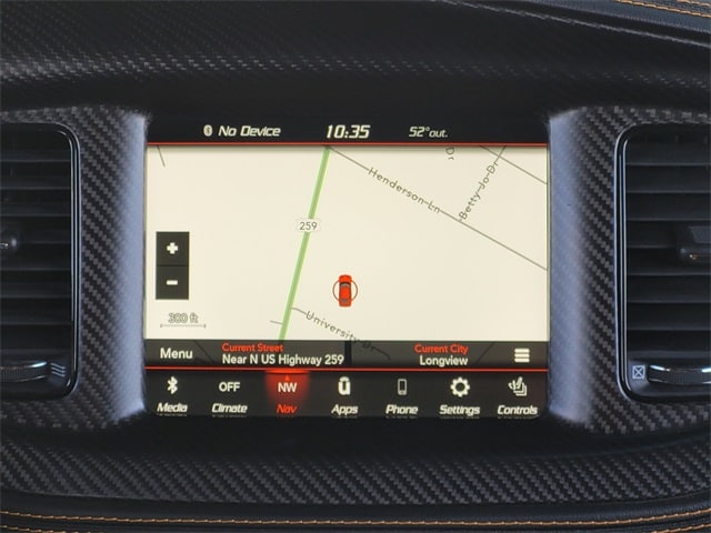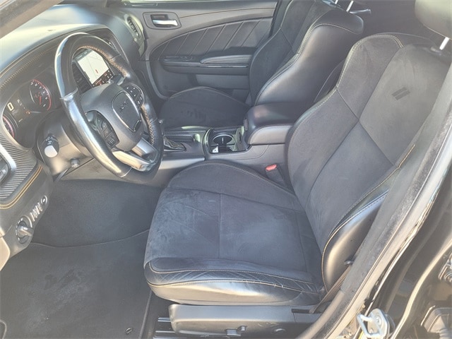 This 2022 Dodge Charger comes equipped with Carbon/Suede Interior Package (Real Carbon Fiber Interior Accents and Suede Headliner), Driver Convenience Group (Bi-Function HID Projector Head Lamps), harman/kardon Audio Group (19 harman/kardon GreenEdge Speakers, harman/kardon GreenEdge Amp, and Surround Sound), HEMI Orange Package (392 Fender Badge, 392 IP Badge, Black Stripe w/Orange Tracer, Brake Calipers - Orange, Flat-Bottom Steering Wheel, Gloss Black I/P Cluster Trim Rings, HEMI Orange Badges, Nappa/Alcantara Seats // Logo, Orange Interior Accent Stitch, Premium-Stitched Dash Panel, Satin Black Dodge Tail Lamp Badge, Wheels: 20" x 11" Carbon Black Warp Speed, Heated 2nd Row Seats, Heated Front Seats, Illuminated Rear Cupholders, Power 2-Way Driver Lumbar Adjust, Power 2-Way Passenger Lumbar Adjust, Power Front Driver/Passenger Seats, Radio/Driver Seat/Mirrors Memory, Rear Seat Armrest w/Storage Cupholder, and Ventilated Front Seats), Navigation & Travel Group (1-Yr SiriusXM Guardian Trial, 2-Piece Shark Fin Antenna, 4G LTE Wi-Fi Hot Spot, 5-Year SiriusXM Traffic Service, 5-Year SiriusXM Travel Link Service, 8.4" Touchscreen Display, Apple CarPlay, For Details, Visit DriveUconnect.com, Google Android Auto, GPS Antenna Input, GPS Navigation, HD Radio, Integrated Center Stack Radio, Integrated Voice Command w/Bluetooth, Media Hub (2 USB, AUX), Radio: Uconnect 4C Nav w/8.4" Display, SiriusXM Traffic Plus, SiriusXM Travel Link, and USB Host Flip), Plus Group (Auto Adjust In Reverse Exterior Mirrors, Auto-Dimming Exterior Driver Mirror, Black-Edged Premium Floormats, Blind Spot & Cross Path Detection, Blind Spot Memory/Power/Heat Mirror, Body Color Exterior Mirrors, Driver & Passenger Lower LED Lamps, Exterior Mirrors Courtesy Lamps, Exterior Mirrors w/Heating Element, Front Overhead LED Lighting, Power Tilt/Telescope Steering Column, and Scat Pack Logo Nappa/Alcantara Seat), Quick Order Package 21V Scat Pack Widebody (Adaptive Damping Suspension, All Speed Traction Control, Body Color Fender Flares, Brembo 6-Pot Fixed Front Caliper Brakes, Performance Shift Indicator, Rhombi 2-Pc Wheel Center Cap, and Widebody Competition Suspension), Technology Group (Adaptive Cruise Control w/Stop, Advanced Brake Assist, Auto High Beam Headlamp Control, Full Speed FWD Collision Warn Plus, Lane Departure Warning Plus, and Rain Sensitive Windshield Wipers), Widebody Package, Black Artificial Leather, 4-Wheel Disc Brakes, 6 Speakers, ABS brakes, Air Conditioning, Alloy wheels, AM/FM radio: SiriusXM, Anti-whiplash front head restraints, Apple CarPlay/Android Auto, Auto-dimming Rear-View mirror, Automatic temperature control, Brake assist, Bumpers: body-color, Cloth Performance Seats w/Heat, Compass, Delay-off headlights, Driver door bin, Driver vanity mirror, Dual front impact airbags, Dual front side impact airbags, Electronic Stability Control, Emergency communication system: SiriusXM Guardian, Four wheel independent suspension, Front anti-roll bar, Front Bucket Seats, Front Center Armrest, Front dual zone A/C, Front fog lights, Front reading lights, Fully automatic headlights, Garage door transmitter: HomeLink, Heated door mirrors, Heated front seats, Heated steering wheel, Illuminated entry, Knee airbag, Leather Shift Knob, Low tire pressure warning, Occupant sensing airbag, Outside temperature display, Overhead airbag, Overhead console, Panic alarm, ParkView Rear Back-Up Camera, Passenger door bin, Passenger vanity mirror, Power door mirrors, Power driver seat, Power steering, Power Sunroof, Power windows, Radio: Uconnect 4C w/8.4" Display, Rear anti-roll bar, Rear reading lights, Rear seat center armrest, Rear window defroster, Remote keyless entry, Security system, Speed control, Speed-Sensitive Wipers, Split folding rear seat, Spoiler, Sport steering wheel, Steering wheel mounted audio controls, Tachometer, Telescoping steering wheel, Tilt steering wheel, Traction control, Trip computer, Variably intermittent wipers, and Wheels: 20" x 9"