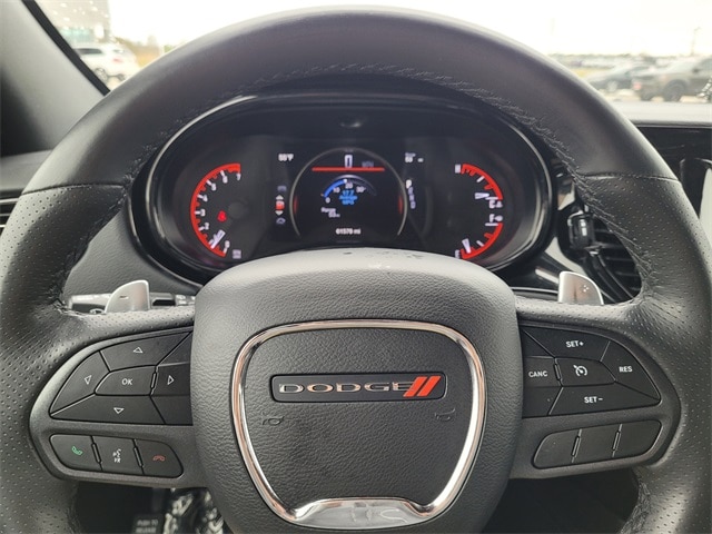 This 2022 Dodge Durango comes equipped with Quick Order Package 2BD GT, Trailer Tow Group IV (7 & 4 Pin Wiring Harness, Class IV Receiver Hitch, Heavy-Duty Engine Cooling, Rear Load Leveling Suspension, and Trailer Brake Control), 3.27 Rear Axle Ratio, 3rd row seats: split-bench, 4-Wheel Disc Brakes, 6 Speakers, ABS brakes, Air Conditioning, Alloy wheels, AM/FM radio: SiriusXM, Anti-whiplash front head restraints, Apple CarPlay, Apple CarPlay/Android Auto, Auto-dimming Rear-View mirror, Auto-leveling suspension, Automatic temperature control, Brake assist, Bumpers: body-color, Cloth Bucket Seats w/Shift Insert, Compass, Delay-off headlights, Driver door bin, Driver vanity mirror, Dual front impact airbags, Dual front side impact airbags, Electronic Stability Control, For More Info, Call 800-643-2112, Four wheel independent suspension, Front anti-roll bar, Front Bucket Seats, Front Center Armrest w/Storage, Front dual zone A/C, Front fog lights, Front reading lights, Fully automatic headlights, Google Android Auto, GPS Antenna Input, Heated door mirrors, Heated front seats, Heated steering wheel, Illuminated entry, Integrated Center Stack Radio, Integrated Voice Command w/Bluetooth, Knee airbag, Leather steering wheel, Low tire pressure warning, Occupant sensing airbag, Outside temperature display, Overhead airbag, Overhead console, Panic alarm, ParkView Rear Back-Up Camera, Passenger door bin, Passenger vanity mirror, Power door mirrors, Power driver seat, Power Liftgate, Power steering, Power Sunroof, Power windows, Radio data system, Radio: Uconnect 4 w/8.4" Display, Rear air conditioning, Rear anti-roll bar, Rear reading lights, Rear seat center armrest, Rear window defroster, Rear window wiper, Remote keyless entry, SiriusXM Radio Service, SiriusXM Satellite Radio, Speed control, Speed-sensing steering, Speed-Sensitive Wipers, Split folding rear seat, Spoiler, Steering wheel mounted audio controls, Tachometer, Telescoping steering wheel, Tilt steering wheel, Traction control, Trip computer, USB Host Flip, Variably intermittent wipers, Voltmeter, and Wheels: 20" x 8.0" Fine Silver. CARFAX One-Owner. Priced below KBB Fair Purchase Price! 19/26 City/Highway MPG 7 & 4 Pin Wiring Harness, Class IV Receiver Hitch, Heavy-Duty Engine Cooling, Quick Order Package 2BD GT, Rear Load Leveling Suspension, Trailer Brake Control, Trailer Tow Group IV.