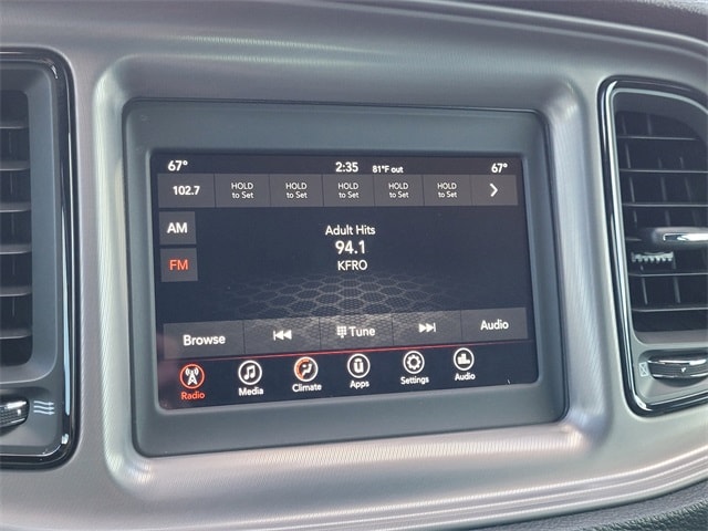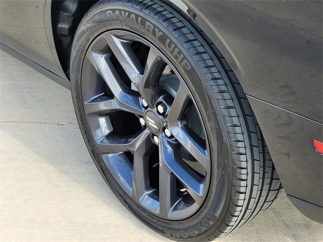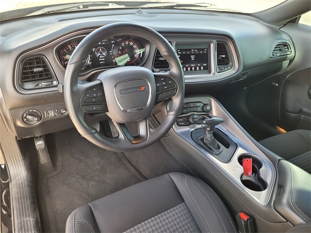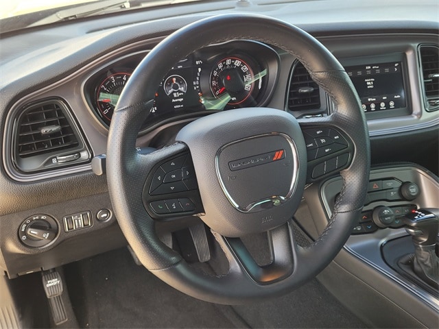 This 2023 Dodge Challenger comes equipped with Blacktop Package (Black Fuel Filler Door, Black Grille w/Bezel, Challenger Blacktop Grille Badge, Gloss Black I/P Cluster Trim Rings, Leather Performance Steering Wheel, Satin Black Dodge Tail Lamp Badge, and Wheels: 20" x 8.0" Black Noise Painted), Quick Order Package 2EA, 276 Watt Amplifier, 4-Wheel Disc Brakes, 6 Speakers, ABS brakes, Air Conditioning, Alloy wheels, AM/FM radio, Anti-Lock Brakes, Anti-whiplash front head restraints, Apple CarPlay, Apple CarPlay/Android Auto, Auto Leather Wrapped Shift Knob, Auto-dimming Rear-View mirror, Automatic temperature control, AutoStick Automatic Transmission, Body Color Exterior Mirrors, Brake assist, Bumpers: body-color, Delay-off headlights, Driver door bin, Driver vanity mirror, Dual front impact airbags, Dual front side impact airbags, Electronic Stability Control, Exterior Mirrors w/Heating Element, Four wheel independent suspension, Front anti-roll bar, Front Bucket Seats, Front Center Armrest, Front dual zone A/C, Front License Plate Bracket, Front reading lights, Fully automatic headlights, Google Android Auto, GPS Antenna Input, Heated door mirrors, Houndstooth Cloth Sport Seat, Illuminated entry, Integrated Center Stack Radio, Integrated Voice Command w/Bluetooth, Leather Shift Knob, Low tire pressure warning, Manuf Statement of Origin, Media Hub (2 USB, AUX), Outside temperature display, Overhead airbag, Overhead console, Panic alarm, ParkView Rear Back-Up Camera, Passenger door bin, Passenger vanity mirror, Power door mirrors, Power driver seat, Power steering, Power windows, Radio data system, Radio: Uconnect 4 w/7" Display, Rear anti-roll bar, Rear reading lights, Rear seat center armrest, Rear window defroster, Remote keyless entry, Security system, Speed control, Speed-sensing steering, Split folding rear seat, Spoiler, Steering wheel mounted audio controls, Tachometer, Telescoping steering wheel, Tilt steering wheel, Tip Start, Traction control, Trip computer, USB Host Flip, Variably intermittent wipers, and Wheels: 18" x 7.5" Aluminum Fine Silver. Priced below KBB Fair Purchase Price! 19/30 City/Highway MPG Black Fuel Filler Door, Black Grille w/Bezel, Blacktop Package, Challenger Blacktop Grille Badge, Gloss Black I/P Cluster Trim Rings, Leather Performance Steering Wheel, Quick Order Package 2EA, Satin Black Dodge Tail Lamp Badge, Wheels: 20" x 8.0" Black Noise Painted.