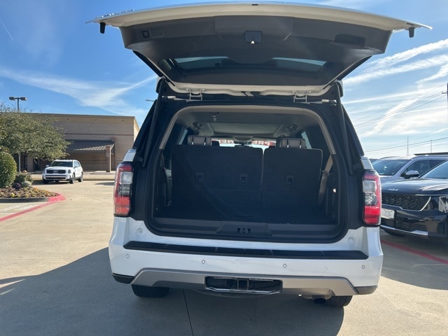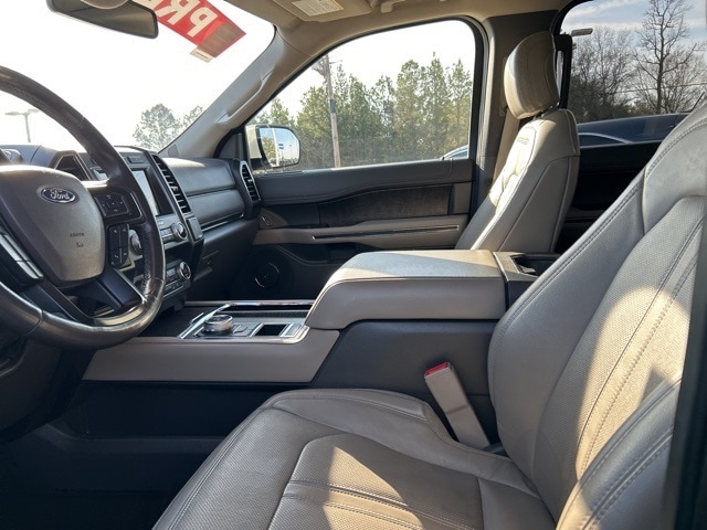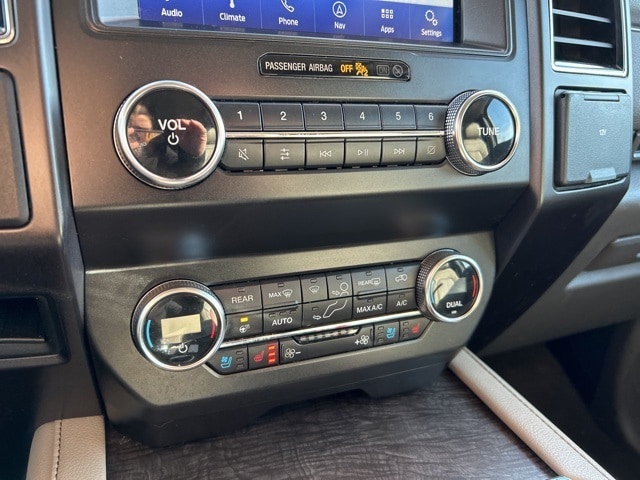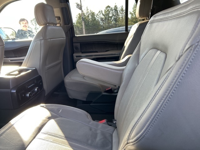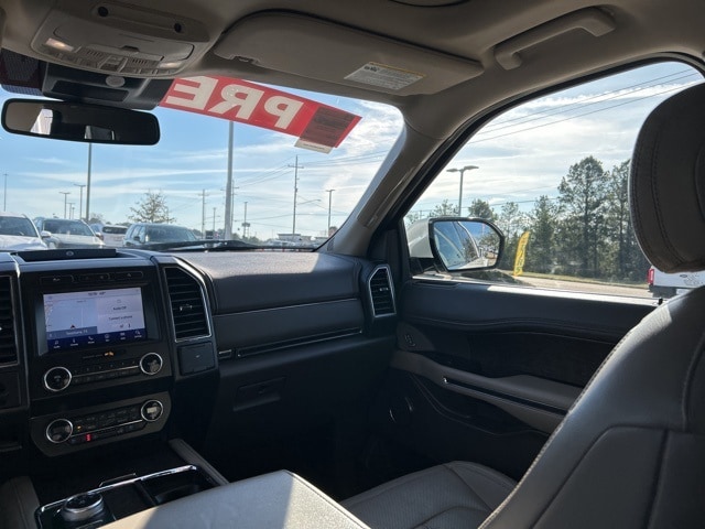 The 2020 Ford Expedition comes with the following features; Equipment Group 301A (Adaptive Cruise Control, Ford Co-Pilot360 Assist, Panoramic Vista Roof, and Voice-Activated Touch-Screen Navigation System), 12 Speakers, 2nd Row Leather-Trimmed Captain's Chairs w/Armrest, 3.15 Axle Ratio, 3rd row seats: split-bench, 4-Wheel Disc Brakes, ABS brakes, Adjustable pedals, Air Conditioning, Alloy wheels, AM/FM radio: SiriusXM, Auto High-beam Headlights, Auto-dimming door mirrors, Auto-dimming Rear-View mirror, Automatic temperature control, Brake assist, Bumpers: body-color, Compass, Delay-off headlights, Driver door bin, Driver vanity mirror, Dual front impact airbags, Dual front side impact airbags, Electronic Stability Control, Emergency communication system: SYNC 3 911 Assist, Exterior Parking Camera Rear, Four wheel independent suspension, Front anti-roll bar, Front Bucket Seats, Front Center Armrest, Front dual zone A/C, Front fog lights, Front reading lights, Fully automatic headlights, Garage door transmitter, Heated & Cooled Leather Front Captain's Chairs, Heated door mirrors, Heated front seats, Heated rear seats, Heated steering wheel, Illuminated entry, Leather steering wheel, LED Headlamps & Fog Lamps, Low tire pressure warning, Memory seat, Occupant sensing airbag, Outside temperature display, Overhead airbag, Overhead console, Panic alarm, Passenger door bin, Passenger vanity mirror, Pedal memory, Power door mirrors, Power driver seat, Power Liftgate, Power passenger seat, Power steering, Power windows, Radio data system, Radio: B&O Sound System by Bang & Olufsen, Rain sensing wipers, Rear air conditioning, Rear anti-roll bar, Rear audio controls, Rear reading lights, Rear window defroster, Rear window wiper, Reclining 3rd row seat, Remote keyless entry, Roof rack: rails only, Security system, SiriusXM Satellite Radio, Speed control, Speed-sensing steering, Speed-Sensitive Wipers, Split folding rear seat, Steering wheel memory, Steering wheel mounted audio controls, SYNC 3 Communications & Entertainment System, Tachometer, Telescoping steering wheel, Tilt steering wheel, Traction control, Trip computer, Turn signal indicator mirrors, Variably intermittent wipers, Ventilated front seats, Voltmeter, and Wheels: 20" Premium Dark Tarnished Painted.