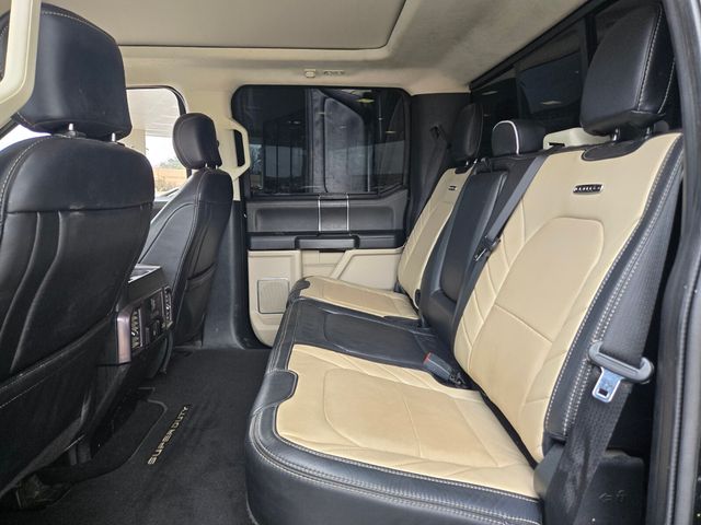 This 2020 Ford F-450SD comes equipped with FX4 Off-Road Package (Hill Descent Control, Off-Road Specifically Tuned Shock Absorbers, and Unique FX4 Off-Road Box Decal), GVWR: 14,000 lb Payload Package, Order Code 778A, 4WD, Navigation System, 10 Speakers, 110V/400W Outlet, 19.5" Forged Polished Aluminum Wheels, 32.5K 5th Wheel Hitch Kit (Pre-Installed), 397 Amp Alternators, 4-Wheel Disc Brakes, ABS brakes, Adjustable pedals, Air Conditioning, Alloy wheels, AM/FM radio: SiriusXM, Auto High-beam Headlights, Auto tilt-away steering wheel, Auto-dimming Rear-View mirror, Automatic temperature control, Brake assist, Bumpers: body-color, Compass, Delay-off headlights, Driver door bin, Driver vanity mirror, Dual front impact airbags, Dual front side impact airbags, Dual rear wheels, Electronic Stability Control, Emergency communication system: SYNC 3 911 Assist, Engine Block Heater, Exterior Parking Camera Rear, Flow-Through Console, Front anti-roll bar, Front Bucket Seats, Front Center Armrest, Front dual zone A/C, Front fog lights, Front reading lights, Fully automatic headlights, Garage door transmitter, Gooseneck Dual Hitch Kit (Pre-Installed), Heated door mirrors, Heated front seats, Heated rear seats, Heated steering wheel, Illuminated entry, Leather steering wheel, Limited Slip w/4.30 Axle Ratio, Memory seat, Outside temperature display, Overhead airbag, Overhead console, Panic alarm, Passenger door bin, Passenger vanity mirror, Pedal memory, Power door mirrors, Power driver seat, Power moonroof, Power passenger seat, Power steering, Power windows, Radio data system, Radio: B&O System by Bang & Olufsen, Rain sensing wipers, Rapid-Heat Supplemental Cab Heater, Rear anti-roll bar, Rear Parking Sensors, Rear reading lights, Rear seat center armrest, Rear step bumper, Rear window defroster, Remote keyless entry, Security system, SiriusXM Radio, Speed control, Speed-sensing steering, Split folding rear seat, Steering wheel memory, Steering wheel mounted A/C controls, Steering wheel mounted audio controls, SYNC 3 Communications & Entertainment System, Tachometer, Telescoping steering wheel, Tilt steering wheel, Traction control, Trip computer, Turn signal indicator mirrors, Unique Limited 2-Tone Leather 40/Console/40 Seats, Variably intermittent wipers, and Ventilated front seats. 4WD, FX4 Off-Road Package, GVWR: 14,000 lb Payload Package, Hill Descent Control, Navigation System, Off-Road Specifically Tuned Shock Absorbers, Order Code 778A, Unique FX4 Off-Road Box Decal.