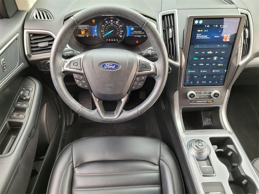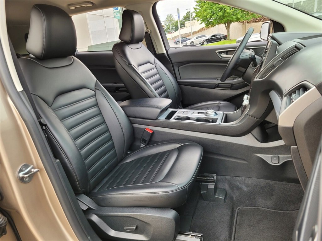 This 2021 Ford Edge comes equipped with, AWD, 110V/150W AC Power Outlet, 3.80 Axle Ratio, 4-Wheel Disc Brakes, 6 Speakers, ABS brakes, ActiveX Seating Material Heated Bucket Seats, Air Conditioning, Alloy wheels, AM/FM radio: SiriusXM with 360L, Auto High-beam Headlights, Auto-dimming Rear-View mirror, Automatic temperature control, Brake assist, Bumpers: body-color, Compass, Convenience Package, Delay-off headlights, Driver door bin, Driver vanity mirror, Dual front impact airbags, Dual front side impact airbags, Electronic Stability Control, Emergency communication system: SYNC 4 911 Assist, Equipment Group 201A, FordPass Connect, Four wheel independent suspension, Front & Rear Floor Liners w/Carpet Mats, Front anti-roll bar, Front Bucket Seats, Front Center Armrest w/Storage, Front dual zone A/C, Front fog lights, Front reading lights, Fully automatic headlights, Heated door mirrors, Heated front seats, Heated Steering Wheel, Illuminated entry, Knee airbag, Low tire pressure warning, Occupant sensing airbag, Outside temperature display, Overhead airbag, Overhead console, Panic alarm, Passenger door bin, Passenger vanity mirror, Perimeter Alarm, Power door mirrors, Power driver seat, Power Liftgate, Power passenger seat, Power steering, Power windows, Radio: AM/FM Stereo/MP3 Capable, Rear anti-roll bar, Rear reading lights, Rear seat center armrest, Rear window defroster, Rear window wiper, Remote keyless entry, Remote Start System, Silver Roof-Rack Side Rails, SiriusXM w/360L, Speed control, Speed-Sensitive Wipers, Split folding rear seat, Spoiler, Steering wheel mounted audio controls, SYNC 4A w/Enhanced Voice Recognition, Tachometer, Telescoping steering wheel, Tilt steering wheel, Traction control, Trip computer, Universal Garage Door Opener (UGDO), Variably intermittent wipers, Wheels: 18" Bright-Machined Aluminum, Wheels: 18" Sparkle Silver-Painted Aluminum, Wireless Charging Pad, AWD. Odometer is 50118 miles below market average!