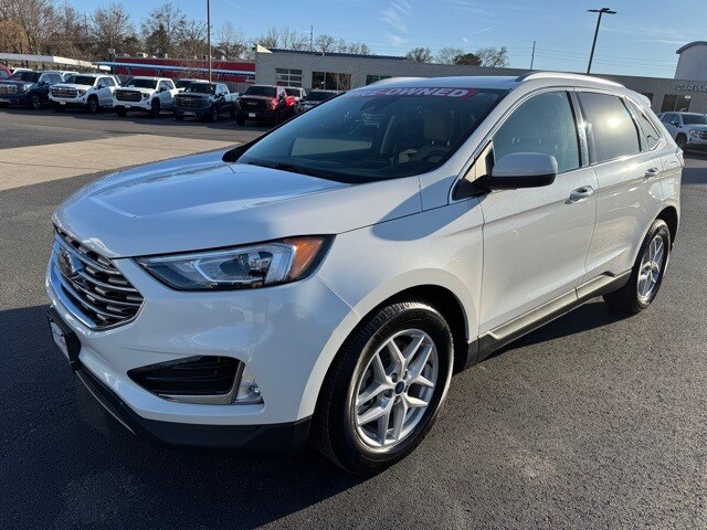 This 2021 Ford Edge comes equipped with Convenience Package (110V/150W AC Power Outlet, Perimeter Alarm, Power Liftgate, Remote Start System, Universal Garage Door Opener (UGDO), and Wireless Charging Pad), Equipment Group 201A, Ford Co-Pilot360 Assist+ (Adaptive Cruise Control w/Stop & Go, Connected Built-In Navigation, Evasive Steering Assist, and Lane Centering), 3.80 Axle Ratio, 4-Wheel Disc Brakes, 6 Speakers, ABS brakes, ActiveX Seating Material Heated Bucket Seats, Air Conditioning, Alloy wheels, AM/FM radio: SiriusXM with 360L, Auto High-beam Headlights, Auto-dimming Rear-View mirror, Automatic temperature control, Brake assist, Bumpers: body-color, Compass, Delay-off headlights, Driver door bin, Driver vanity mirror, Dual front impact airbags, Dual front side impact airbags, Electronic Stability Control, Emergency communication system: SYNC 4 911 Assist, FordPass Connect, Four wheel independent suspension, Front anti-roll bar, Front Bucket Seats, Front Center Armrest w/Storage, Front dual zone A/C, Front fog lights, Front reading lights, Fully automatic headlights, Heated door mirrors, Heated front seats, Heated Steering Wheel, Illuminated entry, Knee airbag, Low tire pressure warning, Occupant sensing airbag, Outside temperature display, Overhead airbag, Overhead console, Panic alarm, Passenger door bin, Passenger vanity mirror, Power door mirrors, Power driver seat, Power passenger seat, Power steering, Power windows, Radio: AM/FM Stereo/MP3 Capable, Rear anti-roll bar, Rear reading lights, Rear seat center armrest, Rear window defroster, Rear window wiper, Remote keyless entry, Silver Roof-Rack Side Rails, SiriusXM w/360L, Speed control, Speed-Sensitive Wipers, Split folding rear seat, Spoiler, Steering wheel mounted audio controls, SYNC 4A w/Enhanced Voice Recognition, Tachometer, Telescoping steering wheel, Tilt steering wheel, Traction control, Trip computer, Variably intermittent wipers, and Wheels: 18" Sparkle Silver-Painted Aluminum. Clean CARFAX. 21/29 City/Highway MPG