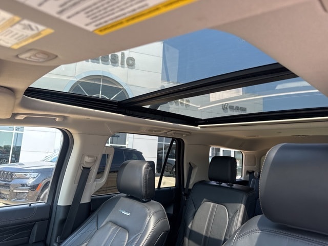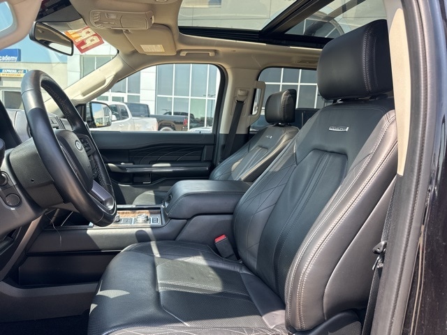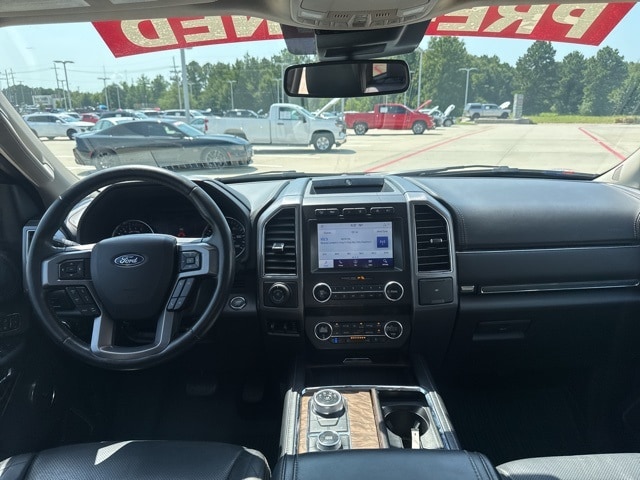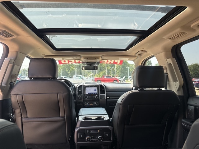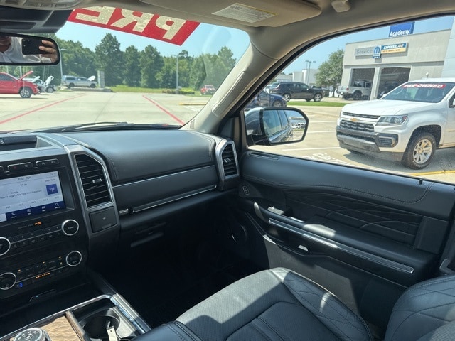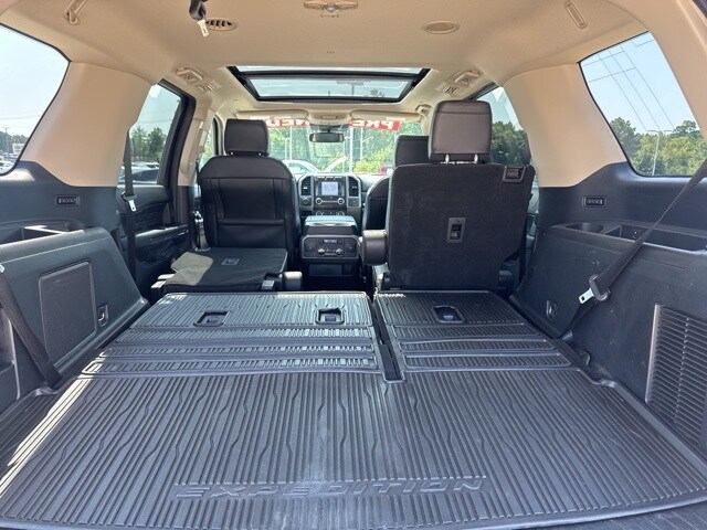 CARFAX One-Owner. Classic CDJR in Texarkana is proud to offer this good-looking 2021 Ford Expedition in Black Metallic. This 2021 Ford Expedition comes with the following features; Equipment Group 600A Standard Package, Heavy-Duty Trailer Tow Package (3.73 Axle Ratio, Heavy-Duty Engine Radiator, Integrated Trailer Brake Controller, and Pro Trailer Backup Assist), 4WD, 12 Speakers, 2nd Row Leather-Trimmed Captain's Chairs w/Armrest, 3.31 Axle Ratio, 3rd row seats: split-bench, 4-Wheel Disc Brakes, ABS brakes, Adaptive suspension, Adjustable pedals, Air Conditioning, Alloy wheels, AM/FM radio: SiriusXM, Auto High-beam Headlights, Auto-dimming door mirrors, Auto-dimming Rear-View mirror, Automatic temperature control, Brake assist, Bumpers: body-color, Compass, Continuous Controlled Damping (CCD), ControlTrac w/3.73 Axle Ratio, Delay-off headlights, Driver door bin, Driver vanity mirror, Dual front impact airbags, Dual front side impact airbags, Electronic Stability Control, Emergency communication system: SYNC 3 911 Assist, Exterior Parking Camera Rear, Four wheel independent suspension, Front anti-roll bar, Front Bucket Seats, Front Center Armrest, Front dual zone A/C, Front fog lights, Front reading lights, Fully automatic headlights, Garage door transmitter, Genuine wood console insert, Genuine wood dashboard insert, Genuine wood door panel insert, Heated door mirrors, Heated front seats, Heated rear seats, Heated steering wheel, Heated/Ventilated Leather Front Captain's Chairs, Illuminated entry, Leather steering wheel, Low tire pressure warning, Memory seat, Navigation System, Occupant sensing airbag, Outside temperature display, Overhead airbag, Overhead console, Panic alarm, Passenger door bin, Passenger vanity mirror, Pedal memory, Power door mirrors, Power driver seat, Power Liftgate, Power moonroof, Power passenger seat, Power steering, Power windows, Radio data system, Radio: B&O Sound System by Bang & Olufsen, Rain sensing wipers, Rear air conditioning, Rear anti-roll bar, Rear audio controls, Rear reading lights, Rear window defroster, Rear window wiper, Reclining 3rd row seat, Remote keyless entry, Reversible Cargo Mat, Roof rack, Security system, SiriusXM Satellite Radio, Speed control, Speed-sensing steering, Speed-Sensitive Wipers, Split folding rear seat, Standard Safety Belt, Steering wheel memory, Steering wheel mounted audio controls, SYNC 3 Communications & Entertainment System, Tachometer, Telescoping steering wheel, Tilt steering wheel, Traction control, Trip computer, Turn signal indicator mirrors, Variably intermittent wipers, Ventilated front seats, Voltmeter, and Wheels: 22" 6-Spoke Painted Machined-Face Aluminum. 4WD.