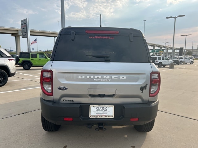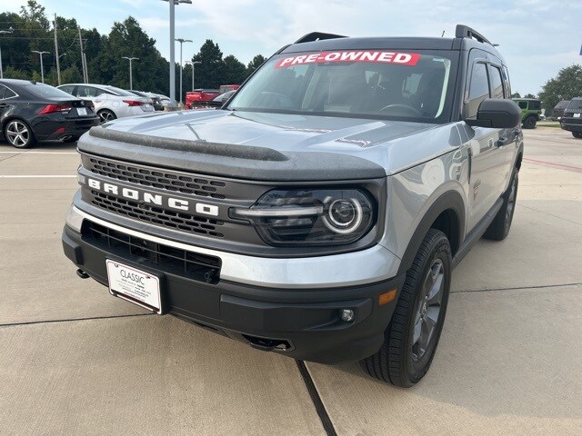Clean CARFAX. 21/26 City/Highway MPG Classic CDJR in Texarkana is proud to offer this great 2022 Ford Bronco Sport in Iconic Silver Metallic. This 2022 Ford Bronco Sport comes with the following features; Equipment Group 400A, 3.80 Axle Ratio, 4-Wheel Disc Brakes, 4G LTE Wi-Fi Hotspot Credit, 6 Speakers, ABS brakes, Air Conditioning, Alloy wheels, AM/FM radio: SiriusXM, AM/FM Stereo, Auto High-beam Headlights, Automatic temperature control, Brake assist, Compass, Delay-off headlights, Driver door bin, Driver vanity mirror, Dual front impact airbags, Dual front side impact airbags, Electronic Stability Control, Emergency communication system: SYNC 3 911 Assist, Four wheel independent suspension, Front & Rear Floor Liners w/Carpet Mats, Front anti-roll bar, Front Bucket Seats, Front Center Armrest, Front fog lights, Front reading lights, Fully automatic headlights, Heated door mirrors, Heated front seats, Illuminated entry, Knee airbag, Low tire pressure warning, Occupant sensing airbag, Outside temperature display, Overhead airbag, Overhead console, Panic alarm, Passenger door bin, Passenger vanity mirror, Power door mirrors, Power driver seat, Power steering, Power windows, Radio data system, Rear anti-roll bar, Rear reading lights, Rear seat center armrest, Rear window defroster, Rear window wiper, Remote keyless entry, Roof rack: rails only, Security system, SiriusXM Radio, Speed control, Speed-sensing steering, Speed-Sensitive Wipers, Split folding rear seat, Steering wheel mounted audio controls, SYNC 3 Communications & Entertainment System, SYNC 3/Apple CarPlay/Android Auto, Tachometer, Telescoping steering wheel, Tilt steering wheel, Traction control, Trip computer, Unique Cloth Heated Sport Contour Bucket Seats, Variably intermittent wipers, and Wheels: 17" Carbonized Gray-Painted Aluminum.