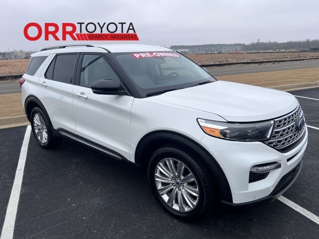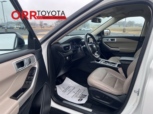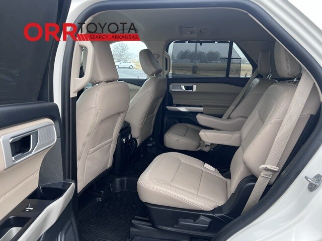 Star White Metallic Tri-Coat 2022 Ford Explorer Limited 4WD 10-Speed Automatic 2.3L EcoBoost I-4 This Explorer Limited is nicely equipped with Limited Convenience Package (110V/150W AC Power Outlet, 3rd Row PowerFold Seat, Hands-Free Foot-Activated Liftgate, Memory Driver's Seat, Power Tilt/Telescoping Steering Column, and Sideview Mirrors w/Gloss Black Caps), Class IV Trailer Tow Package, Equipment Group 301A, 4WD, 12 Speakers, 1st Row Heated Seats, 20" Premium Painted Aluminum Wheels, 3.58 Non-Limited-Slip Rear Axle Ratio, 3rd row seats: bench, 4-Wheel Disc Brakes, 4G LTE Wi-Fi Hotspot Removal Credit, ABS brakes, Air Conditioning, Alloy wheels, AM/FM radio: SiriusXM, Auto High-beam Headlights, Auto Start-Stop Removal, Auto-dimming Rear-View mirror, Automatic temperature control, Brake assist, Bumpers: body-color, Compass, Delay-off headlights, Driver door bin, Driver vanity mirror, Dual front impact airbags, Dual front side impact airbags, Electronic Stability Control, Emergency communication system: SYNC 3 911 Assist, Exterior Parking Camera Rear, FordPass Connect, Four wheel independent suspension, Front & Second Row Floor Liners (16B), Front anti-roll bar, Front Bucket Seats, Front Center Armrest, Front dual zone A/C, Front fog lights, Front reading lights, Fully automatic headlights, Garage door transmitter, Hands-Free Liftgate Delete, Heated door mirrors, Heated front seats, Heated rear seats, Heated steering wheel, Illuminated entry, Knee airbag, Leather Heated/Ventilated Captain's Chairs, Leather steering wheel, Low tire pressure warning, Navigation System, Occupant sensing airbag, Outside temperature display, Overhead airbag, Overhead console, Panic alarm, Passenger door bin, Passenger vanity mirror, Power door mirrors, Power driver seat, Power Liftgate, Power passenger seat, Power steering, Power windows, Radio data system, Radio: B&O Sound System by Bang & Olufsen, Rain sensing wipers, Rear air conditioning, Rear anti-roll bar, Rear reading lights, Rear window defroster, Rear window wiper, Remote keyless entry, Roof rack: rails only, Security system, Speed control, Speed-sensing steering, Speed-Sensitive Wipers, Split folding rear seat, Spoiler, Steering wheel mounted audio controls, SYNC 3 Communications & Entertainment System, SYNC 3/Apple CarPlay/Android Auto, Tachometer, Telescoping steering wheel, Tilt steering wheel, Traction control, Trip computer, Variably intermittent wipers, Ventilated front seats, Voice-Activated Touchscreen Navigation System, and Wheels: 20" 10-Spoke Aluminum. One owner Carfax, Blind spot monitor, Keyless entry, 4WD, 110V/150W AC Power Outlet, 3rd Row PowerFold Seat, Hands-Free Foot-Activated Liftgate, Limited Convenience Package, Memory Driver's Seat, Power Tilt/Telescoping Steering Column, Sideview Mirrors w/Gloss Black Caps.