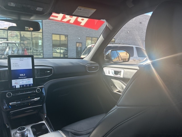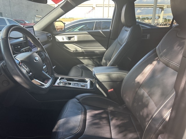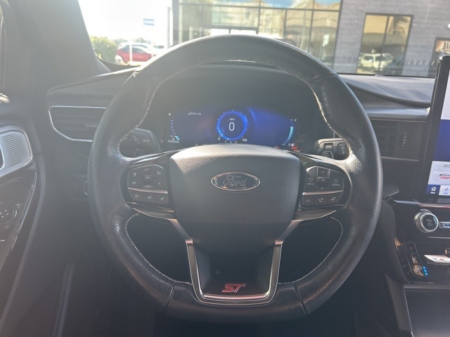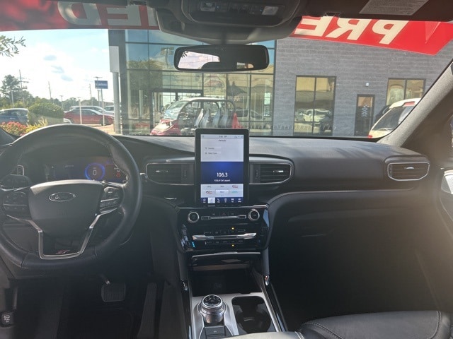 The 2022 Ford Explorer comes with the following features; Equipment Group 401A, Ford Co-Pilot360 Assist+ (Evasive Steering Assist, Intelligent Adaptive Cruise Control, Speed Sign Recognition, and Voice-Activated Touchscreen Navigation System), Premium Technology Pkg (Less Multi Seats) (DISC) (10.1" LCD Capacitive Portrait Touchscreen and 2 Additional Speakers), ST High Package (110V/150W AC Power Outlet, 360-Degree Camera w/Split View, Auto-Dimming Rearview Mirror (Interior), FordPass Connect, Front Parking Sensors, Front Rain-Sensing Wipers, Hands-Free Foot-Activated Liftgate, Memory Driver's Seat, Power Tilt/Telescoping Steering Column, Radio: B&O Sound System by Bang & Olufsen, Reverse Brake Assist, Second Row Heated Seats, Sideview Mirrors w/Gloss Black Caps, SYNC 3 Communications & Entertainment System, Third Row PowerFold (Folds Flat), Universal Garage Door Opener (UGDO), and Wireless Charging Pad), ST Street Pack (Performance Front & Rear Brakes and Wheels: 21" Aluminum), 4WD, 1st Row Heated Seats, 20" Machined Aluminum w/Painted Pockets Wheels, 3.58 Non-Limited-Slip Rear Axle Ratio, 3rd row seats: bench, 4-Wheel Disc Brakes, 6 Speakers, ABS brakes, Air Conditioning, Alloy wheels, AM/FM radio: SiriusXM, AM/FM Stereo, Auto High-beam Headlights, Automatic temperature control, Black Roof-Rack Side Rails, Brake assist, Bumpers: body-color, Compass, Delay-off headlights, Driver door bin, Driver vanity mirror, Dual front impact airbags, Dual front side impact airbags, Electronic Stability Control, Emergency communication system: SYNC 3 911 Assist, Exterior Parking Camera Rear, Four wheel independent suspension, Front anti-roll bar, Front Bucket Seats, Front Center Armrest, Front dual zone A/C, Front fog lights, Front reading lights, Fully automatic headlights, Hands-Free Liftgate Delete, Heated door mirrors, Heated front seats, Heated steering wheel, Illuminated entry, Knee airbag, Leather steering wheel, Low tire pressure warning, Memory seat, Occupant sensing airbag, Outside temperature display, Overhead airbag, Overhead console, Panic alarm, Passenger door bin, Passenger vanity mirror, Power door mirrors, Power driver seat, Power Liftgate, Power passenger seat, Power steering, Power windows, Rear air conditioning, Rear anti-roll bar, Rear Auxiliary Controls Credit, Rear reading lights, Rear window defroster, Rear window wiper, Remote keyless entry, Security system, SelectShift Capability w/Paddle Shifters, Speed control, Speed-sensing steering, Speed-Sensitive Wipers, Split folding rear seat, Spoiler, Sport steering wheel, Steering wheel mounted audio controls, SYNC 3/Apple CarPlay/Android Auto, Tachometer, Telescoping steering wheel, Tilt steering wheel, Traction control, Trip computer, Twin Panel Moonroof, Variably intermittent wipers, and Ventilated front seats. 4WD.
