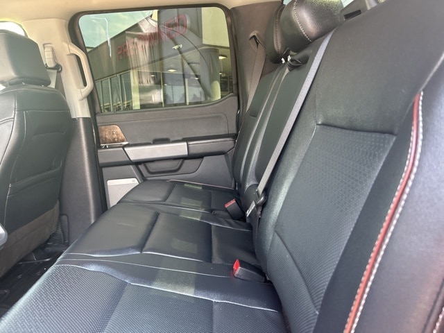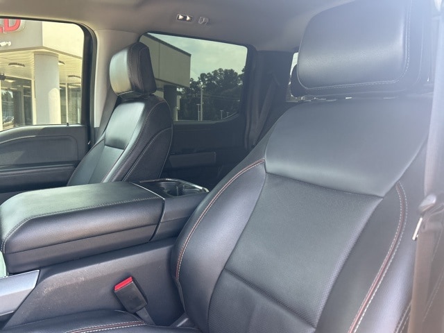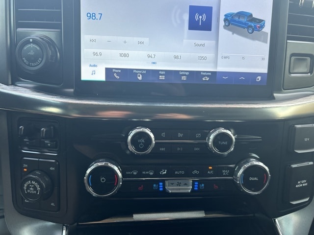 This 2022 Ford F-150 comes equipped with the following features Equipment Group 501A Mid (Onboard 400W Outlet, Radio: B&O Sound System by Bang & Olufsen, and Universal Garage Door Opener), FX4 Off-Road Package (Tray Style Floor Liner (47W)), Lariat Chrome Appearance Package (6" Bright Polished Running Board, Chrome 2-Bar Grille w/4 Minor Bars, Chrome Door & Tailgate Handles w/Body-Color Bezel, Chrome Single-Tip Exhaust, Chrome Skull Caps on Exterior Mirrors, and Wheels: 18" Chrome-Like PVD), Max Trailer Tow Package (Class IV Trailer Hitch Receiver, Extended Range 36 Gallon Fuel Tank, Integrated Trailer Brake Controller, and Pro Trailer Backup Assist), 4WD, 18" Machined-Aluminum Wheels, 3.31 Axle Ratio, 4-Wheel Disc Brakes, 7 Speakers, ABS brakes, Adjustable pedals, Air Conditioning, Alloy wheels, AM/FM radio: SiriusXM with 360L, Auto High-beam Headlights, Auto Start-Stop Removal, Auto-dimming door mirrors, Auto-dimming Rear-View mirror, Automatic temperature control, Brake assist, Bumpers: chrome, Compass, Connected Navigation & SiriusXM w/360L Removal, Delay-off headlights, Driver door bin, Driver vanity mirror, Dual front impact airbags, Dual front side impact airbags, Electronic Locking w/3.73 Axle Ratio, Electronic Stability Control, Emergency communication system: SYNC 4 911 Assist, Exterior Parking Camera Rear, Front anti-roll bar, Front Center Armrest w/Storage, Front dual zone A/C, Front fog lights, Front reading lights, Front wheel independent suspension, Fully automatic headlights, Heated door mirrors, Heated front seats, Illuminated entry, Leather-Trimmed 40/20/40 Front Seat, LED Sideview Mirror Spotlights, Low tire pressure warning, Memory seat, Occupant sensing airbag, Outside temperature display, Overhead airbag, Overhead console, Panic alarm, Passenger door bin, Passenger vanity mirror, Pedal memory, Power door mirrors, Power driver seat, Power passenger seat, Power steering, Power windows, Radio data system, Radio: AM/FM SiriusXM w/360L, Rear reading lights, Rear seat center armrest, Rear step bumper, Rear window defroster, Remote keyless entry, Security system, Speed control, Speed-sensing steering, Split folding rear seat, Steering wheel mounted audio controls, SYNC 4 w/Enhanced Voice Recognition, Tachometer, Telescoping steering wheel, Tilt steering wheel, Traction control, Trip computer, Turn signal indicator mirrors, Variably intermittent wipers, Ventilated front seats, Voltmeter, and Wheels: 20" Chrome-Like PVD. 4WD. 2022 Ford F-150 Lariat 4WD 5.0L V8