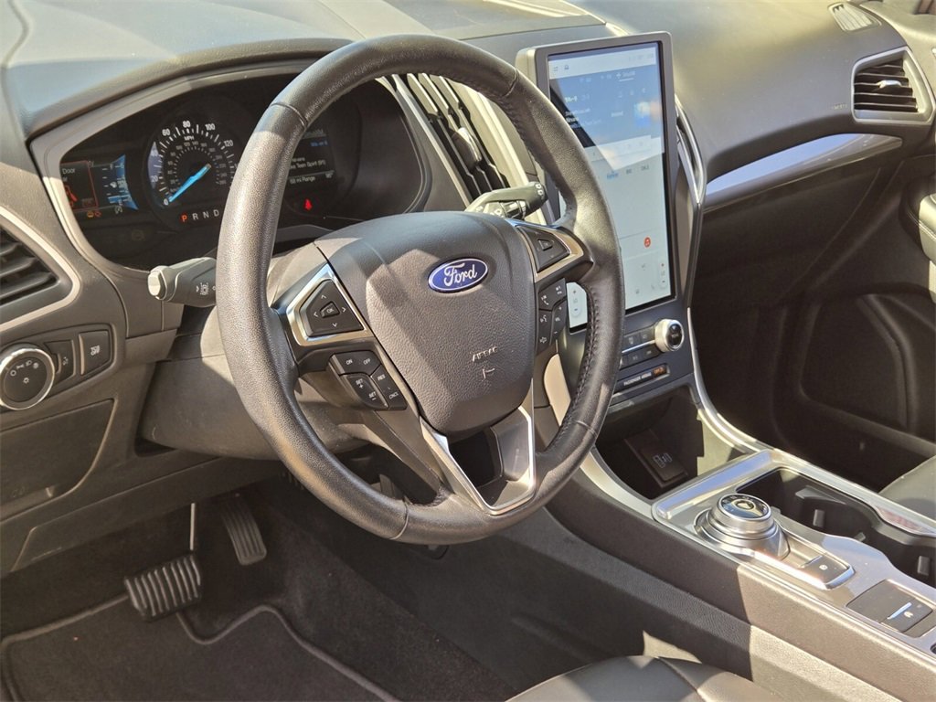 This 2024 Ford Edge comes equipped with, AWD, 3.80 Axle Ratio, 4-Wheel Disc Brakes, 6 Speakers, ABS brakes, ActiveX Trimmed Heated Bucket Seats, Air Conditioning, Alloy wheels, AM/FM radio: SiriusXM with 360L, AM/FM Stereo, Auto High-beam Headlights, Auto-dimming Rear-View mirror, Automatic temperature control, Brake assist, Bumpers: body-color, Compass, Delay-off headlights, Driver door bin, Driver vanity mirror, Dual front impact airbags, Dual front side impact airbags, Electronic Stability Control, Emergency communication system: SYNC 4 911 Assist, Equipment Group 201A, FordPass Connect, Four wheel independent suspension, Front anti-roll bar, Front Bucket Seats, Front Center Armrest w/Storage, Front dual zone A/C, Front License Plate Bracket, Front reading lights, Fully automatic headlights, Heated door mirrors, Heated front seats, Illuminated entry, Knee airbag, Leather steering wheel, Leather-Wrapped Steering Wheel, Low tire pressure warning, Occupant sensing airbag, Outside temperature display, Overhead airbag, Overhead console, Panic alarm, Passenger door bin, Passenger vanity mirror, Power door mirrors, Power driver seat, Power Liftgate, Power passenger seat, Power steering, Power windows, Rear anti-roll bar, Rear Parking Sensors, Rear reading lights, Rear seat center armrest, Rear window defroster, Rear window wiper, Remote keyless entry, SiriusXM w/360L, Speed control, Speed-Sensitive Wipers, Split folding rear seat, Spoiler, Steering wheel mounted audio controls, SYNC 4A w/Enhanced Voice Recognition, Tachometer, Telescoping steering wheel, Tilt steering wheel, Traction control, Trip computer, Variably intermittent wipers, Wheels: 18" Sparkle Silver-Painted Aluminum, AWD.