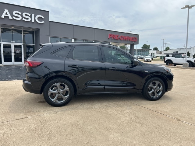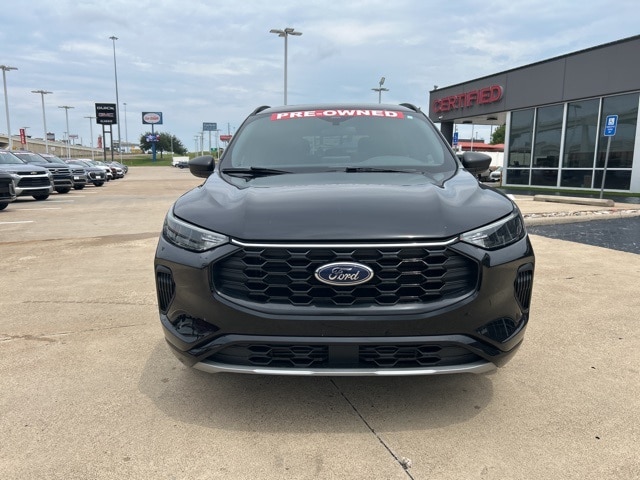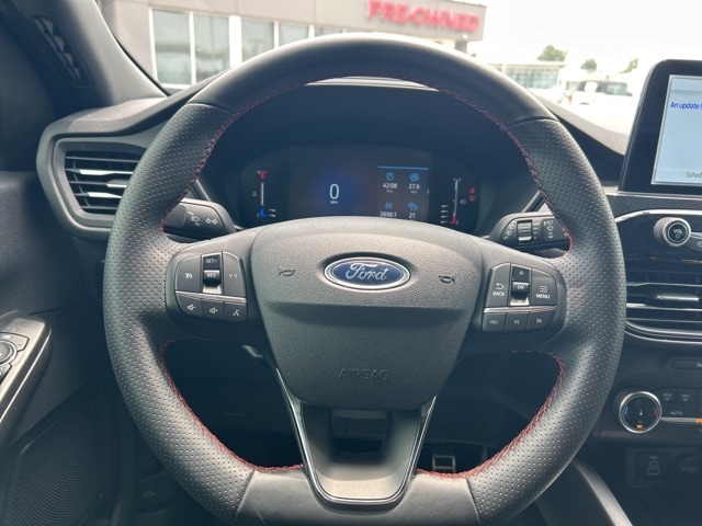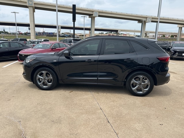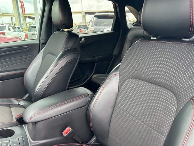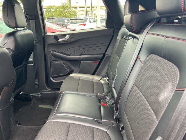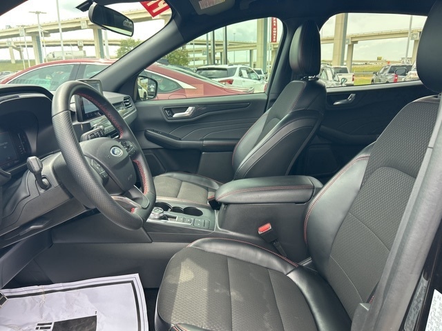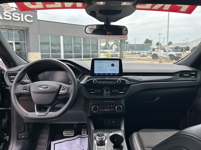 This 2024 Ford Escape comes equipped with the following features Equipment Group 300A, 3.81 Axle Ratio, 4-Wheel Disc Brakes, 6 Speakers, ABS brakes, Air Conditioning, Alloy wheels, AM/FM radio: SiriusXM, AM/FM Stereo, Auto High-beam Headlights, Automatic temperature control, Brake assist, Bumpers: body-color, Compass, Delay-off headlights, Driver door bin, Driver vanity mirror, Dual front impact airbags, Dual front side impact airbags, Electronic Stability Control, Emergency communication system: SYNC 4 911 Assist, Exterior Parking Camera Rear, FordPass Connect, Four wheel independent suspension, Front anti-roll bar, Front Bucket Seats, Front Center Armrest, Front dual zone A/C, Front License Plate Bracket, Front reading lights, Fully automatic headlights, Illuminated entry, Knee airbag, Low tire pressure warning, Occupant sensing airbag, Outside temperature display, Overhead airbag, Overhead console, Panic alarm, Passenger door bin, Passenger vanity mirror, Power door mirrors, Power driver seat, Power Liftgate, Power steering, Power windows, Radio data system, Rear anti-roll bar, Rear reading lights, Rear seat center armrest, Rear window defroster, Rear window wiper, Remote keyless entry, Roof rack: rails only, Speed control, Speed-sensing steering, Speed-Sensitive Wipers, Split folding rear seat, Spoiler, Sport steering wheel, Steering wheel mounted audio controls, SYNC 4, Tachometer, Telescoping steering wheel, Tilt steering wheel, Traction control, Trip computer, Variably intermittent wipers, Vinyl/Cloth Front Sport Contour Bucket Seats, and Wheels: 18" Rock Metallic Painted Aluminum. Clean CARFAX. Priced below KBB Fair Purchase Price! 2024 Ford Escape ST-Line FWD 1.5L EcoBoost