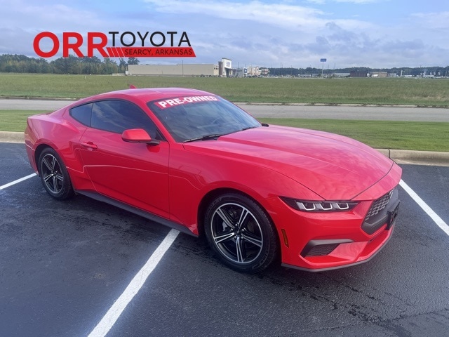 Race Red 2024 Ford Mustang EcoBoost RWD 10-Speed Automatic EcoBoost 2.3L I4 GTDi DOHC Turbocharged VCT This Mustang EcoBoost is nicely equipped with Equipment Group 101A High Package (9-Speaker Stereo System, Cloth/Vinyl Heated Bucket Seats, Dual-Zone Electronic Automatic Temperature Control, and SiriusXM w/360L & HD Radio), 4-Wheel Disc Brakes, ABS brakes, Air Conditioning, Alloy wheels, AM/FM Stereo, Auto High-beam Headlights, Automatic temperature control, Brake assist, Bumpers: body-color, Compass, Delay-off headlights, Driver door bin, Driver vanity mirror, Dual front impact airbags, Dual front side impact airbags, Electronic Stability Control, Emergency communication system: 911 Assist, Exterior Parking Camera Rear, Four wheel independent suspension, Front anti-roll bar, Front Bucket Seats, Front Center Armrest, Front reading lights, Fully automatic headlights, Illuminated entry, Knee airbag, Leather Shift Knob, Low tire pressure warning, Occupant sensing airbag, Outside temperature display, Overhead airbag, Overhead console, Panic alarm, Passenger door bin, Passenger vanity mirror, Power door mirrors, Power steering, Power windows, Radio data system, Rain sensing wipers, Rear anti-roll bar, Rear Parking Sensors, Rear window defroster, Remote keyless entry, Speed control, Speed-sensing steering, Speed-Sensitive Wipers, Split folding rear seat, Sport steering wheel, Steering wheel mounted audio controls, SYNC 4.0 QNX, Tachometer, Telescoping steering wheel, Tilt steering wheel, Traction control, Trip computer, Variably intermittent wipers, Voltmeter, and Wheels: 18" x 8" Machined-Face Aluminum. Carfax no accidents, Back up camera, Bluetooth, Keyless entry, 9-Speaker Stereo System, Cloth/Vinyl Heated Bucket Seats, Dual-Zone Electronic Automatic Temperature Control, Equipment Group 101A High Package, SiriusXM w/360L & HD Radio.