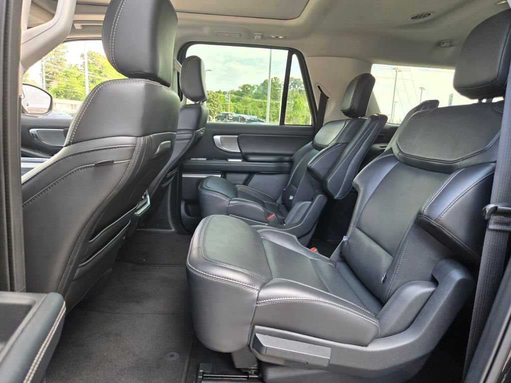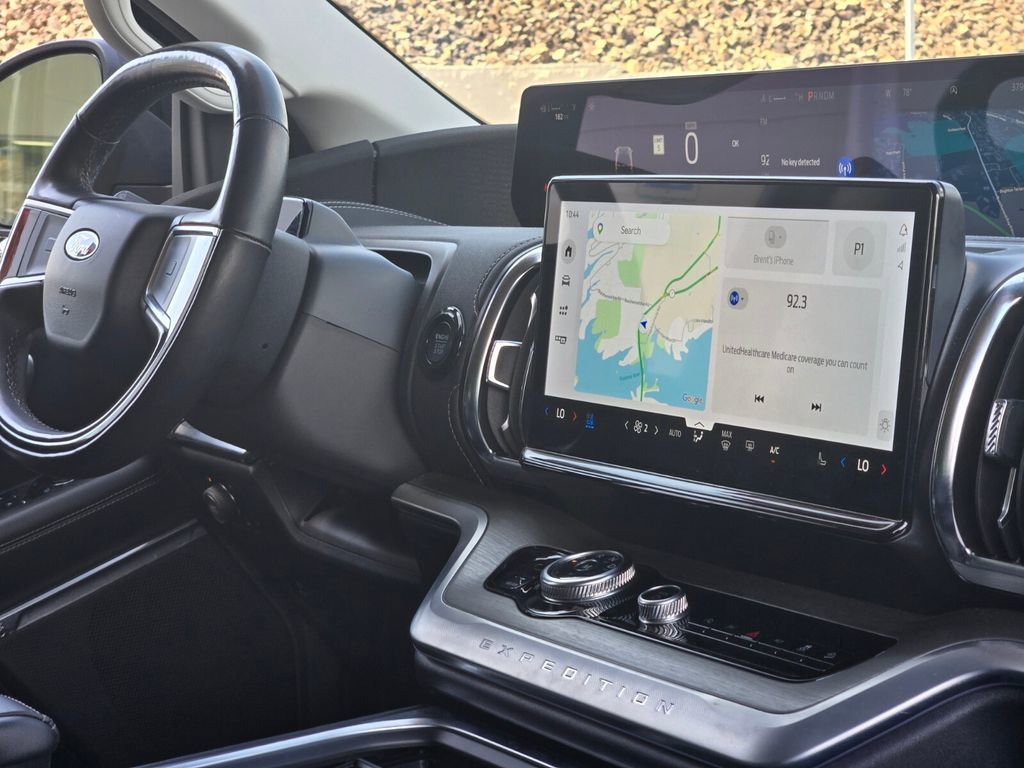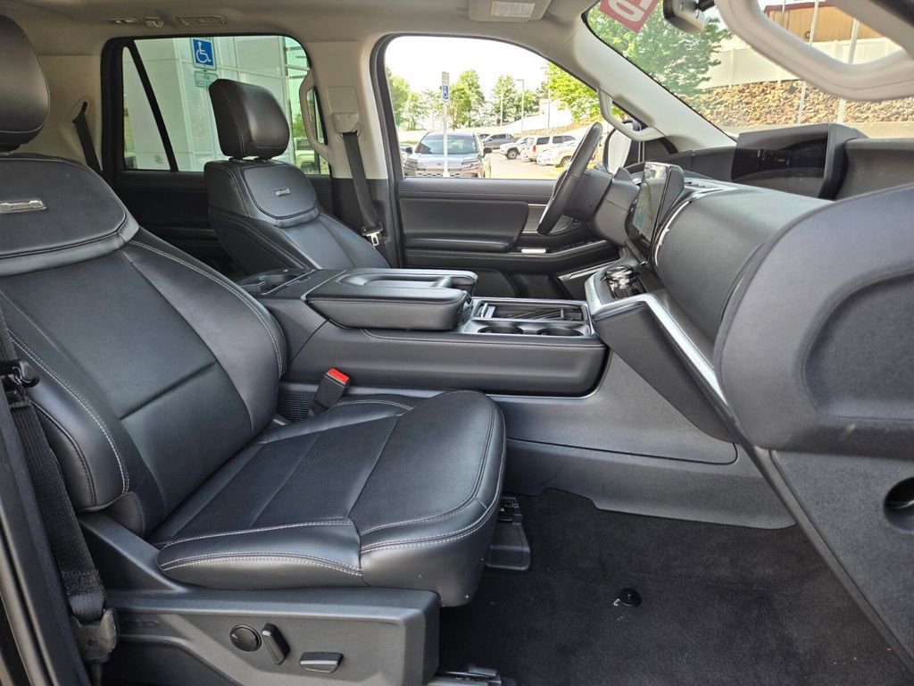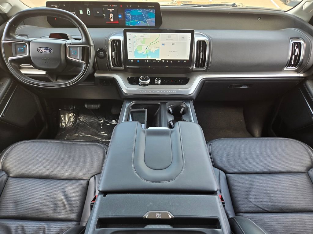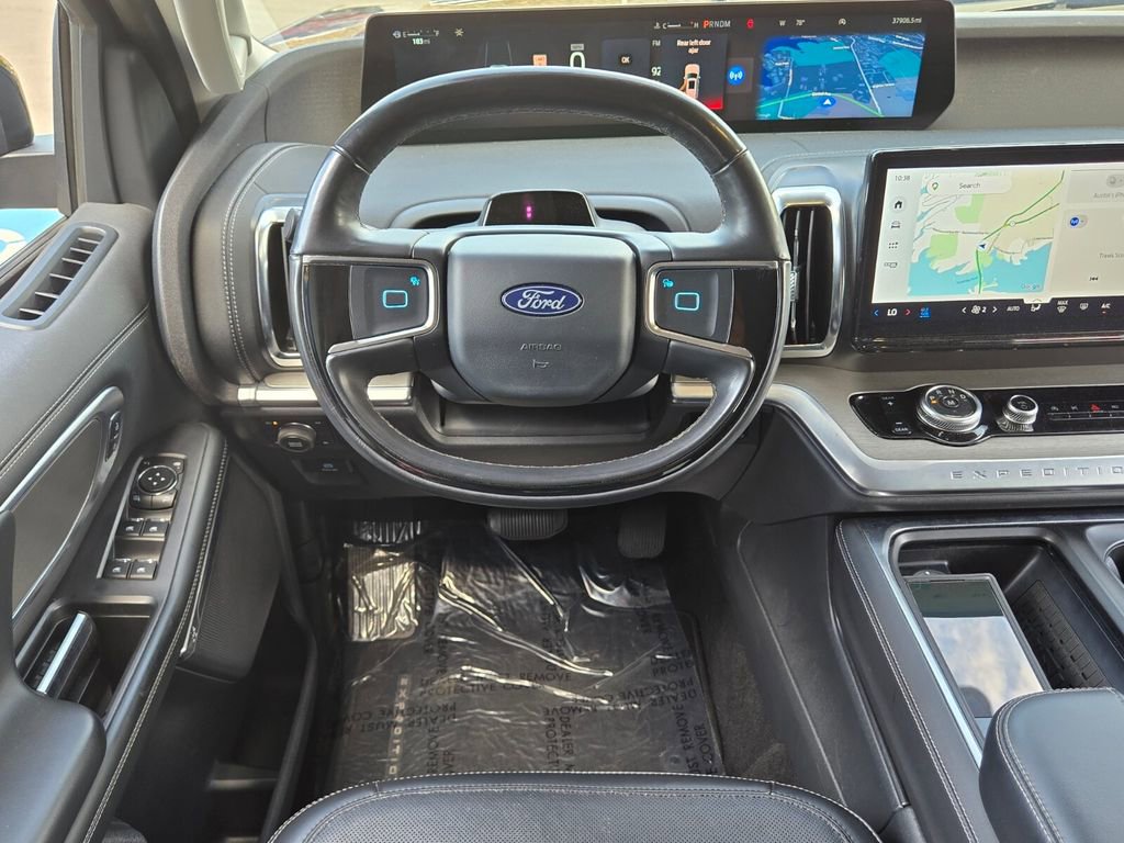 This 2025 Ford Expedition Max comes equipped with, 10 Speakers, 2nd Row Power-Folding Captain's Chairs, 3.73 Axle Ratio, 3rd row seats: split-bench, 4-Wheel Disc Brakes, ABS brakes, Adjustable pedals, Air Conditioning, Alloy wheels, AM/FM radio: SiriusXM with 360L, Apple CarPlay/Android Auto, Auto High-beam Headlights, Auto-dimming door mirrors, Auto-dimming Rear-View mirror, Automatic temperature control, Brake assist, Bumpers: body-color, Compass, Delay-off headlights, Driver door bin, Driver vanity mirror, Dual front impact airbags, Dual front side impact airbags, Electronic Stability Control, Emergency communication system: 911 Assist, Equipment Group 600A Standard Package, Exterior Parking Camera Rear, Four wheel independent suspension, Front anti-roll bar, Front Bucket Seats, Front Center Armrest, Front dual zone A/C, Front License Plate Bracket, Front reading lights, Fully automatic headlights, Garage door transmitter, Genuine wood dashboard insert, Genuine wood door panel insert, Heated & Ventilated Leather Front Captain's Chairs, Heated door mirrors, Heated front seats, Heated rear seats, Heated steering wheel, Illuminated entry, Leather steering wheel, Low tire pressure warning, Memory seat, Navigation System, Occupant sensing airbag, Outside temperature display, Overhead airbag, Overhead console, Panic alarm, Passenger door bin, Passenger vanity mirror, Pedal memory, Power door mirrors, Power driver seat, Power moonroof: Vista Roof, Power passenger seat, Power steering, Power windows, Radio data system, Radio: B&O Sound System by Bang & Olufsen, Rain sensing wipers, Rear air conditioning, Rear anti-roll bar, Rear reading lights, Rear window defroster, Rear window wiper, Reclining 3rd row seat, Remote keyless entry, Security system, SiriusXM w/360L, Speed control, Speed-sensing steering, Speed-Sensitive Wipers, Split folding rear seat, Spoiler, Steering wheel memory, Steering wheel mounted audio controls, Tachometer, Telescoping steering wheel, Tilt steering wheel, Traction control, Trip computer, Turn signal indicator mirrors, Variably intermittent wipers, Ventilated front seats, Voltmeter, Wheels: 20" Ebony Bright Machined Aluminum.