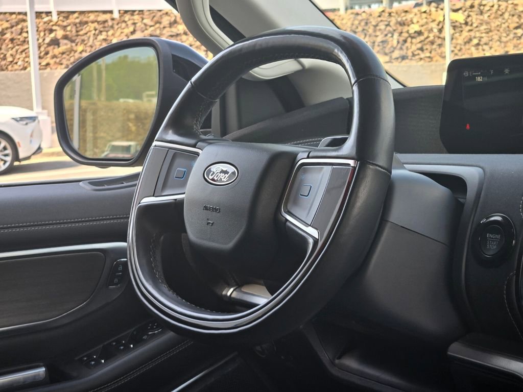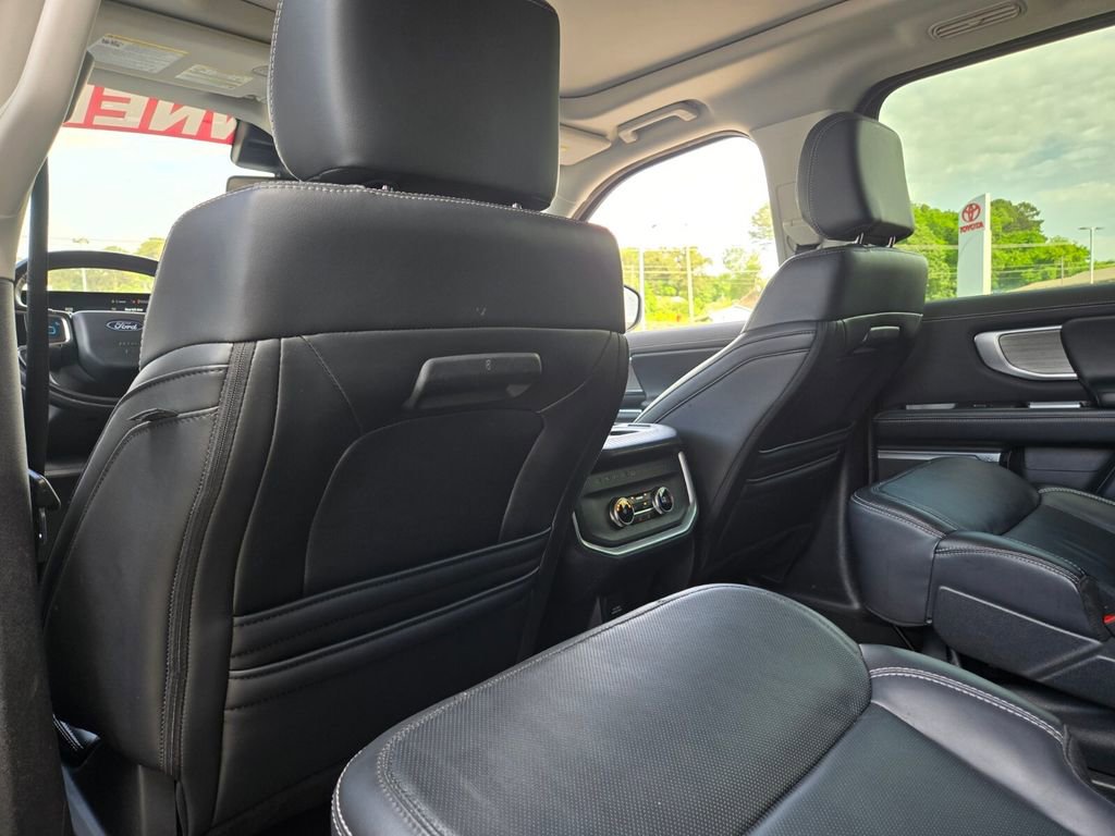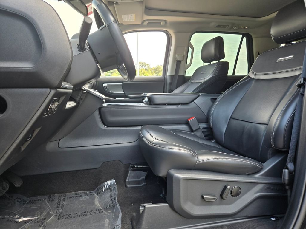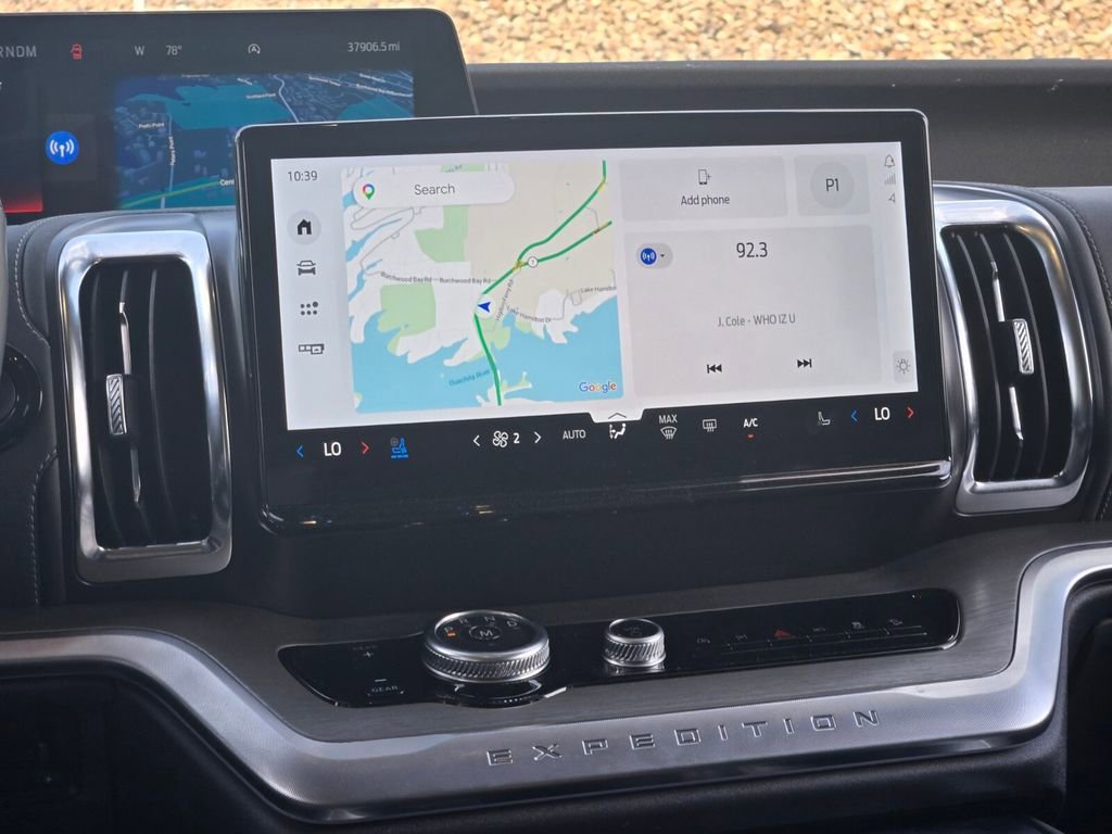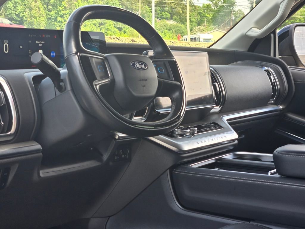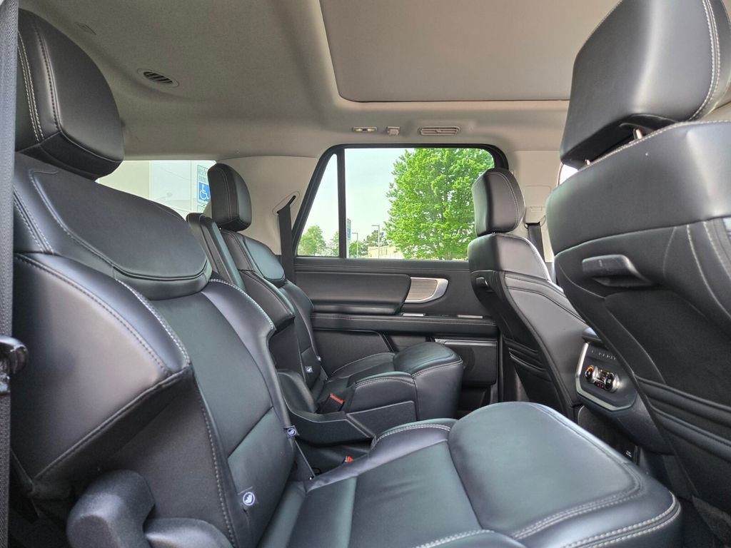 This 2025 Ford Expedition Max comes equipped with, 10 Speakers, 2nd Row Power-Folding Captain's Chairs, 3.73 Axle Ratio, 3rd row seats: split-bench, 4-Wheel Disc Brakes, ABS brakes, Adjustable pedals, Air Conditioning, Alloy wheels, AM/FM radio: SiriusXM with 360L, Apple CarPlay/Android Auto, Auto High-beam Headlights, Auto-dimming door mirrors, Auto-dimming Rear-View mirror, Automatic temperature control, Brake assist, Bumpers: body-color, Compass, Delay-off headlights, Driver door bin, Driver vanity mirror, Dual front impact airbags, Dual front side impact airbags, Electronic Stability Control, Emergency communication system: 911 Assist, Equipment Group 600A Standard Package, Exterior Parking Camera Rear, Four wheel independent suspension, Front anti-roll bar, Front Bucket Seats, Front Center Armrest, Front dual zone A/C, Front License Plate Bracket, Front reading lights, Fully automatic headlights, Garage door transmitter, Genuine wood dashboard insert, Genuine wood door panel insert, Heated & Ventilated Leather Front Captain's Chairs, Heated door mirrors, Heated front seats, Heated rear seats, Heated steering wheel, Illuminated entry, Leather steering wheel, Low tire pressure warning, Memory seat, Navigation System, Occupant sensing airbag, Outside temperature display, Overhead airbag, Overhead console, Panic alarm, Passenger door bin, Passenger vanity mirror, Pedal memory, Power door mirrors, Power driver seat, Power moonroof: Vista Roof, Power passenger seat, Power steering, Power windows, Radio data system, Radio: B&O Sound System by Bang & Olufsen, Rain sensing wipers, Rear air conditioning, Rear anti-roll bar, Rear reading lights, Rear window defroster, Rear window wiper, Reclining 3rd row seat, Remote keyless entry, Security system, SiriusXM w/360L, Speed control, Speed-sensing steering, Speed-Sensitive Wipers, Split folding rear seat, Spoiler, Steering wheel memory, Steering wheel mounted audio controls, Tachometer, Telescoping steering wheel, Tilt steering wheel, Traction control, Trip computer, Turn signal indicator mirrors, Variably intermittent wipers, Ventilated front seats, Voltmeter, Wheels: 20" Ebony Bright Machined Aluminum.
