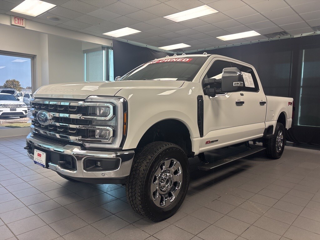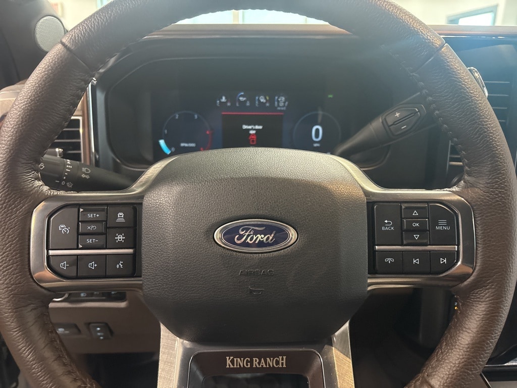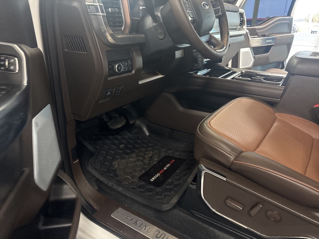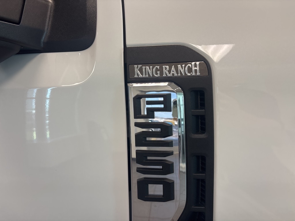 CARFAX One-Owner. Clean CARFAX. White Metallic King Ranch 4WD 10-Speed Automatic 6.7L High Output Power Stroke V8 Diesel 4WD, 14 Speakers, ABS brakes, Air Conditioning, AM/FM radio: SiriusXM with 360L, Auto High-beam Headlights, Automatic temperature control, Brake assist, Chrome Door Handles, Chrome Exhaust Tip, Delay-off headlights, Driver vanity mirror, Dual front side impact airbags, Electronic Stability Control, Electronic-Locking w/3.31 Axle Ratio, Flow-Through Console, Front & Rear Wheel Well Liners (Pre-Installed), Front anti-roll bar, Front Bucket Seats, Front dual zone A/C, FX4 Off-Road Package, Garage door transmitter, Gooseneck Hitch Kit (Pre-Installed), Heads-Up Display, Heated rear seats, Hill Descent Control, Leather steering wheel, Low tire pressure warning, Navigation System, Off-Road Specifically Tuned Shock Absorbers, Order Code 700A, Outside temperature display, Panic alarm, Power driver seat, Rain sensing wipers, Rear step bumper, Remote keyless entry, Security system, SiriusXM Radio w/360L, Speed control, Split folding rear seat, Steering wheel memory, Steering wheel mounted A/C controls, Telescoping steering wheel, Tilt steering wheel, Turn signal indicator mirrors, Unique FX4 Off-Road Box Decal, Unique King Ranch Leather 40/Console/40 Seats, Variably intermittent wipers, Wheels: 20" Bright Machined Cast Aluminum, Wheels: 20" Chrome PVD Aluminum.