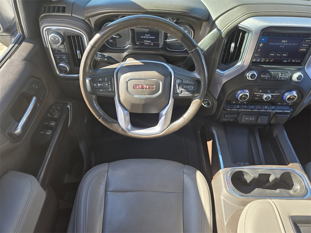 This 2019 GMC Sierra 1500 comes equipped with, 8-Speed Automatic, 4WD, Dark Walnut/Slate Leather, 10-Way Power Driver Seat Adjuster w/Lumbar, 10-Way Power Passenger Seat Adjuster w/Lumbar, 12-Volt Rear Auxiliary Power Outlet, 120-Volt Bed Mounted Power Outlet, 120-Volt Instrument Panel Power Outlet, 170 Amp Alternator, 2 USB Ports, 2 USB Ports (1st Row), 20" x 9" Polished Aluminum Wheels, 3.23 Rear Axle Ratio, 4-Wheel Disc Brakes, 6 Speakers, 6-Speaker Audio System Feature, ABS brakes, Air Conditioning, Alloy wheels, AM/FM radio: SiriusXM, Apple CarPlay/Android Auto, Auto-dimming door mirrors, Auto-dimming Rear-View mirror, Automatic temperature control, Auxiliary External Transmission Oil Cooler, Brake assist, Bumpers: chrome, Chrome Assist Steps, Chrome Grille, Color-Keyed Carpeting Floor Covering, Compass, Deep-Tinted Glass, Delay-off headlights, Driver door bin, Driver Memory, Driver vanity mirror, Dual Exhaust w/Premium Tips, Dual front impact airbags, Dual front side impact airbags, Electric Rear-Window Defogger, Electrical Lock Control Steering Column, Electronic Stability Control, Floor Mounted Console, Front 40/20/40 Split-Bench Seat, Front anti-roll bar, Front Bucket Seats, Front Center Armrest w/Storage, Front dual zone A/C, Front fog lights, Front Frame-Mounted Black Recovery Hooks, Front reading lights, Front wheel independent suspension, Fully automatic headlights, GMC 4G LTE, GMC Connected Access, HD Radio, Heated 2nd Row Outboard Seats, Heated door mirrors, Heated Driver & Front Passenger Seating, Heated front seats, Heated steering wheel, Heavy Duty Suspension, Heavy-Duty Rear Locking Differential, High-Capacity Air Filter, Hill Descent Control, Hitch Guidance, Hitch Guidance w/Hitch View, Illuminated entry, In-Vehicle Trailering App, Integrated Trailer Brake Controller, Keyless Open & Start, LED Cargo Area Lighting, Low tire pressure warning, Manual Tilt-Wheel & Telescoping Steering Column, Memory seat, Occupant sensing airbag, Off-Road Suspension, OnStar & GMC Connected Services Capable, Outside temperature display, Overhead airbag, Overhead console, Panic alarm, Passenger door bin, Passenger vanity mirror, Perforated Leather-Appointed Seat Trim, Power Door Locks, Power door mirrors, Power driver seat, Power Front Passenger Windows w/Express Up/Down, Power Front Windows w/Driver Express Up/Down, Power passenger seat, Power Rear Windows w/Express Down, Power Sliding Rear Window w/Rear Defogger, Power steering, Power windows, Preferred Equipment Group 4SA, Premium audio system: GMC Infotainment System, Premium Bose 7-Speaker Sound System, Radio data system, Radio: Premium GMC Infotainment Sys w/Multi-Touch, Radio: Premium GMC Infotainment Sys w/Navigation, Rear Dual USB Charging-Only Ports, Rear reading lights, Rear seat center armrest, Rear step bumper, Rear Wheelhouse Liners, Rear window defroster, Remote keyless entry, Remote Vehicle Starter System, Security system, SiriusXM Radio, SLT Convenience Package, SLT Preferred Package, SLT Premium Package, Speed control, Speed-sensing steering, Split folding rear seat, Steering Wheel Audio Controls, Steering wheel mounted audio controls, Tachometer, Telescoping steering wheel, Theft Deterrent System (Unauthorized Entry), Tilt steering wheel, Traction control, Trailering Package, Trip computer, Universal Home Remote, Variably intermittent wipers, Ventilated Driver & Front Passenger Seats, Voltmeter, Wheels: 18" x 8.5" 6-Spoke Machined Aluminum, Wireless Charging, X31 Hard Badge, X31 Off-Road Package, 8-Speed Automatic, 4WD, Dark Walnut/Slate Leather. Odometer is 6034 miles below market average!