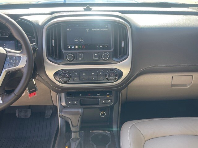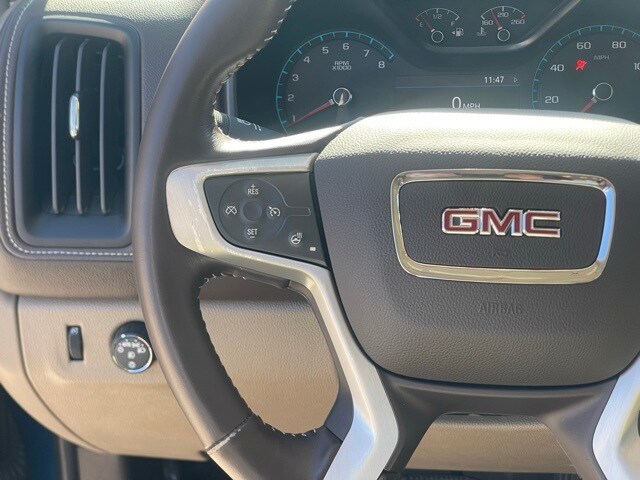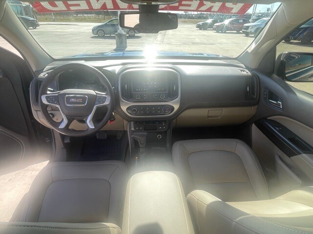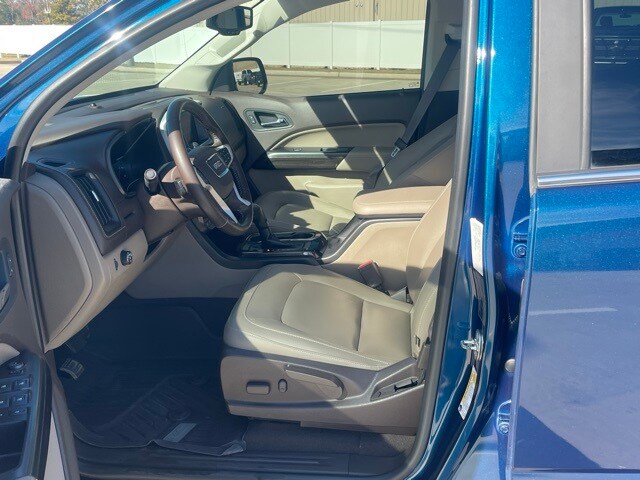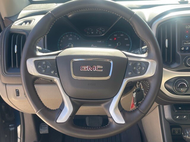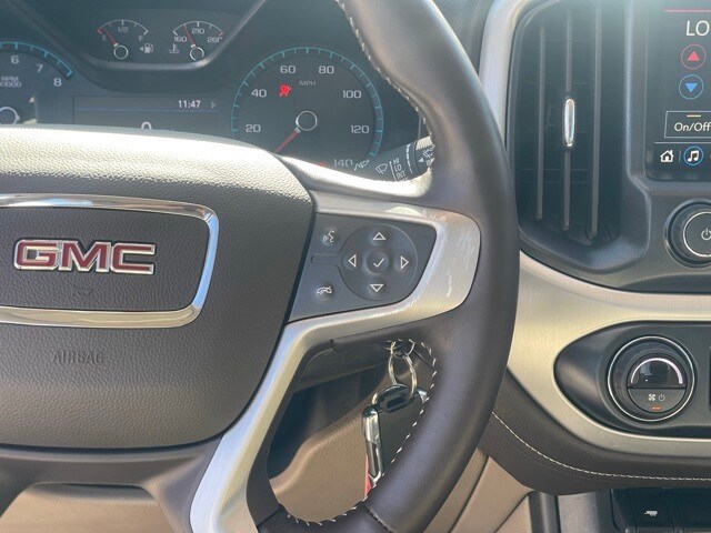 This 2020 GMC Canyon comes equipped with Preferred Equipment Group 2LT (Heated Steering Wheel, Tow/Haul Mode, Trailering Assist Guideline Hitch Guidance, and Ultrasonic Rear Parking Assist), Trailering Package, 3.42 Rear Axle Ratio, 4-Way Power Front Passenger Seat Adjuster, 4-Wheel Disc Brakes, 6 Speakers, 6-Speaker Audio System Feature, ABS brakes, Air Conditioning, Alloy wheels, AM/FM radio: SiriusXM, Apple CarPlay/Android Auto, Auto-dimming Rear-View mirror, Automatic temperature control, Bumpers: body-color, Compass, Delay-off headlights, Driver 6-Way Power Seat Adjuster, Driver door bin, Driver vanity mirror, Dual front impact airbags, Dual front side impact airbags, Electronic Stability Control, Exterior Parking Camera Rear, Front anti-roll bar, Front Bucket Seats, Front Center Armrest, Front fog lights, Front License Plate Kit, Front reading lights, Front wheel independent suspension, Fully automatic headlights, HD Radio, Heated door mirrors, Heated Driver & Front Passenger Seats, Heated front seats, Heated steering wheel, Illuminated entry, Leather-Appointed Seat Trim, Low tire pressure warning, Occupant sensing airbag, Outside temperature display, Overhead airbag, Overhead console, Panic alarm, Passenger door bin, Passenger vanity mirror, Power door mirrors, Power Driver Lumbar Control Seat Adjuster, Power driver seat, Power Passenger Lumbar Control Seat Adjuster, Power passenger seat, Power steering, Power windows, Premium audio system: GMC Infotainment System, Radio data system, Radio: AM/FM w/8" Diagonal Color Touch-Screen, Rear reading lights, Rear seat center armrest, Rear step bumper, Rear window defroster, Remote keyless entry, Security system, SiriusXM Radio, Speed control, Speed-sensing steering, Steering wheel mounted audio controls, Tachometer, Telescoping steering wheel, Tilt steering wheel, Traction control, Trip computer, Variably intermittent wipers, and Wheels: 18" x 8.5" Polished Cast Aluminum. Clean CARFAX. Carfax no accidents, Heated Steering Wheel, Preferred Equipment Group 2LT, Tow/Haul Mode, Trailering Assist Guideline Hitch Guidance, Trailering Package, Ultrasonic Rear Parking Assist.