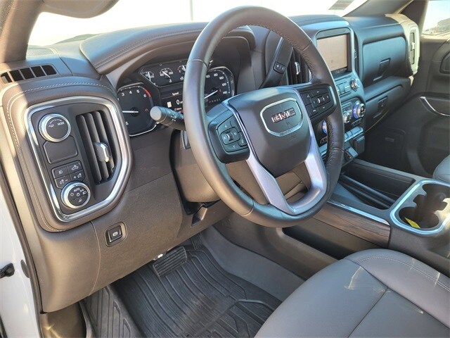 This 2020 GMC Sierra 1500 comes equipped with Preferred Equipment Group 4SA (12-Volt Rear Auxiliary Power Outlet, 120-Volt Instrument Panel Power Outlet, 170 Amp Alternator, 4G LTE Wi-Fi Hotspot Capable, Auxiliary External Transmission Oil Cooler, Chrome Grille, Color-Keyed Carpeting Floor Covering, Compass, Deep-Tinted Glass, Electric Rear-Window Defogger, Electrical Lock Control Steering Column, GMC Connected Access Capable, HD Radio, Heated Driver & Front Outboard Passenger Seating, Heavy-Duty Rear Locking Differential, Hitch Guidance, Integrated Trailer Brake Controller, Keyless Open & Start, LED Cargo Area Lighting, Manual Tilt-Wheel & Telescoping Steering Column, OnStar & GMC Connected Services Capable, Power Door Locks, Power Front Passenger Windows w/Express Up/Down, Power Front Windows w/Driver Express Up/Down, Power Rear Windows w/Express Down, ProGrade Trailering System, Rear Dual USB Charging-Only Ports, Rear Wheelhouse Liners, Remote Vehicle Starter System, Steering Wheel Audio Controls, Theft Deterrent System (Unauthorized Entry), 120-Volt Bed Mounted Power Outlet, Hitch Guidance w/Hitch View, and In-Vehicle Trailering App), SLT Convenience Package (2 USB Ports, 2 USB Ports (1st Row), Floor-Mounted Center Console, Front Bucket Seats, Heated 2nd Row Outboard Seats, Power Sliding Rear Window w/Rear Defogger, Universal Home Remote, and Ventilated Driver & Front Passenger Seats), SLT Preferred Package (Premium Bose 7-Speaker Sound System, Radio: Premium GMC Infotainment Sys w/Navigation, Wireless Charging, and SiriusXM w/360L), Texas Edition SLT Premium Package (Chrome Wheel To Wheel Assist Steps and Texas Edition Badging), Trailering Package, 8-Speed Automatic, Dark Walnut/Slate Leather, 10-Way Power Driver Seat Adjuster w/Lumbar, 10-Way Power Passenger Seat Adjuster w/Lumbar, 20" x 9" Polished Aluminum Wheels, 3.23 Rear Axle Ratio, 4-Wheel Disc Brakes, 6 Speakers, 6-Speaker Audio System Feature, ABS brakes, Air Conditioning, All-Weather Floor Liner (LPO), Alloy wheels, AM/FM radio: SiriusXM with 360L, Apple CarPlay/Android Auto, Auto-dimming door mirrors, Auto-dimming Rear-View mirror, Automatic temperature control, Brake assist, Bumpers: chrome, Delay-off headlights, Driver door bin, Driver Memory, Driver vanity mirror, Dual front impact airbags, Dual front side impact airbags, Electronic Stability Control, Front 40/20/40 Split-Bench Seat, Front anti-roll bar, Front Center Armrest w/Storage, Front dual zone A/C, Front fog lights, Front License Plate Kit, Front reading lights, Front wheel independent suspension, Fully automatic headlights, Heated door mirrors, Heated front seats, Heated steering wheel, Heavy Duty Suspension, Illuminated entry, Low tire pressure warning, Memory seat, Occupant sensing airbag, Outside temperature display, Overhead airbag, Overhead console, Panic alarm, Passenger door bin, Passenger vanity mirror, Perforated Leather-Appointed Front Seat Trim, Power door mirrors, Power driver seat, Power passenger seat, Power steering, Power windows, Premium audio system: GMC Infotainment System, Radio data system, Radio: Premium GMC Infotainment Sys w/Multi-Touch, Rear reading lights, Rear seat center armrest, Rear step bumper, Rear window defroster, Remote keyless entry, Security system, Speed control, Speed-sensing steering, Split folding rear seat, Steering wheel mounted audio controls, Tachometer, Telescoping steering wheel, Tilt steering wheel, Traction control, Trip computer, Variably intermittent wipers, Voltmeter, and Wheels: 18" x 8.5" 6-Spoke Machined Aluminum. CARFAX One-Owner. Clean CARFAX. One Owner Carfax, 8-Speed Automatic, Dark Walnut/Slate Leather, 12-Volt Rear Auxiliary Power Outlet, 120-Volt Instrument Panel Power Outlet, 170 Amp Alternator, 2 USB Ports, 2 USB Ports (1st Row), 4G LTE Wi-Fi Hotspot Capable, Auxiliary External Transmission Oil Cooler, Chrome Grille, Chrome Wheel To Wheel Assist Steps, Color-Keyed Carpeting Floor Covering, Compass, Deep-Tinted Glass, Electric Rear-Windo