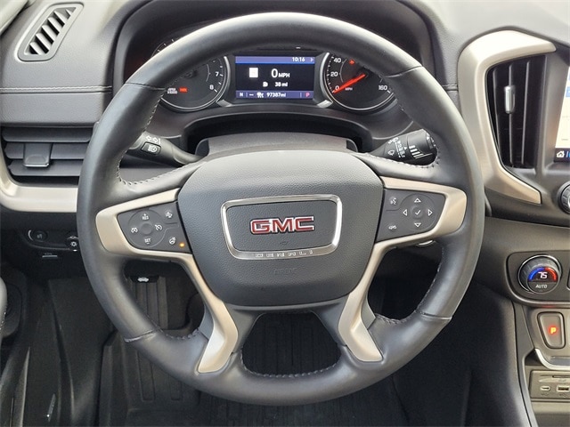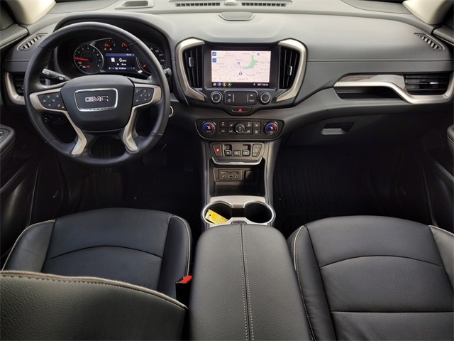 This 2020 GMC Terrain comes equipped with Advanced Safety Package (Adaptive Cruise Control - Camera, Automatic Parking Assist, and HD Surround Vision), Comfort Package (Heated Rear Outboard Seating Positions, Ventilated Driver Seat, and Ventilated Front Passenger Seat), Denali Premium Package, Floor Liner Package (LPO) (Front & Rear All-Weather Floor Liners (LPO) and Integrated Cargo Liner (LPO)), Preferred Equipment Group 5SA, Trailering Equipment (Factory Installed Trailer Hitch), AWD, Navigation System, 2 USB Data Ports, 2 USB Data Ports w/SD Card Reader, 3.17 Axle Ratio, 4-Wheel Disc Brakes, 6-Way Power Front Passenger Seat, 7 Speakers, 8-Way Power Driver Seat Adjuster, ABS brakes, Air Conditioning, Alloy wheels, AM/FM radio: SiriusXM, Apple CarPlay/Android Auto, Auto High-beam Headlights, Auto-dimming door mirrors, Auto-dimming Rear-View mirror, Automatic temperature control, Bluetooth® For Phone, Brake assist, Bumpers: body-color, Compass, Delay-off headlights, Driver & Front Passenger Heated Seats, Driver door bin, Driver vanity mirror, Dual front impact airbags, Dual front side impact airbags, Electronic Stability Control, Emergency communication system: OnStar and GMC connected services capable, Exterior Parking Camera Rear, Four wheel independent suspension, Front & Rear Molded Splash Guards, Front anti-roll bar, Front Bucket Seats, Front Center Armrest, Front dual zone A/C, Front fog lights, Front Passenger 2-Way Power Lumbar, Front reading lights, Fully automatic headlights, Garage door transmitter, HD Radio, Heated door mirrors, Heated front seats, Heated steering wheel, Illuminated entry, Lane Departure Warning System, Low tire pressure warning, Memory seat, Occupant sensing airbag, Outside temperature display, Overhead airbag, Overhead console, Panic alarm, Passenger door bin, Passenger vanity mirror, Perforated Leather-Appointed Seat Trim w/Denali Logo, Power door mirrors, Power Driver Lumbar Control, Power driver seat, Power Liftgate, Power passenger seat, Power steering, Power windows, Premium 7-Speaker Bose Sound System w/Amplifier, Radio data system, Radio: GMC Infotainment System w/Navigation, Rear anti-roll bar, Rear seat center armrest, Rear window defroster, Rear window wiper, Remote keyless entry, Roof rack: rails only, Security system, SiriusXM Radio, Speed control, Speed-sensing steering, Split folding rear seat, Spoiler, Steering wheel mounted audio controls, Tachometer, Telescoping steering wheel, Tilt steering wheel, Traction control, Trip computer, Turn signal indicator mirrors, Variably intermittent wipers, and Wheels: 19" x 7.5" Ultra-Bright Machined Aluminum. 21/26 City/Highway MPG AWD, Adaptive Cruise Control - Camera, Advanced Safety Package, Automatic Parking Assist, Comfort Package, Denali Premium Package, Factory Installed Trailer Hitch, Floor Liner Package (LPO), Front & Rear All-Weather Floor Liners (LPO), HD Surround Vision, Heated Rear Outboard Seating Positions, Integrated Cargo Liner (LPO), Navigation System, Preferred Equipment Group 5SA, Trailering Equipment, Ventilated Driver Seat, Ventilated Front Passenger Seat.