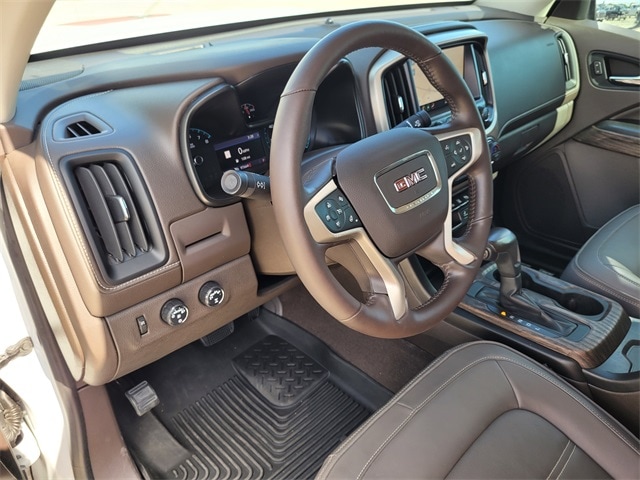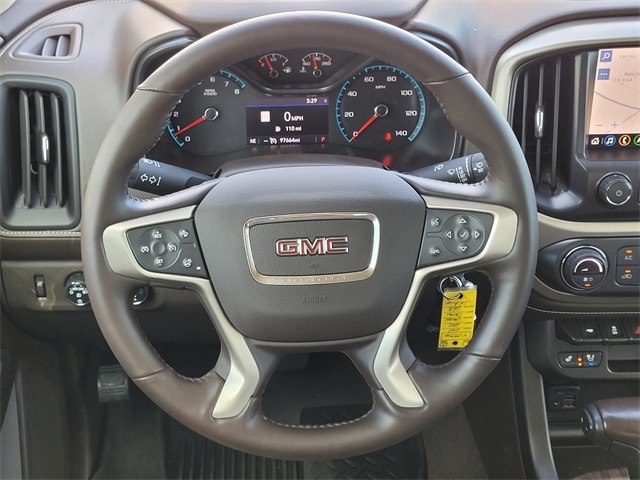 This 2021 GMC Canyon comes equipped with Driver Alert Package (Forward Collision Alert and Lane Departure Warning System), Preferred Equipment Group 4SD (5" Rectangular Chrome Assist Steps, Black Spray-On Bedliner w/GMC Logo, Heated Steering Wheel, Hitch Guidance, Polished Exhaust Tip, Tow/Haul Mode, Ultrasonic Rear Parking Assist, Ventilated Driver Seat, and Ventilated Front Passenger Seat), Trailering Package, 4WD, Navigation System, 2 USB Data Ports, 3.42 Rear Axle Ratio, 4-Way Power Front Passenger Seat Adjuster, 4-Wheel Disc Brakes, 7 Speakers, ABS brakes, Air Conditioning, Alloy wheels, AM/FM radio: SiriusXM with 360L, Apple CarPlay/Android Auto, Auto-dimming Rear-View mirror, Automatic temperature control, Bose Premium 7-Speaker Audio System Feature, Bumpers: body-color, Compass, Delay-off headlights, Driver 6-Way Power Seat Adjuster, Driver door bin, Driver vanity mirror, Dual front impact airbags, Dual front side impact airbags, Electronic Stability Control, Exterior Parking Camera Rear, Front anti-roll bar, Front Bucket Seats, Front Center Armrest, Front fog lights, Front License Plate Kit, Front reading lights, Front wheel independent suspension, Fully automatic headlights, Genuine wood console insert, Genuine wood door panel insert, HD Radio, Heated door mirrors, Heated Driver & Front Passenger Seats, Heated front seats, Heated steering wheel, Illuminated entry, Low tire pressure warning, Occupant sensing airbag, Outside temperature display, Overhead airbag, Overhead console, Panic alarm, Passenger door bin, Passenger vanity mirror, Perforated Leather-Appointed Seat Trim, Power door mirrors, Power Driver Lumbar Control Seat Adjuster, Power driver seat, Power Passenger Lumbar Control Seat Adjuster, Power passenger seat, Power steering, Power windows, Premium audio system: GMC Infotainment System, Radio data system, Radio: AM/FM w/8" Diagonal Multi-Touch Display Nav, Rear reading lights, Rear seat center armrest, Rear step bumper, Rear window defroster, Remote keyless entry, Security system, SiriusXM Radio, Speed control, Speed-sensing steering, Steering wheel mounted audio controls, Tachometer, Telescoping steering wheel, Tilt steering wheel, Traction control, Trip computer, Variably intermittent wipers, Ventilated front seats, and Wheels: 20" x 8.5" Diamond Cut Machined Aluminum. CARFAX One-Owner. Clean CARFAX. One Owner Carfax, 4WD, 5" Rectangular Chrome Assist Steps, Black Spray-On Bedliner w/GMC Logo, Driver Alert Package, Forward Collision Alert, Heated Steering Wheel, Hitch Guidance, Lane Departure Warning System, Navigation System, Polished Exhaust Tip, Preferred Equipment Group 4SD, Tow/Haul Mode, Trailering Package, Ultrasonic Rear Parking Assist, Ventilated Driver Seat, Ventilated Front Passenger Seat.