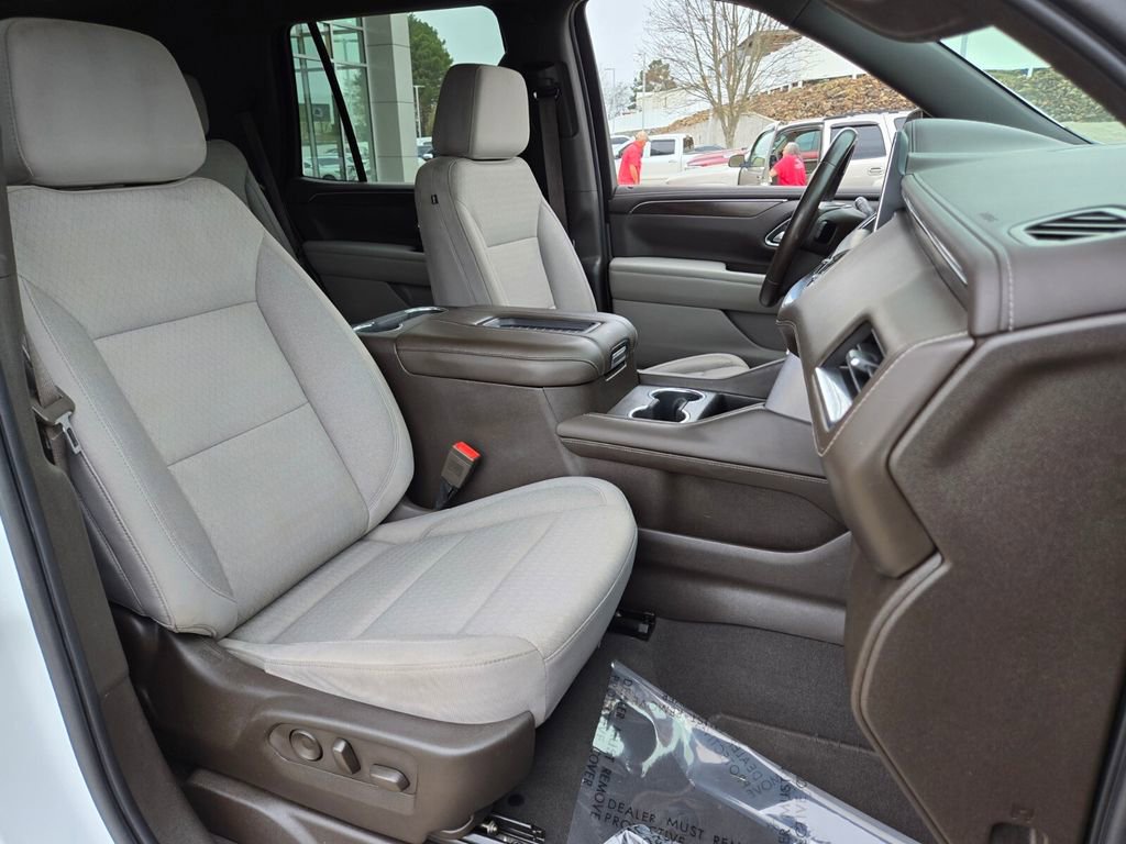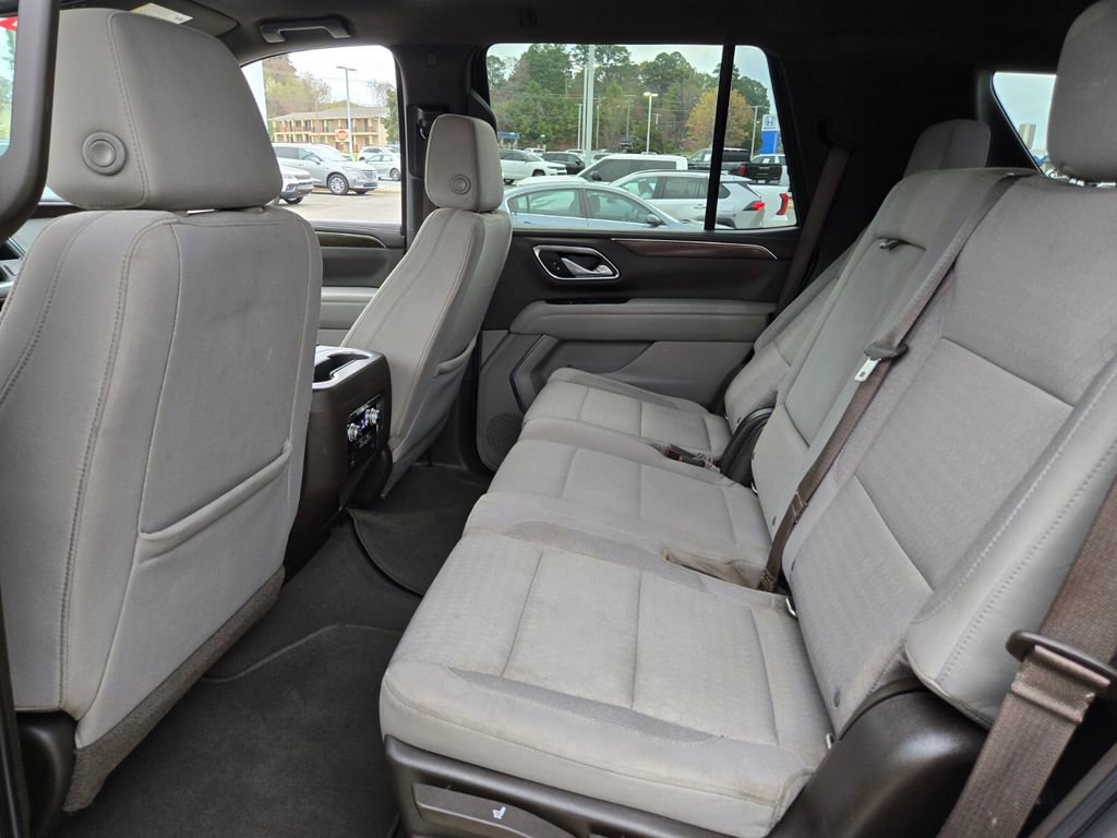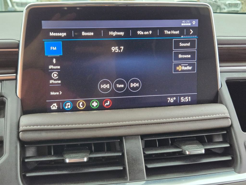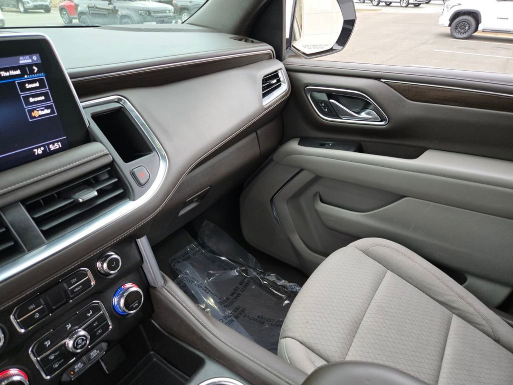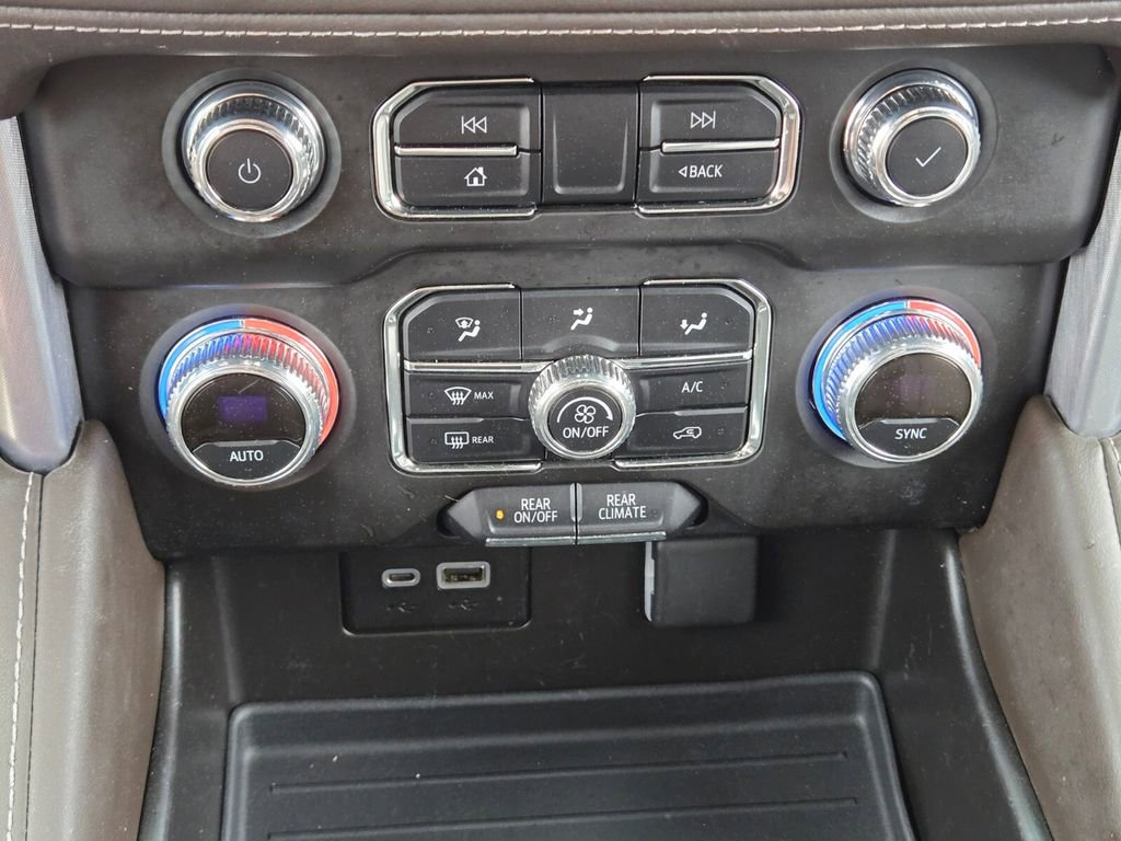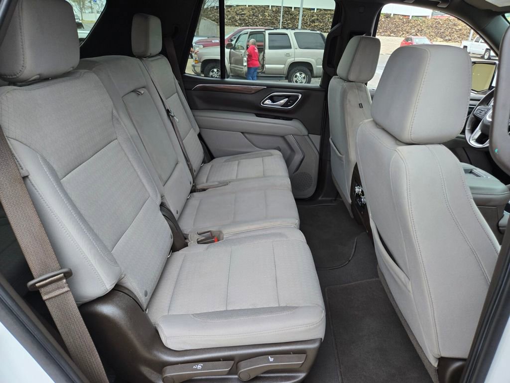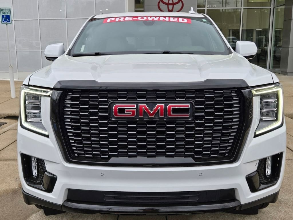 This 2021 GMC Yukon comes equipped with, 4WD, 3.23 Rear Axle Ratio, 3rd row seats: split-bench, 4-Wheel Disc Brakes, 6 Speakers, 6-Speaker Audio System Feature, ABS brakes, Air Conditioning, Alloy wheels, AM/FM radio: SiriusXM with 360L, Apple CarPlay/Android Auto, Auto High-beam Headlights, Automatic temperature control, Brake assist, Bumpers: body-color, Cloth Seat Trim, Compass, Delay-off headlights, Driver door bin, Driver vanity mirror, Dual front impact airbags, Dual front side impact airbags, Electronic Stability Control, Emergency communication system: OnStar and GMC connected services capable, Four wheel independent suspension, Front anti-roll bar, Front Bucket Seats, Front Center Armrest, Front dual zone A/C, Front fog lights, Front reading lights, Fully automatic headlights, HD Radio, Heated door mirrors, Illuminated entry, Leather steering wheel, License Plate Front Mounting Package, Low tire pressure warning, Not Equipped w/Automatic Stop/Start, Occupant sensing airbag, Outside temperature display, Overhead airbag, Overhead console, Panic alarm, Passenger door bin, Passenger vanity mirror, Power door mirrors, Power driver seat, Power passenger seat, Power steering, Power windows, Preferred Equipment Group 3SA, Premium Smooth Ride Suspension, Radio: AM/FM/SiriusXM, Rain sensing wipers, Rear air conditioning, Rear anti-roll bar, Rear reading lights, Rear seat center armrest, Rear window defroster, Rear window wiper, Remote keyless entry, Roof rack: rails only, Security system, SiriusXM w/360L, Speed control, Speed-sensing steering, Split folding rear seat, Spoiler, Steering wheel mounted audio controls, Tachometer, Telescoping steering wheel, Tilt steering wheel, Traction control, Trip computer, Variably intermittent wipers, Voltmeter, Wheels: 18" x 8.5" 6-Spoke Machined Aluminum, 4WD.