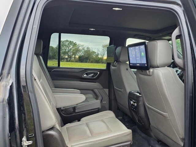 This 2021 GMC Yukon XL comes equipped with License Plate Front Mounting Package, Preferred Equipment Group 4SA (12-Way Power Seat Adjusters, 2 Presets For Power Driver Seat, Bose 9-Speaker Stereo Audio System Feature, Bright Chrome Bodyside Moldings, Bright Front & Rear Door Sill Plates, Chrome Door Handles w/Body-Color Strip, Hands-Free Power Programmable Rear Liftgate, Heated & Ventilated Driver & Front Passenger Seats, Heated Driver & Front Passenger Seats, Inside Rear-View Auto-Dimming Mirror, Safety Alert Seat, and Universal Home Remote), Rear Media & Nav Package (Radio: AM/FM/SiriusXM w/Navigation, Rear Seat Media System, HD Radio, and SiriusXM w/360L), SLT Luxury Package (2 Presets For Outside Rearview Mirrors, 3rd Row 60/40 Power-Folding Split-Bench Seat, HD Surround Vision, Heated 2nd Row Outboard Position Seats, Heated Automatic Steering Wheel, Outside Heated Power-Adjustable Mirrors, Power Release 2nd Row 60/40 Split-Folding Bench Seat, Power Tilt & Telescopic Steering Column, and Rear Pedestrian Alert), SLT Premium Package (Dual-Pane Panoramic Power Sunroof), 4WD, 3.23 Rear Axle Ratio, 3rd row seats: split-bench, 4-Wheel Disc Brakes, 9 Speakers, ABS brakes, Air Conditioning, Alloy wheels, AM/FM radio: SiriusXM with 360L, Apple CarPlay/Android Auto, Auto High-beam Headlights, Auto-dimming Rear-View mirror, Automatic Emergency Braking, Automatic temperature control, Bodyside moldings, Brake assist, Bumpers: body-color, Compass, Delay-off headlights, Driver door bin, Driver vanity mirror, Dual front impact airbags, Dual front side impact airbags, Electronic Stability Control, Emergency communication system: OnStar and GMC connected services capable, Floor Console, Following Distance Indicator, Forward Collision Alert, Four wheel independent suspension, Front & Rear Park Assist, Front anti-roll bar, Front Bucket Seats, Front Center Armrest, Front dual zone A/C, Front fog lights, Front Pedestrian Braking, Front reading lights, Fully automatic headlights, Garage door transmitter, Heated door mirrors, Heated front seats, Illuminated entry, IntelliBeam Automatic High Beam On/Off, Lane Change Alert w/Side Blind Zone Alert, Lane Keep Assist w/Lane Departure Warning, Leather steering wheel, Low tire pressure warning, Memory seat, Not Equipped w/Automatic Stop/Start, Not Equipped w/Steering Column Lock, Occupant sensing airbag, Outside temperature display, Overhead airbag, Overhead console, Panic alarm, Passenger door bin, Passenger vanity mirror, Perforated Leather Seating Surfaces, Power door mirrors, Power driver seat, Power Liftgate, Power passenger seat, Power Release 2nd Row Bucket Seats, Power steering, Power windows, Premium Smooth Ride Suspension, Radio: AM/FM/SiriusXM, Rain sensing wipers, Rear air conditioning, Rear anti-roll bar, Rear Cross Traffic Alert, Rear reading lights, Rear seat center armrest, Rear window defroster, Rear window wiper, Remote keyless entry, Roof rack: rails only, Security system, Speed control, Speed-sensing steering, Split folding rear seat, Spoiler, Steering wheel mounted audio controls, Tachometer, Telescoping steering wheel, Tilt steering wheel, Traction control, Trip computer, Variably intermittent wipers, Ventilated front seats, Voltmeter, Wheels: 20" x 9" 6-Spoke Polished Aluminum, Wheels: 22" 6-Spoke Midnight Silver (LPO), and Wheels: 22" x 9" Steel Interim (LPO) Carfax no accidents, 4WD, 12-Way Power Seat Adjusters, 2 Presets For Outside Rearview Mirrors, 2 Presets For Power Driver Seat, 3rd Row 60/40 Power-Folding Split-Bench Seat, Bose 9-Speaker Stereo Audio System Feature, Bright Chrome Bodyside Moldings, Bright Front & Rear Door Sill Plates, Chrome Door Handles w/Body-Color Strip, Dual-Pane Panoramic Power Sunroof, Hands-Free Power Programmable Rear Liftgate, HD Surround Vision, Heated & Ventilated Driver & Front Passenger Seats, Heated 2nd Row Outboard Position Seats, Heated Automatic Steering Wheel, Heated Driver & Front Passenger Seats, Inside Rear-View Auto-Dimming Mirror, L