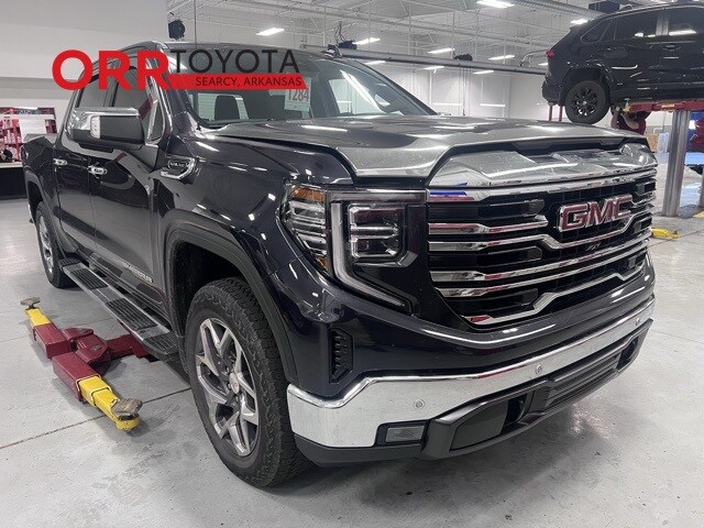 Titanium Rush Metallic 2022 GMC Sierra 1500 SLT 4WD 10-Speed Automatic EcoTec3 5.3L V8 This Sierra 1500 SLT is nicely equipped with High Capacity Suspension Package, Preferred Equipment Group 4SA (120-Volt Bed Mounted Power Outlet, 120-Volt Instrument Panel Power Outlet, 170 Amp Alternator, 2 Charge/Data USB Ports, 2 Type-C Charge-Only Rear USB Ports, 6-Speaker Audio System Feature, Auto-Locking Rear Differential, Auxiliary External Transmission Oil Cooler, Chrome Header & Chrome Grille Insert Bars, Color-Keyed Carpeting Floor Covering, Compass, Deep-Tinted Glass, Electric Rear-Window Defogger, Electrical Steering Column Lock, Front Frame-Mounted Black Recovery Hooks, Front Rainsensing Wipers, GMC Connected Access Capable, HD Rear Vision Camera, Heated Steering Wheel, Keyless Open & Start, LED Cargo Area Lighting, Manual Tilt-Wheel & Telescoping Steering Column, OnStar & GMC Connected Services Capable, Perimeter Lighting, Power Door Locks, Power Front Passenger Windows w/Express Up/Down, Power Front Windows w/Driver Express Up/Down, Power Rear Windows w/Express Down, Push Button Start, Rear Wheelhouse Liners, Remote Vehicle Starter System, SiriusXM w/360L, Steering Wheel Audio Controls, Theft Deterrent System (Unauthorized Entry), Wi-Fi Hotspot Capable, and Wireless Phone Projection), ProGrade Trailering System (Hitch Guidance w/Hitch View, In-Vehicle Trailering App, and Integrated Trailer Brake Controller), Sierra Safety Plus Package (HD Surround Vision, Rear Cross Traffic Braking, Rear Pedestrian Detection, Safety Alert Seat, Trailer Camera Provisions, Trailer Side Blind Zone Alert, and Ultrasonic Front & Rear Park Assist), SLT Convenience Package (2 Charge/Data USB Ports Inside Center Console, Electronic Precision Shift, Floor-Mounted Center Console, Front Bucket Seats, Power Rake & Telescoping Steering Column, Premium Bose 7-Speaker Sound System, Ventilated Driver & Front Passenger Seats, and Wireless Charging), SLT Preferred Package (Adaptive Cruise Control, Heated 2nd Row Outboard Seats, Power Sliding Rear Window w/Rear Defogger, and Universal Home Remote), SLT Premium Plus Package (20" Polished Aluminum Wheels, Chrome Wheel To Wheel Assist Steps, and Spray-On Pickup Bed Liner w/GMC Logo), Standard Suspension Package, Trailering Package (Hitch Guidance), X31 Off-Road & Protection Package (All-Weather Floor Liner (LPO)), X31 Off-Road Package (Dual Exhaust System, Heavy-Duty Air Filter, Hill Descent Control, Off-Road Suspension, and X31 Hard Badge), 10-Speed Automatic, 4WD, Jet Black w/Leather-Appointed Seat Trim, 10-Way Power Driver Seat Adjuster w/Lumbar, 10-Way Power Passenger Seat Adjuster w/Lumbar, 3 Years of OnStar & Connected Services Plan, 3.23 Rear Axle Ratio, 4-Wheel Disc Brakes, 6 Speakers, ABS brakes, Air Conditioning, Alloy wheels, AM/FM radio: SiriusXM with 360L, Apple CarPlay/Android Auto, Auto High-beam Headlights, Auto-dimming door mirrors, Auto-dimming Rear-View mirror, Automatic Emergency Braking, Automatic temperature control, Brake assist, Buckle to Drive, Bumpers: chrome, Delay-off headlights, Driver door bin, Driver Memory, Driver vanity mirror, Dual front impact airbags, Dual front side impact airbags, Electronic Stability Control, Emergency communication system: OnStar and GMC Connected Services capable, Exterior Parking Camera Rear, Following Distance Indicator, Forward Collision Alert, Front 40/20/40 Split-Bench Seat, Front anti-roll bar, Front Center Armrest w/Storage, Front dual zone A/C, Front fog lights, Front Pedestrian Braking, Front reading lights, Front wheel independent suspension, Fully automatic headlights, Heated door mirrors, Heated Driver & Front Outboard Passenger Seating, Heated front seats, Heated steering wheel, Illuminated entry, IntelliBeam Automatic High Beam On/Off, Lane Keep Assist w/Lane Departure Warning, Low tire pressure warning, Memory seat, Navigation System, Not Equip w/Heat & Vent Seat Cushion Blower Motor, Not Equipped w/Dynamic Fuel Management, Not Equipped w/Stee