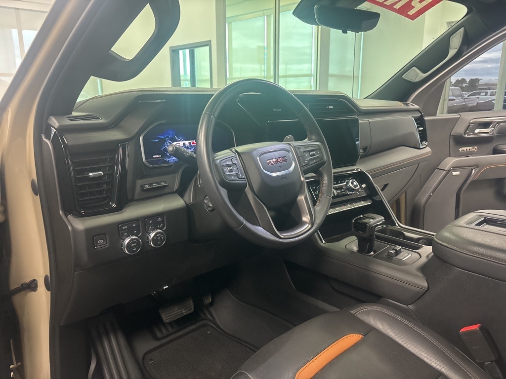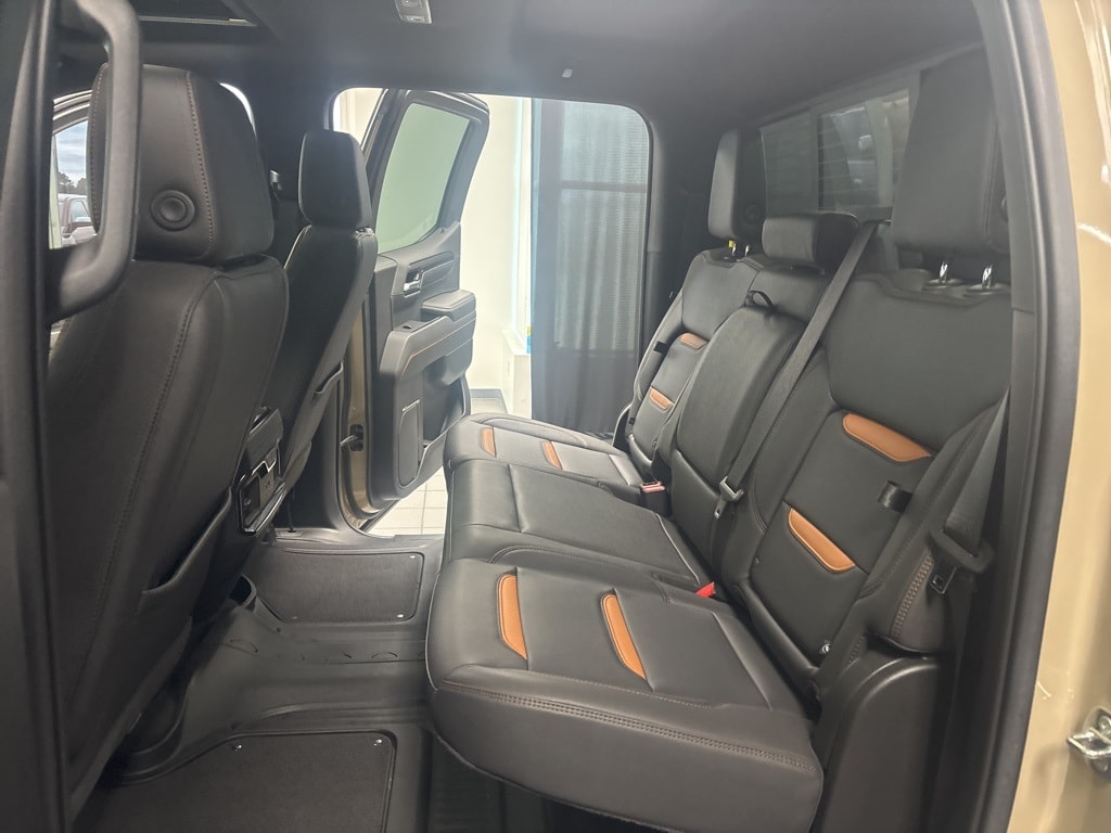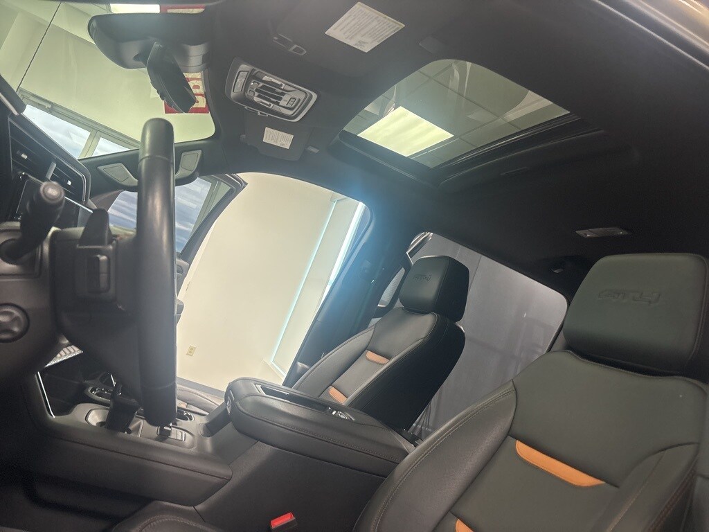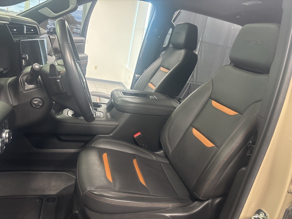 CARFAX One-Owner. Desert Sand Metallic AT4 4WD 10-Speed Automatic EcoTec3 6.2L V8 10-Speed Automatic, 4WD, Jet Black With Kalahari Accents Leather, 220 Amp Alternator, 3.23 Rear Axle Ratio, 7 Speakers, ABS brakes, Adaptive Cruise Control, AT4 Preferred Package, Auto-dimming door mirrors, Automatic temperature control, Bed View Camera, Block heater, Brake assist, Bumpers: body-color, Color-Keyed Carpeting Floor Covering, Deep-Tinted Glass, Delay-off headlights, Driver door bin, Dual front side impact airbags, Electronic Stability Control, Emergency communication system: OnStar and GMC Connected Services capable, Engine Block Heater, Front Bucket Seats, Front dual zone A/C, Front License Plate Kit, Front Prem Floor Liners w/Removable Carpet Insert, Front Rainsensing Wipers, Front wheel independent suspension, Fully automatic headlights, HD Surround Vision, Heated 2nd Row Outboard Seats, Heated front seats, Heated steering wheel, Hill Descent Control, Hitch Guidance, In-Vehicle Trailering App, Lane Keep Assist w/Lane Departure Warning, LED Cargo Area Lighting, Navigation System, Not Equipped w/Steering Column Lock, Outside temperature display, Overhead airbag, Panic alarm, Passenger door bin, Passenger vanity mirror, Perimeter Lighting, Power door mirrors, Power passenger seat, Power Rake & Telescoping Steering Column, Power Rear Windows w/Express Down, Power Sliding Rear Window w/Rear Defogger, Power steering, Power Sunroof, Push Button Start, Radio data system, Rain sensing wipers, Rear Cross Traffic Braking, Rear Pedestrian Detection, Rear Prem Floor Liners w/Removable Carpet Insert, Rear window defroster, Red Recovery Hooks, Security system, Sierra Safety Plus Package, SiriusXM w/360L, Speed-sensing steering, Spray-On Pickup Bed Liner w/AT4 Logo, Steering wheel mounted audio controls, Telescoping steering wheel, Traction control, Trailer Camera Provisions, Trailer Side Blind Zone Alert, Trailering Package, Ultrasonic Front & Rear Park Assist, Universal Home Remote, Variably intermittent wipers, Ventilated Driver & Front Passenger Seats, Wi-Fi Hotspot Capable, Wireless Phone Projection.
