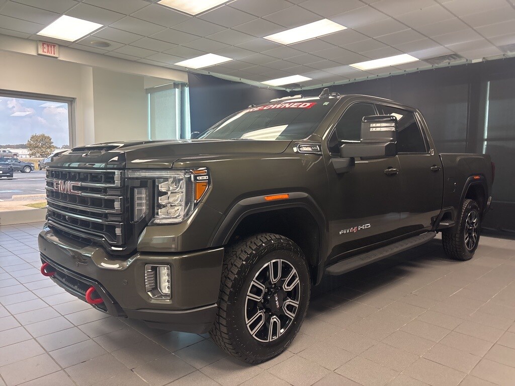 CARFAX One-Owner. Clean CARFAX. Forest Metallic AT4 4WD 6-Speed Automatic 6.6L V8 6-Speed Automatic, 4WD, Jet Black With Kalahari Accents Leather, 10-Way Power Driver Seat Adjuster w/Lumbar, 12-Volt Rear Auxiliary Power Outlet, 120-Volt Bed Mounted Power Outlet, 120-Volt Instrument Panel Power Outlet, 2 USB Ports, 2 USB Ports (1st Row), 2-Speed Active Transfer Case, 20" Machined Aluminum Wheels, 2nd Row Dual USB Charge-Only Ports, 4.2" Diagonal Color Display Driver Info Center, 6 Speakers, 8" Driver Information Center, AT4 Preferred Package, AT4 Premium Plus Package, Automatic Emergency Braking, Bed View Camera w/2 Trailer Camera Provisions, Bose Premium 7 Speaker Sound System, Compass Located In Instrument Cluster, Deep-Tinted Glass, Driver Alert Package I, Driver Alert Package II, Driver Memory, Electric Rear-Window Defogger, Electrical Lock Control Steering Column, Floor-Mounted Center Console, Following Distance Indicator, Forward Collision Alert, Front Prem Floor Liners w/Removable Carpet Insert, GMC Connected Access Capable, Gooseneck/5th Wheel Package, Gooseneck/5th Wheel Prep Package, HD Rear Vision Camera, HD Surround Vision w/2 Trailer View Camera Provisions, Heated & Ventilated Front Bucket Seats, Heated 2nd Row Outboard Seats, Heated door mirrors, Heated Driver & Front Outboard Passenger Seats, Heated front seats, Hill Descent Control, Inside Rearview Auto-Dimming Rear Camera Mirror, Integrated Trailer Brake Controller, IntelliBeam Automatic High Beam On/Off, Keyless Open & Start, Lane Change Alert w/Side Blind Zone Alert, Lane Departure Warning System, LED Cargo Area Lighting, LED Smoked Amber Roof Marker Lamps, Low tire pressure warning, Manual Tilt-Wheel/Telescoping Steering Column, Memory seat, Multicolor 15" Diagonal Head-Up Display, Not Equip w/Heat & Vent Seat Cushion Blower Motor, Off-Road High Clearance Step (LPO), Off-Road Suspension, OnStar & GMC Connected Services Capable, Painted Black Surround Grille, Perimeter Lighting, Pickup Box, Power Door Locks, Power driver seat, Power Front Passenger Windows w/Express Up/Down, Power Rear Windows w/Express Down, Power Sliding Rear Window w/Defogger, Power steering, Power Sunroof, Power windows, Power Windows w/Driver Express Up/Down, Preferred Equipment Group 4SB, Radio: AM/FM w/Prem GMC Infotainment System & Navi, Rear Cross Traffic Alert, Rear Prem Floor Liners w/Removable Carpet Insert, Rear Wheelhouse Liners, Rear window defroster, Red Recovery Hooks, Remote Vehicle Starter System, Safety Alert Seat, Speed-sensing steering, Spray-On Pickup Box Bed Liner w/AT4 Logo, Steering Wheel Audio Controls, Technology Package, Ultrasonic Front & Rear Park Assist, Unauthorized Entry Theft-Deterrent System, Universal Home Remote, Ventilated front seats, Wi-Fi Hotspot Capable, Wireless Charging, Wireless Phone Projection, X31 Off-Road Package.