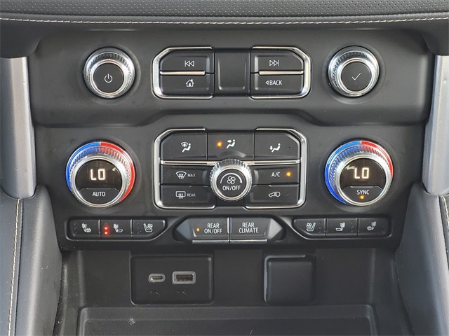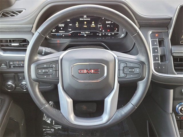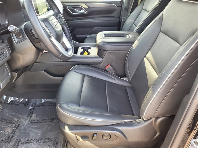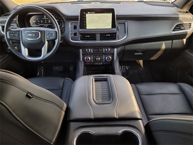 This 2022 GMC Yukon XL comes equipped with License Plate Front Mounting Package, Preferred Equipment Group 4SA (2 Presets For Power Driver Seat, Automatic Stop/Start, Bose 9-Speaker Stereo Audio System Feature, Bright Chrome Bodyside Moldings, Bright Front & Rear Door Sill Plates, Chrome Door Handles w/Body-Color Strip, Hands-Free Power Programmable Rear Liftgate, Heated & Ventilated Driver & Front Passenger Seats, Heated Driver & Front Passenger Seats, Inside Rear-View Auto-Dimming Mirror, Safety Alert Seat, Start/Stop System Disable Button, Universal Home Remote, and Wireless Charging), Navigation System, 2nd Row Manual-Folding Bucket Seats, 3 Years of OnStar & Connected Services Plan, 3.23 Rear Axle Ratio, 3rd row seats: split-bench, 4-Wheel Disc Brakes, 9 Speakers, ABS brakes, Air Conditioning, Alloy wheels, AM/FM radio: SiriusXM with 360L, AM/FM Stereo, Apple CarPlay/Android Auto, Auto High-beam Headlights, Auto-dimming Rear-View mirror, Automatic Emergency Braking, Automatic temperature control, Bodyside moldings, Brake assist, Bumpers: body-color, Compass, Delay-off headlights, Driver door bin, Driver vanity mirror, Dual front impact airbags, Dual front side impact airbags, Electronic Stability Control, Emergency communication system: OnStar and GMC Connected Services capable, Following Distance Indicator, Forward Collision Alert, Four wheel independent suspension, Front & Rear Park Assist, Front anti-roll bar, Front Bucket Seats, Front Center Armrest, Front dual zone A/C, Front fog lights, Front Pedestrian Braking, Front reading lights, Fully automatic headlights, Garage door transmitter, Heated door mirrors, Heated front seats, Illuminated entry, IntelliBeam Automatic High Beam On/Off, Lane Change Alert w/Side Blind Zone Alert, Lane Keep Assist w/Lane Departure Warning, Leather steering wheel, Low tire pressure warning, Memory seat, Not Equip w/Ventilated Seat Cushion Blower Motor, Not Equipped w/4-Way Driver & Fr Pass Pwr Lumbar, Not Equipped w/Front & Rear Park Assist, Not Equipped w/Steering Column Lock, Occupant sensing airbag, Outside temperature display, Overhead airbag, Overhead console, Panic alarm, Passenger door bin, Passenger vanity mirror, Perforated Leather-Appointed Seating, Power door mirrors, Power driver seat, Power Liftgate, Power passenger seat, Power steering, Power windows, Premium Smooth Ride Suspension, Rain sensing wipers, Rear air conditioning, Rear anti-roll bar, Rear Cross Traffic Alert, Rear reading lights, Rear seat center armrest, Rear window defroster, Rear window wiper, Remote keyless entry, Roof rack: rails only, Security system, SiriusXM w/360L, Speed control, Speed-sensing steering, Split folding rear seat, Spoiler, Steering wheel mounted audio controls, Tachometer, Telescoping steering wheel, Tilt steering wheel, Traction control, Trip computer, Variably intermittent wipers, Ventilated front seats, Voltmeter, Wheels: 20" x 9" 6-Spoke Polished Aluminum, Wheels: 22" Multi-Spoke Gloss Black (LPO) (SRV), and Wheels: 22" x 9" Steel Interim (LPO) CARFAX One-Owner. One Owner Carfax, 2 Presets For Power Driver Seat, Automatic Stop/Start, Bose 9-Speaker Stereo Audio System Feature, Bright Chrome Bodyside Moldings, Bright Front & Rear Door Sill Plates, Chrome Door Handles w/Body-Color Strip, Hands-Free Power Programmable Rear Liftgate, Heated & Ventilated Driver & Front Passenger Seats, Heated Driver & Front Passenger Seats, Inside Rear-View Auto-Dimming Mirror, License Plate Front Mounting Package, Navigation System, Preferred Equipment Group 4SA, Safety Alert Seat, Start/Stop System Disable Button, Universal Home Remote, Wireless Charging.