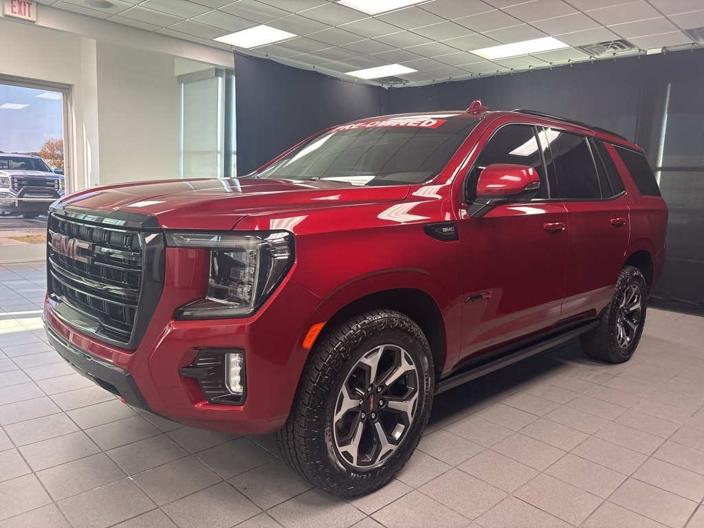 CARFAX One-Owner. Clean CARFAX. Cayenne Red Tintcoat AT4 4WD 10-Speed Automatic with Overdrive EcoTec3 6.2L V8 4WD, 2 Presets For Outside Rearview Mirrors, 3 Years of GMC Connected Services, 3rd Row 60/40 Power-Folding Split-Bench Seat, Adaptive suspension, Air Conditioning, Auto-leveling suspension, Automatic Emergency Braking, Automatic Stop/Start, Automatic temperature control, Black Roof-Mounted Luggage Rack Side Rails, Bose 9-Speaker Stereo Audio System Feature, Bright Front & Rear Door Sill Plates, Emergency communication system: OnStar and GMC Connected Services capable, Four wheel independent suspension, Front dual zone A/C, Front High-Approach Angle Fascia, Front reading lights, Fully automatic headlights, Garage door transmitter, Hands-Free Power Programmable Rear Liftgate, Heated & Ventilated Driver & Front Passenger Seats, Heated 2nd Row Outboard Position Seats, Heated Driver & Front Passenger Seats, Heated Steering Wheel, Heavy-Duty Air Filter, Hill Descent Control, Inside Rear-View Auto-Dimming Mirror, License Plate Front Mounting Package, Low tire pressure warning, Memory seat, Navigation System, Outside Heated Power-Adjustable Mirrors, Outside temperature display, Power driver seat, Power Liftgate, Power Release 2nd Row 60/40 Split-Folding Bench Seat, Power Tilt & Telescopic Steering Column, Power windows, Preferred Equipment Group 4SB, Rain sensing wipers, Rear air conditioning, Rear anti-roll bar, Rear window wiper, Red Horizontal-Mounted Recovery Hooks, Remote keyless entry, Safety Alert Seat, Security system, Speed control, Start/Stop System Disable Button, Steering wheel memory, Telescoping steering wheel, Tilt steering wheel, Traction control, Turn signal indicator mirrors, Universal Home Remote, Variably intermittent wipers, Voltmeter, Wheels: 20" x 9" 6-Spoke Machined Aluminum, Wireless Charging.