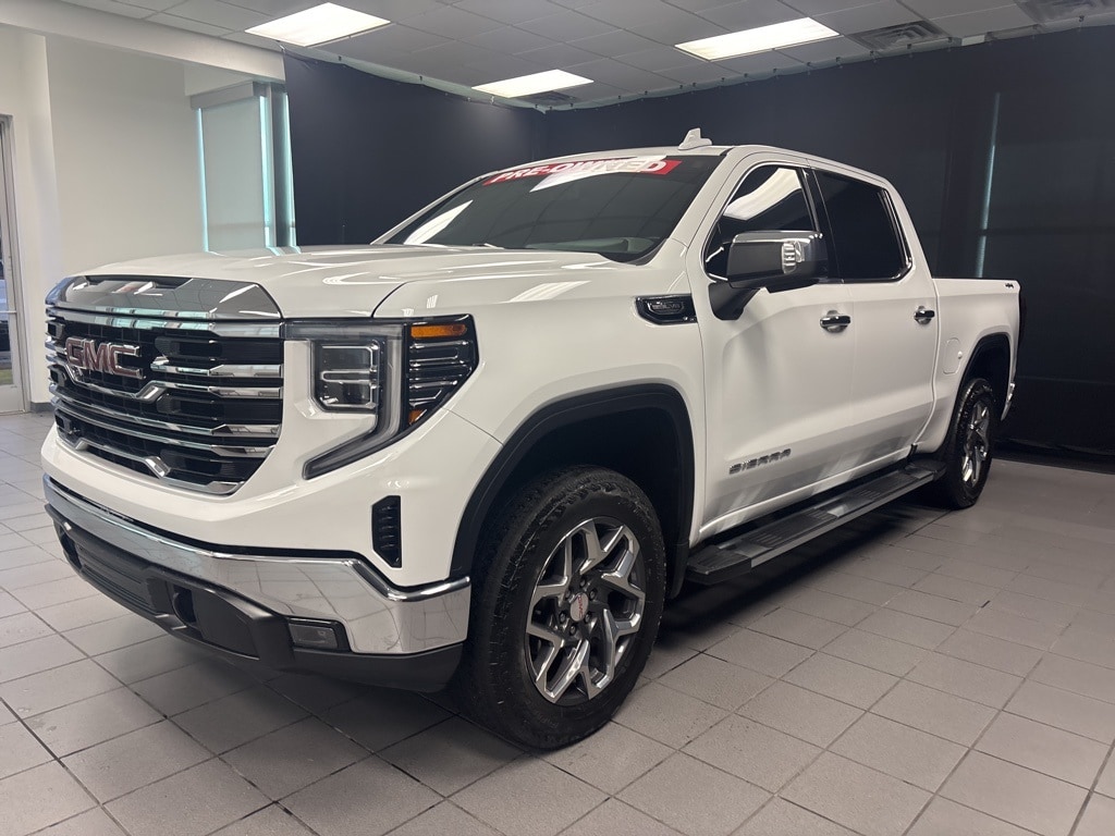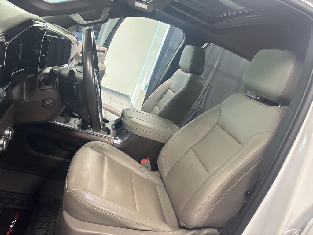 CARFAX One-Owner. Clean CARFAX. Summit White SLT 4WD 10-Speed Automatic EcoTec3 5.3L V8 **4WD**, **LOCAL TRADE**, **NON SMOKER**, **ONE OWNER**, **LEATHER INTERIOR**, **KEYLESS ENTRY**, **REMOTE START**, **HEATED / COOLED SEATS**, **WE DELIVER ANYWHERE**, **REAR VIEW CAMERA**, **TOWING PACKAGE**, 10-Speed Automatic, 4WD, Dark Walnut/Slate Leather, 10-Way Power Driver Seat Adjuster w/Lumbar, 10-Way Power Passenger Seat Adjuster w/Lumbar, 2 Charge/Data USB Ports, 2 Charge/Data USB Ports Inside Center Console, 2 Type-C Charge-Only Rear USB Ports, 20" Polished Aluminum Wheels, 6-Speaker Audio System Feature, Adaptive Cruise Control, Alloy wheels, Auto High-beam Headlights, Auto-dimming door mirrors, Auto-dimming Rear-View mirror, Auto-Locking Rear Differential, Auxiliary External Transmission Oil Cooler, Brake assist, Buckle to Drive, Bumpers: chrome, Chrome Header & Chrome Grille Insert Bars, Console-Mounted Safe (LPO), Deep-Tinted Glass, Delay-off headlights, Driver door bin, Driver Memory, Driver vanity mirror, Dual front impact airbags, Electric Rear-Window Defogger, Electronic Precision Shift, Electronic Stability Control, Floor-Mounted Center Console, Following Distance Indicator, Front 40/20/40 Split-Bench Seat, Front anti-roll bar, Front Bucket Seats, Front Center Armrest w/Storage, Front dual zone A/C, Front Pedestrian Braking, Front reading lights, Front wheel independent suspension, Fully automatic headlights, HD Rear Vision Camera, Heated 2nd Row Outboard Seats, Heated door mirrors, Heated Driver & Front Outboard Passenger Seating, Heated front seats, Heated steering wheel, High Capacity Suspension Package, Hitch Guidance, IntelliBeam Automatic High Beam On/Off, Lane Keep Assist w/Lane Departure Warning, Low tire pressure warning, Manual Tilt-Wheel & Telescoping Steering Column, Navigation System, Not Equipped w/Wireless Charging, Occupant sensing airbag, OnStar & GMC Connected Services Capable, Overhead console, Panic alarm, Passenger door bin, Perimeter Lighting, Power Door Locks, Power door mirrors, Power driver seat, Power Front Passenger Windows w/Express Up/Down, Power passenger seat, Power Rake & Telescoping Steering Column, Power Rear Windows w/Express Down, Power Sliding Rear Window w/Rear Defogger, Power Sunroof, Power windows, Premium audio system: GMC Infotainment System, Premium Bose 7-Speaker Sound System, Radio data system, Rain sensing wipers, Rear reading lights, Rear seat center armrest, Rear Underseat Storage (LPO), Rear Wheelhouse Liners, Rear window defroster, Remote keyless entry, Remote Vehicle Starter System, Security system, SiriusXM w/360L, SLT Convenience Package, SLT Preferred Package, Speed control, Speed-sensing steering, Spray-On Pickup Bed Liner w/GMC Logo, Standard Suspension Package, Tachometer, Telescoping steering wheel, Traction control, Trailering Package, Trip computer, Universal Home Remote, Variably intermittent wipers, Ventilated Driver & Front Passenger Seats, Voltmeter, Wi-Fi Hotspot Capable, Wireless Charging.