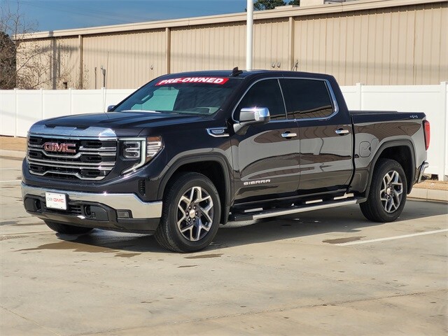 This 2023 GMC Sierra 1500 comes equipped with High Capacity Suspension Package, Preferred Equipment Group 4SA (120-Volt Instrument Panel Power Outlet, 170 Amp Alternator, 2 Charge/Data USB Ports, 2 Type-C Charge-Only Rear USB Ports, 6-Speaker Audio System Feature, Auto-Locking Rear Differential, Auxiliary External Transmission Oil Cooler, Chrome Header & Chrome Grille Insert Bars, Color-Keyed Carpeting Floor Covering, Compass, Deep-Tinted Glass, Electric Rear-Window Defogger, Electrical Steering Column Lock, Front Frame-Mounted Black Recovery Hooks, Front Rainsensing Wipers, GMC Connected Access Capable, HD Rear Vision Camera, Keyless Open & Start, LED Cargo Area Lighting, Manual Tilt-Wheel & Telescoping Steering Column, OnStar & GMC Connected Services Capable, Perimeter Lighting, Power Door Locks, Power Front Passenger Windows w/Express Up/Down, Power Front Windows w/Driver Express Up/Down, Power Rear Windows w/Express Down, Push Button Start, Rear Wheelhouse Liners, Remote Vehicle Starter System, SiriusXM w/360L, Steering Wheel Audio Controls, Theft Deterrent System (Unauthorized Entry), Wi-Fi Hotspot Capable, Wireless Phone Projection, and 120-Volt Bed Mounted Power Outlet), SLT Convenience Package (Floor-Mounted Center Console, Front Bucket Seats, Power Rake & Telescoping Steering Column, Premium Bose 7-Speaker Sound System, Ventilated Driver & Front Passenger Seats, Wireless Charging, 2 Charge/Data USB Ports Inside Center Console, and Electronic Precision Shift), Standard Suspension Package, Texas Edition SLT Premium Package (20" Polished Aluminum Wheels, Chrome Wheel To Wheel Assist Steps, and Texas Edition Badging), Trailering Package (Hitch Guidance), 10-Speed Automatic, 4WD, Dark Walnut/Slate Leather, Navigation System, 10-Way Power Driver Seat Adjuster w/Lumbar, 10-Way Power Passenger Seat Adjuster w/Lumbar, 220 Amp Alternator, 3.23 Rear Axle Ratio, 4-Wheel Disc Brakes, 6 Speakers, ABS brakes, Air Conditioning, Alloy wheels, AM/FM radio, Apple CarPlay/Android Auto, Auto High-beam Headlights, Auto-dimming door mirrors, Auto-dimming Rear-View mirror, Automatic Emergency Braking, Automatic temperature control, Brake assist, Buckle to Drive, Bumpers: chrome, Delay-off headlights, Driver door bin, Driver Memory, Driver vanity mirror, Dual front impact airbags, Dual front side impact airbags, Electronic Stability Control, Emergency communication system: OnStar and GMC connected services capable, Engine Block Heater, Following Distance Indicator, Forward Collision Alert, Front 40/20/40 Split-Bench Seat, Front anti-roll bar, Front Center Armrest w/Storage, Front dual zone A/C, Front fog lights, Front License Plate Kit, Front Pedestrian Braking, Front reading lights, Front wheel independent suspension, Fully automatic headlights, GMC MultiPro Tailgate Step Lights (LPO), Heated door mirrors, Heated Driver & Front Outboard Passenger Seating, Heated front seats, Heated steering wheel, Illuminated entry, IntelliBeam Automatic High Beam On/Off, Lane Keep Assist w/Lane Departure Warning, Low tire pressure warning, Memory seat, Not Equipped w/Steering Column Lock, Occupant sensing airbag, Outside temperature display, Overhead airbag, Overhead console, Panic alarm, Passenger door bin, Passenger vanity mirror, Perf Leather-Appointed Front Outboard Seat Trim, Power door mirrors, Power driver seat, Power passenger seat, Power steering, Power windows, Premium audio system: GMC Infotainment System, Radio data system, Radio: Premium GMC Infotainment Audio System, Rain sensing wipers, Rear reading lights, Rear seat center armrest, Rear step bumper, Rear window defroster, Remote keyless entry, Security system, Speed control, Speed-sensing steering, Split folding rear seat, Steering wheel mounted audio controls, Tachometer, Telescoping steering wheel, Tilt steering wheel, Traction control, Trip computer, Variably intermittent wipers, Voltmeter, and Wheels: 18" x 8.5" 6-Spoke Machined Aluminum. CARFAX One-Owner. Clean CARFAX. Priced below KBB