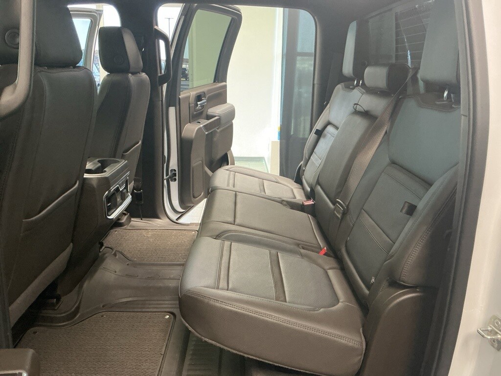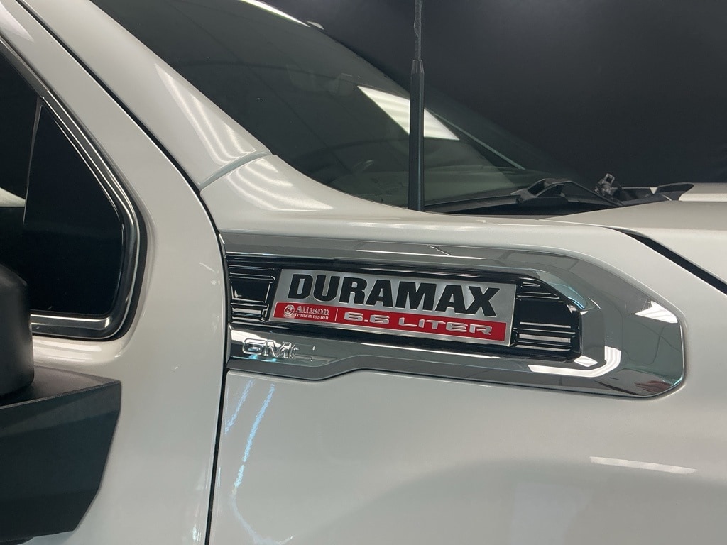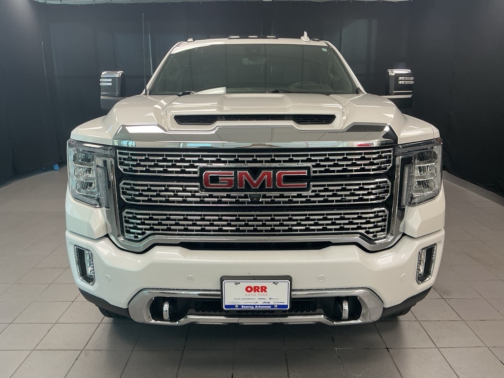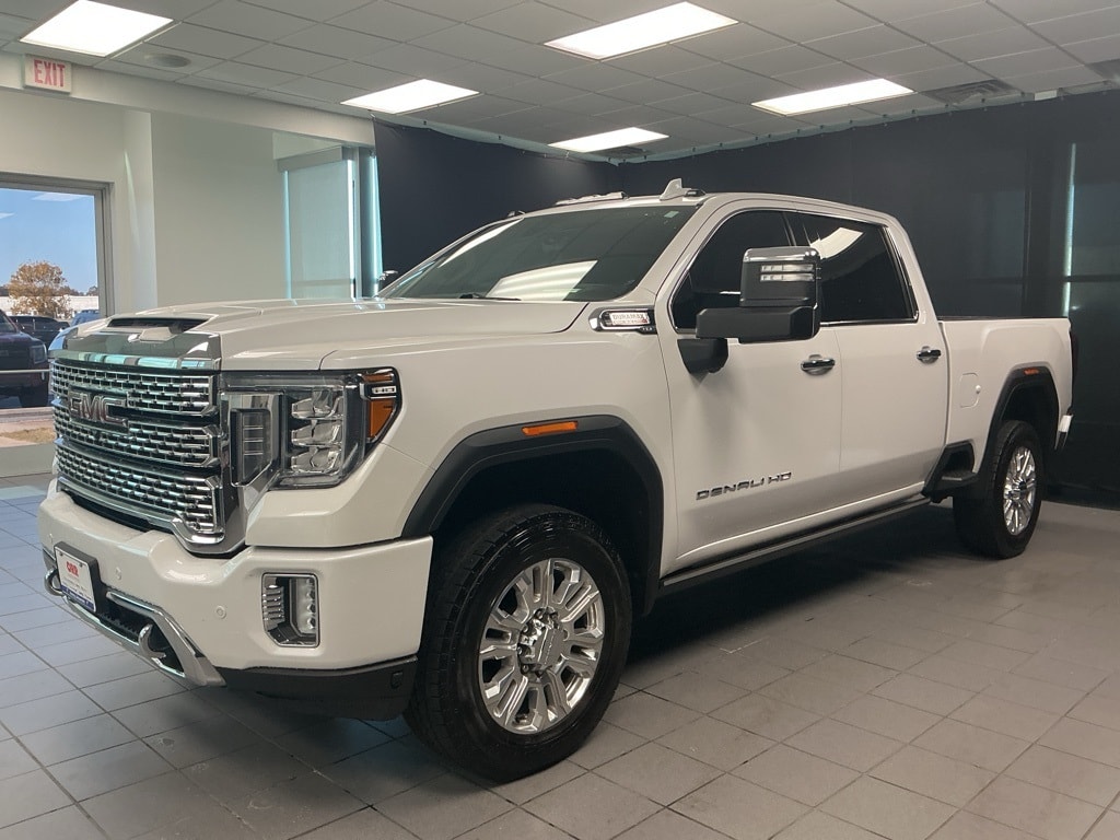CARFAX One-Owner. Clean CARFAX. White Frost Tricoat Denali 4WD 10-Speed Automatic Duramax 6.6L V8 Turbodiesel 10-Speed Automatic, 4WD, Dark Walnut/Dark Ash Grey Leather.