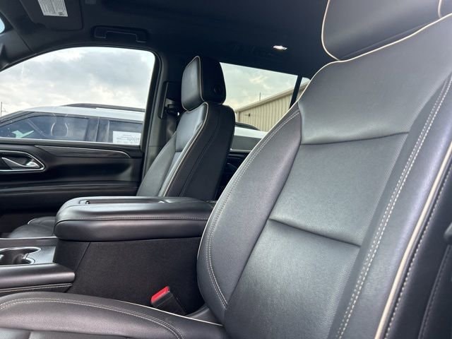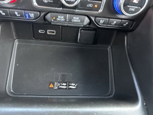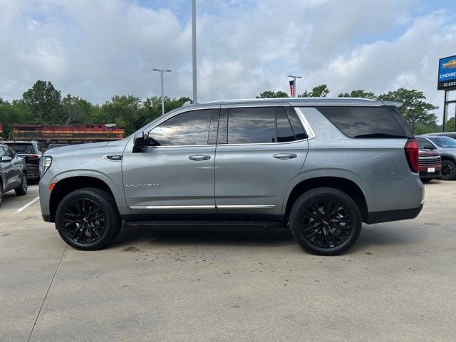 Sterling Metallic 2023 GMC Yukon SLT EcoTec3 5.3L V8 4WD 10-Speed Automatic with Overdrive The 2023 GMC Yukon comes with the following features; License Plate Front Mounting Package, Preferred Equipment Group 4SA (2 Presets For Power Driver Seat, Bose 9-Speaker Stereo Audio System Feature, Bright Chrome Bodyside Moldings, Bright Front & Rear Door Sill Plates, Chrome Door Handles w/Body-Color Strip, Hands-Free Power Programmable Rear Liftgate, Heated & Ventilated Driver & Front Passenger Seats, Heated Driver & Front Passenger Seats, Inside Rear-View Auto-Dimming Mirror, Safety Alert Seat, Universal Home Remote, and Wireless Charging), 4WD, 2nd Row Manual-Folding Bucket Seats, 3.23 Rear Axle Ratio, 3rd row seats: split-bench, 4-Wheel Disc Brakes, 9 Speakers, ABS brakes, Air Conditioning, Alloy wheels, AM/FM radio: SiriusXM with 360L, AM/FM Stereo, Apple CarPlay/Android Auto, Auto High-beam Headlights, Auto-dimming Rear-View mirror, Automatic Emergency Braking, Automatic temperature control, Bodyside moldings, Brake assist, Bumpers: body-color, Compass, Delay-off headlights, Driver door bin, Driver vanity mirror, Dual front impact airbags, Dual front side impact airbags, Dual-Pane Panoramic Power Sunroof, Electronic Stability Control, Emergency communication system: OnStar and GMC connected services capable, Following Distance Indicator, Forward Collision Alert, Four wheel independent suspension, Front & Rear Park Assist, Front anti-roll bar, Front Bucket Seats, Front Center Armrest, Front dual zone A/C, Front fog lights, Front Pedestrian Braking, Front reading lights, Fully automatic headlights, Garage door transmitter, Heated door mirrors, Heated front seats, Illuminated entry, IntelliBeam Automatic High Beam On/Off, Lane Change Alert w/Side Blind Zone Alert, Lane Keep Assist w/Lane Departure Warning, Low tire pressure warning, Memory seat, Navigation System, Not Equip w/Ventilated Seat Cushion Blower Motor, Not Equipped w/4-Way Driver & Fr Pass Pwr Lumbar, Occupant sensing airbag, Outside temperature display, Overhead airbag, Overhead console, Panic alarm, Passenger door bin, Passenger vanity mirror, Perforated Leather-Appointed Seating, Power door mirrors, Power driver seat, Power Liftgate, Power passenger seat, Power steering, Power windows, Premium Smooth Ride Suspension, Rain sensing wipers, Rear air conditioning, Rear anti-roll bar, Rear Cross Traffic Alert, Rear reading lights, Rear seat center armrest, Rear window defroster, Rear window wiper, Remote keyless entry, Roof rack: rails only, Security system, SiriusXM w/360L, Speed control, Speed-sensing steering, Split folding rear seat, Spoiler, Steering wheel mounted audio controls, Tachometer, Telescoping steering wheel, Tilt steering wheel, Traction control, Trip computer, Variably intermittent wipers, Ventilated front seats, Voltmeter, Wheels: 20 x 9 6-Spoke Polished Aluminum, Wheels: 22 Multi-Spoke Gloss Black (LPO), and Wheels: 22 x 9 Steel Interim (LPO) 4WD.