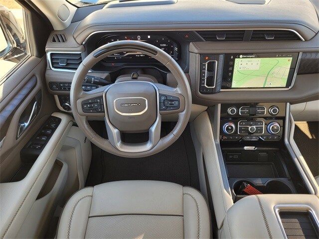 This 2023 GMC Yukon comes equipped with Advanced Security Package (Glass Breakage Sensor, Theft-Deterrent Alarm System, Vehicle Inclination Sensor, and Vehicle Interior Movement Sensor), Advanced Technology Package (Enhanced Automatic Parking Assist, Inside Rearview Auto-Dimming Rear Camera Mirror, Rear Camera Mirror Washer, Reverse Automatic Braking, and Super Cruise), Denali Reserve Package (Dual-Pane Panoramic Power Sunroof, Power-Retractable Assist Steps, Wheels: 22" x 9" Bright Machined Aluminum, and Wheel Locks (Set of 4) (LPO)), License Plate Front Mounting Package, Max Trailering Package, Preferred Equipment Group 5SA (15" Diagonal Multi-Color Head-Up Display, 2 Presets For Outside Rearview Mirrors, 3 Years of GMC Connected Services, 3 Years of OnStar Safety & Security, 3rd Row 60/40 Power-Folding Split-Bench Seat, Bose 14-Speaker Surround w/CenterPoint, Bright Front & Rear Door Sill Plates, Chrome Door Handles w/Body-Color Strip, Dual Exhaust System, Enhanced Automatic Emergency Braking, Floor Console, Galvano Bodyside Moldings, Hands-Free Power Programmable Rear Liftgate, HD Surround Vision, Heated & Ventilated Driver & Front Passenger Seats, Heated 2nd Row Outboard Position Seats, Heated Driver & Front Passenger Seats, Heated Steering Wheel, Hill Descent Control, Inside Rear-View Auto-Dimming Mirror, Outside Heated Power-Adjustable Mirrors, Power Release 2nd Row Bucket Seats, Power Tilt & Telescopic Steering Column, Rear Pedestrian Alert, Safety Alert Seat, Universal Home Remote, and Wireless Charging), Premium Capability Package w/Active Response 4WD (Air Ride Adaptive Suspension and Electronic Limited Slip Differential (eLSD)), 4WD, Navigation System, 14 Speakers, 3 Years of OnStar Safety & Security (DISC), 3.23 Rear Axle Ratio, 3rd row seats: split-bench, 4-Wheel Disc Brakes, ABS brakes, Adaptive Cruise Control, Adaptive suspension, Air Conditioning, Alloy wheels, AM/FM radio: SiriusXM with 360L, AM/FM Stereo, Apple CarPlay/Android Auto, Auto High-beam Headlights, Auto-dimming door mirrors, Auto-dimming Rear-View mirror, Auto-leveling suspension, Automatic Emergency Braking, Automatic temperature control, Bodyside moldings, Brake assist, Bumpers: body-color, Compass, Delay-off headlights, Driver door bin, Driver vanity mirror, Dual front impact airbags, Dual front side impact airbags, Electronic Stability Control, Emergency communication system: OnStar and GMC connected services capable, Extra Capacity Cooling System, Following Distance Indicator, Forward Collision Alert, Four wheel independent suspension, Front & Rear Park Assist, Front anti-roll bar, Front Bucket Seats, Front Center Armrest, Front dual zone A/C, Front fog lights, Front Pedestrian Braking, Front reading lights, Fully automatic headlights, Garage door transmitter, Heads-Up Display, Heated door mirrors, Heated front seats, Heated rear seats, Heated steering wheel, Hitch Guidance w/Hitch View, Illuminated entry, Illuminated Mirror GMC Emblem (LPO), Integrated Trailer Brake Controller, IntelliBeam Automatic High Beam On/Off, Lane Change Alert w/Side Blind Zone Alert, Lane Keep Assist w/Lane Departure Warning, Low tire pressure warning, Magnetic Ride Control Suspension, Memory seat, Occupant sensing airbag, Outside temperature display, Overhead airbag, Overhead console, Panic alarm, Passenger door bin, Passenger vanity mirror, Perforated Leather Seating Surfaces, Power door mirrors, Power driver seat, Power Liftgate, Power passenger seat, Power steering, Power windows, Rain sensing wipers, Rear air conditioning, Rear anti-roll bar, Rear Cross Traffic Alert, Rear reading lights, Rear Seat Media System, Rear window defroster, Rear window wiper, Remote keyless entry, Roof rack: rails only, Security system, SiriusXM w/360L, Smart Trailer Integration Indicator, Speed control, Speed-sensing steering, Split folding rear seat, Spoiler, Steering wheel memory, Steering wheel mounted audio controls, Tachometer, Telescoping steering wheel, Tilt steering wheel, T