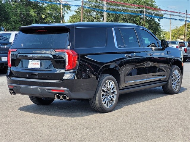 This 2023 GMC Yukon XL comes equipped with Advanced Security Package (Glass Breakage Sensor, Theft-Deterrent Alarm System, Vehicle Inclination Sensor, and Vehicle Interior Movement Sensor), Advanced Technology Package (Enhanced Automatic Parking Assist, Inside Rearview Auto-Dimming Rear Camera Mirror, Rear Camera Mirror Washer, and Reverse Automatic Braking), Floor Liner Package (LPO) (1st & 2nd Rows Premium Floor Liners (LPO), 3rd Row All-Weather Floor Liners (LPO), and All-Weather Cargo Mat (LPO)), Max Trailering Package (Extra Capacity Cooling System), Preferred Equipment Group 5SB (15" Diagonal Multi-Color Head-Up Display, 16-Way Power Seat Adjusters, 2 Presets For Outside Rearview Mirrors, 3 Years of GMC Connected Services, 3 Years of OnStar Safety & Security, 3rd Row 60/40 Power-Folding Split-Bench Seat, Adaptive Cruise Control, Bose Performance Series Sound System w/18 Speakers, Bright Front & Rear Door Sill Plates, Chrome Door Handles w/Body-Color Strip, Dual Exhaust System, Dual-Pane Panoramic Power Sunroof, Enhanced Automatic Emergency Braking, Floor Console, Hands-Free Power Programmable Rear Liftgate, HD Surround Vision, Heated & Ventilated Driver & Front Passenger Seats, Heated 2nd Row Outboard Position Seats, Heated Driver & Front Passenger Seats, Heated Steering Wheel, Hill Descent Control, Leather-Wrapped Steering Wheel, Outside Heated Power-Adjustable Mirrors, Power Release 2nd Row Bucket Seats, Power Tilt & Telescopic Steering Column, Power-Retractable Assist Steps, Rear Cross Traffic Alert, Rear Pedestrian Alert, Rear Seat Media System, Safety Alert Seat, Sport Pedal Cover Kit (LPO), Universal Home Remote, Vader Bodyside Moldings, and Wireless Charging), Premium Capability Package w/Active Response 4WD (Air Ride Adaptive Suspension and Electronic Limited Slip Differential (eLSD)), 4WD, Navigation System, 18 Speakers, 3 Years of OnStar Safety & Security (DISC), 3.23 Rear Axle Ratio, 3rd row seats: split-bench, 4-Wheel Disc Brakes, ABS brakes, Adaptive suspension, Air Conditioning, Alloy wheels, AM/FM radio: SiriusXM with 360L, AM/FM Stereo, Apple CarPlay/Android Auto, Auto High-beam Headlights, Auto-dimming door mirrors, Auto-dimming Rear-View mirror, Auto-leveling suspension, Automatic temperature control, Black Nameplates (LPO), Bodyside moldings, Brake assist, Bumpers: body-color, Cat-Back Performance Exhaust (LPO), Compass, Delay-off headlights, Driver door bin, Driver vanity mirror, Dual front impact airbags, Dual front side impact airbags, Electronic Stability Control, Emergency communication system: OnStar and GMC connected services capable, Four wheel independent suspension, Front anti-roll bar, Front Bucket Seats, Front Center Armrest, Front dual zone A/C, Front fog lights, Front reading lights, Full Grain Leather Seats, Fully automatic headlights, Garage door transmitter, Headphones, Heads-Up Display, Heated door mirrors, Heated front seats, Heated rear seats, Heated steering wheel, Hitch Guidance w/Hitch View, Illuminated entry, Integrated Trailer Brake Controller, Lane Departure Warning System, Leather steering wheel, Low tire pressure warning, Magnetic Ride Control Suspension, Memory seat, Occupant sensing airbag, Outside temperature display, Overhead airbag, Overhead console, Panic alarm, Passenger door bin, Passenger vanity mirror, Power door mirrors, Power driver seat, Power Liftgate, Power moonroof, Power passenger seat, Power steering, Power windows, Rain sensing wipers, Rear air conditioning, Rear anti-roll bar, Rear audio controls, Rear reading lights, Rear window defroster, Rear window wiper, Remote keyless entry, Roof rack: rails only, Security system, SiriusXM w/360L, Smart Trailer Integration Indicator, Speed control, Speed-sensing steering, Split folding rear seat, Spoiler, Steering wheel memory, Steering wheel mounted audio controls, Super Cruise, Tachometer, Telescoping steering wheel, Tilt steering wheel, Traction control, Trailer Side Blind Zone Alert, Trailer Tire Pressure Monito