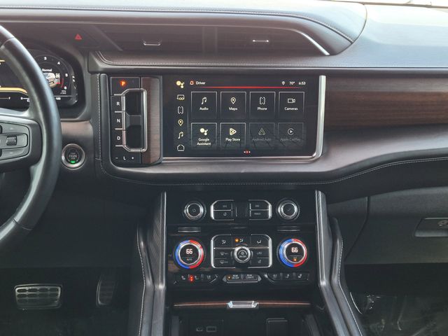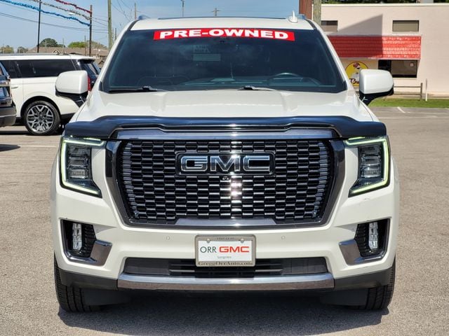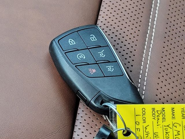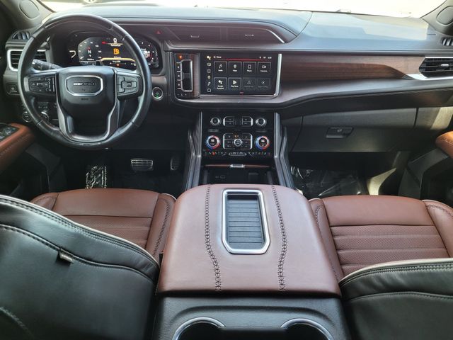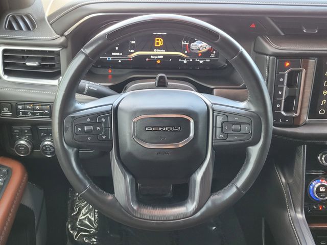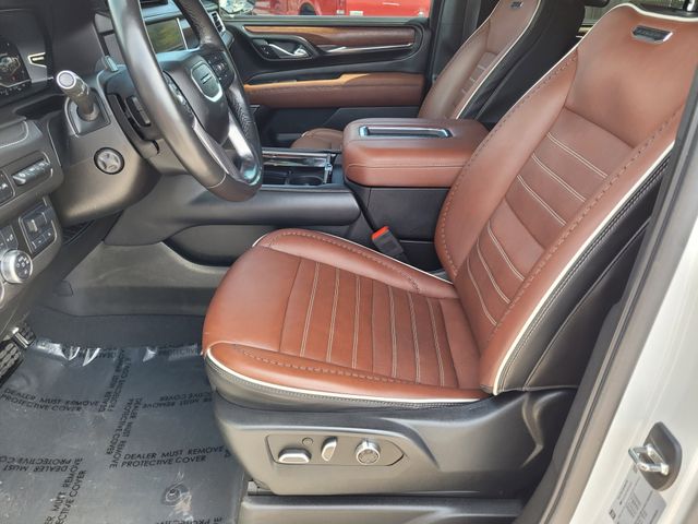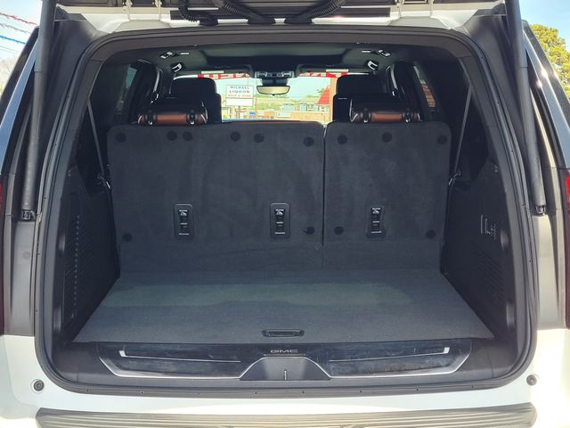 This 2023 GMC Yukon XL comes equipped with Advanced Security Package (Glass Breakage Sensor, Theft-Deterrent Alarm System, Vehicle Inclination Sensor, and Vehicle Interior Movement Sensor), Advanced Technology Package (Enhanced Automatic Parking Assist, Inside Rearview Auto-Dimming Rear Camera Mirror, Rear Camera Mirror Washer, and Reverse Automatic Braking), Max Trailering Package (Extra Capacity Cooling System), Preferred Equipment Group 5SB (15" Diagonal Multi-Color Head-Up Display, 16-Way Power Seat Adjusters, 2 Presets For Outside Rearview Mirrors, 3 Years of GMC Connected Services, 3 Years of OnStar Safety & Security, 3rd Row 60/40 Power-Folding Split-Bench Seat, Adaptive Cruise Control, Bose Performance Series Sound System w/18 Speakers, Bright Front & Rear Door Sill Plates, Chrome Door Handles w/Body-Color Strip, Dual Exhaust System, Dual-Pane Panoramic Power Sunroof, Enhanced Automatic Emergency Braking, Floor Console, Hands-Free Power Programmable Rear Liftgate, HD Surround Vision, Heated & Ventilated Driver & Front Passenger Seats, Heated 2nd Row Outboard Position Seats, Heated Driver & Front Passenger Seats, Heated Steering Wheel, Hill Descent Control, Leather-Wrapped Steering Wheel, Outside Heated Power-Adjustable Mirrors, Power Release 2nd Row Bucket Seats, Power Tilt & Telescopic Steering Column, Power-Retractable Assist Steps, Rear Cross Traffic Alert, Rear Pedestrian Alert, Rear Seat Media System, Safety Alert Seat, Sport Pedal Cover Kit (LPO), Universal Home Remote, Vader Bodyside Moldings, and Wireless Charging), Premium Capability Package w/Active Response 4WD (Air Ride Adaptive Suspension and Electronic Limited Slip Differential (eLSD)), 4WD, Navigation System, 1.5 kW Heater/Defrost Air System, 18 Speakers, 250 Amps Alternator, 3 Years of OnStar Safety & Security (DISC), 3.23 Rear Axle Ratio, 3rd row seats: split-bench, 4-Wheel Disc Brakes, 850 Cold-Cranking Amps Battery, ABS brakes, Adaptive suspension, Air Conditioning, Alloy wheels, AM/FM radio: SiriusXM with 360L, AM/FM Stereo, Apple CarPlay/Android Auto, Auto High-beam Headlights, Auto-dimming door mirrors, Auto-dimming Rear-View mirror, Auto-leveling suspension, Automatic temperature control, Bodyside moldings, Brake assist, Bumpers: body-color, Compass, Delay-off headlights, Diesel B20 Fuel, Driver door bin, Driver vanity mirror, Dual front impact airbags, Dual front side impact airbags, Electronic Stability Control, Emergency communication system: OnStar and GMC connected services capable, Engine Block Heater, Four wheel independent suspension, Front anti-roll bar, Front Bucket Seats, Front Center Armrest, Front dual zone A/C, Front fog lights, Front reading lights, Full Grain Leather Seats, Fully automatic headlights, Garage door transmitter, Headphones, Heads-Up Display, Heated door mirrors, Heated front seats, Heated rear seats, Heated steering wheel, Hitch Guidance w/Hitch View, Illuminated entry, Illuminated Liftgate Sill Plate (LPO), Integrated Trailer Brake Controller, Lane Departure Warning System, Leather steering wheel, Low tire pressure warning, Magnetic Ride Control Suspension, Memory seat, Not Equipped w/Wireless Charging, Occupant sensing airbag, Outside temperature display, Overhead airbag, Overhead console, Panic alarm, Passenger door bin, Passenger vanity mirror, Power door mirrors, Power driver seat, Power Liftgate, Power moonroof, Power passenger seat, Power steering, Power windows, Rain sensing wipers, Rear air conditioning, Rear anti-roll bar, Rear audio controls, Rear reading lights, Rear window defroster, Rear window wiper, Remote keyless entry, Roof rack: rails only, Security system, Single Outlet Exhaust System, SiriusXM w/360L, Smart Trailer Integration Indicator, Speed control, Speed-sensing steering, Split folding rear seat, Spoiler, Steering wheel memory, Steering wheel mounted audio controls, Super Cruise, Tachometer, Telescoping steering wheel, Tilt steering wheel, Traction control, Trailer Side Blind Zone Alert, Trip